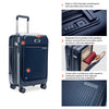 The Essential 22 Front Pocket Carry-On Expandable Spinner is perfectly sized for US travel thanks to its sleek silhouette that expands for 25% more packing space before compressing back down. An exterior-mounted Outsider handle frees up packing room, while a zippered front pocket means no more digging for travel essentials. Made from high-strength recycled polycarbonate, youll appreciate this hardshell thats ready for the vigors of frequent travel.