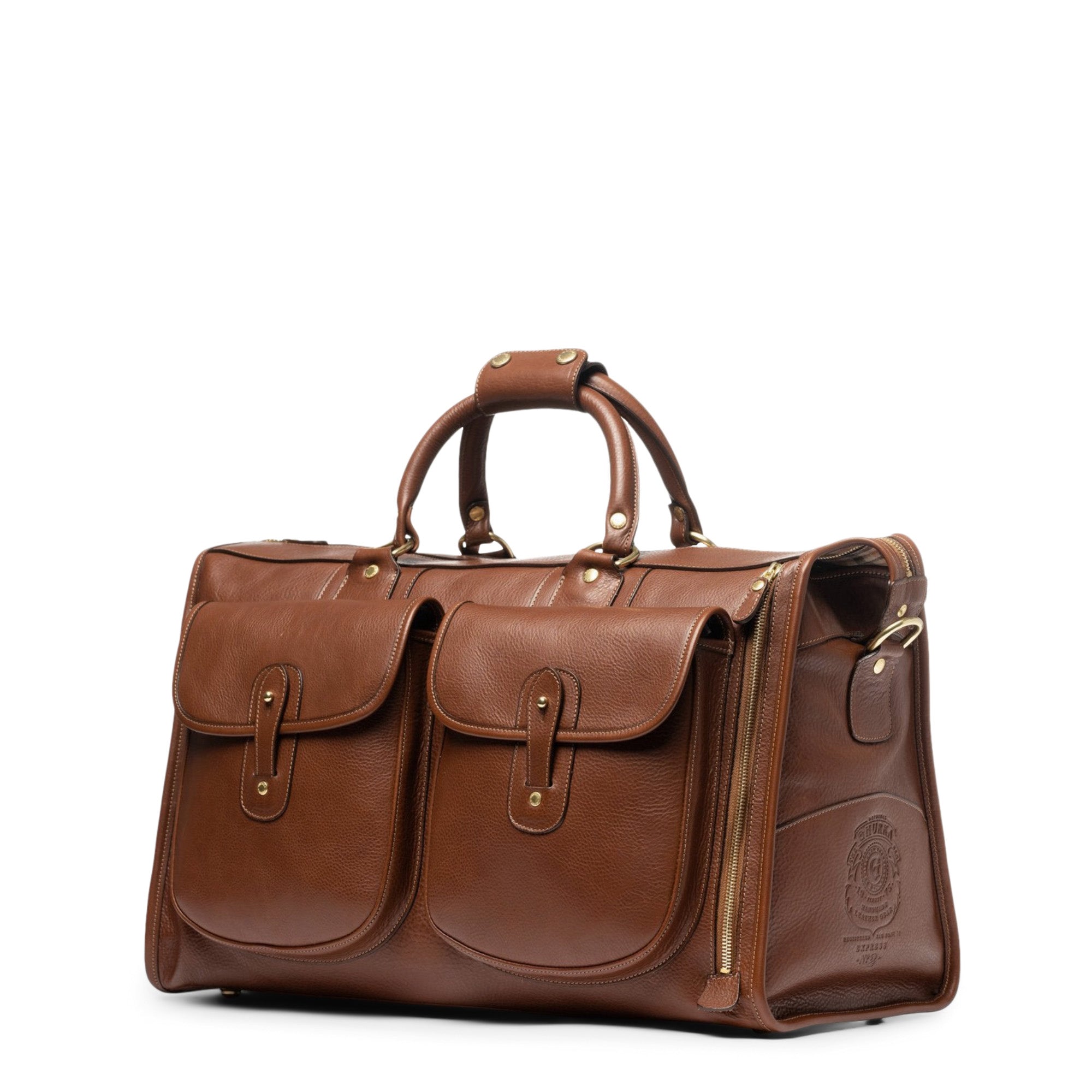 The Express No. 2 is an iconic travel bag, perfect for weekend getaways. It features multiple exterior pockets, a spacious interior, and a detachable shoulder strap. Our signature Vintage leather and brass hardware ensure durability and style on every journey.
