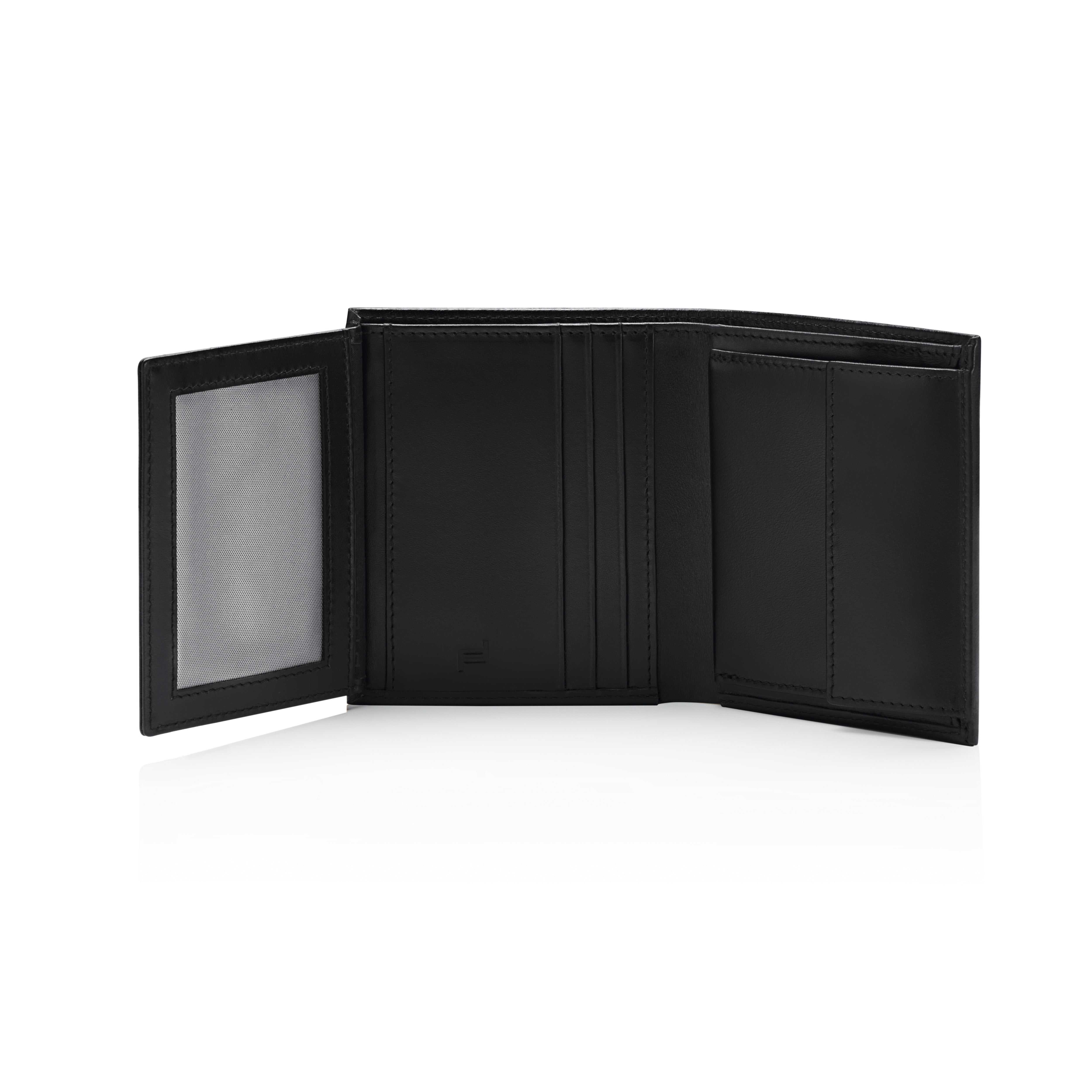 types of pockets, compartments and card slots to fit ones individual preference. Whether cash or credit cards, everything can be stored safely in dedicated spaces and is easily accessible. All items are RFID protected and secure any card data from unauthorized access. Some items feature a mesh pocket on the inside, a timesaving feature to store any travelling passes, etc. Inside the accessories the lining with Porsche Design icons and the co-branding logo add further value to the product. The Small Leather Goods Classic Collection is offered in many sizes and a wide range of interior options, with its elegant black smooth leather and the Porsche Design logo plate it sets a modern and luxury statement.
