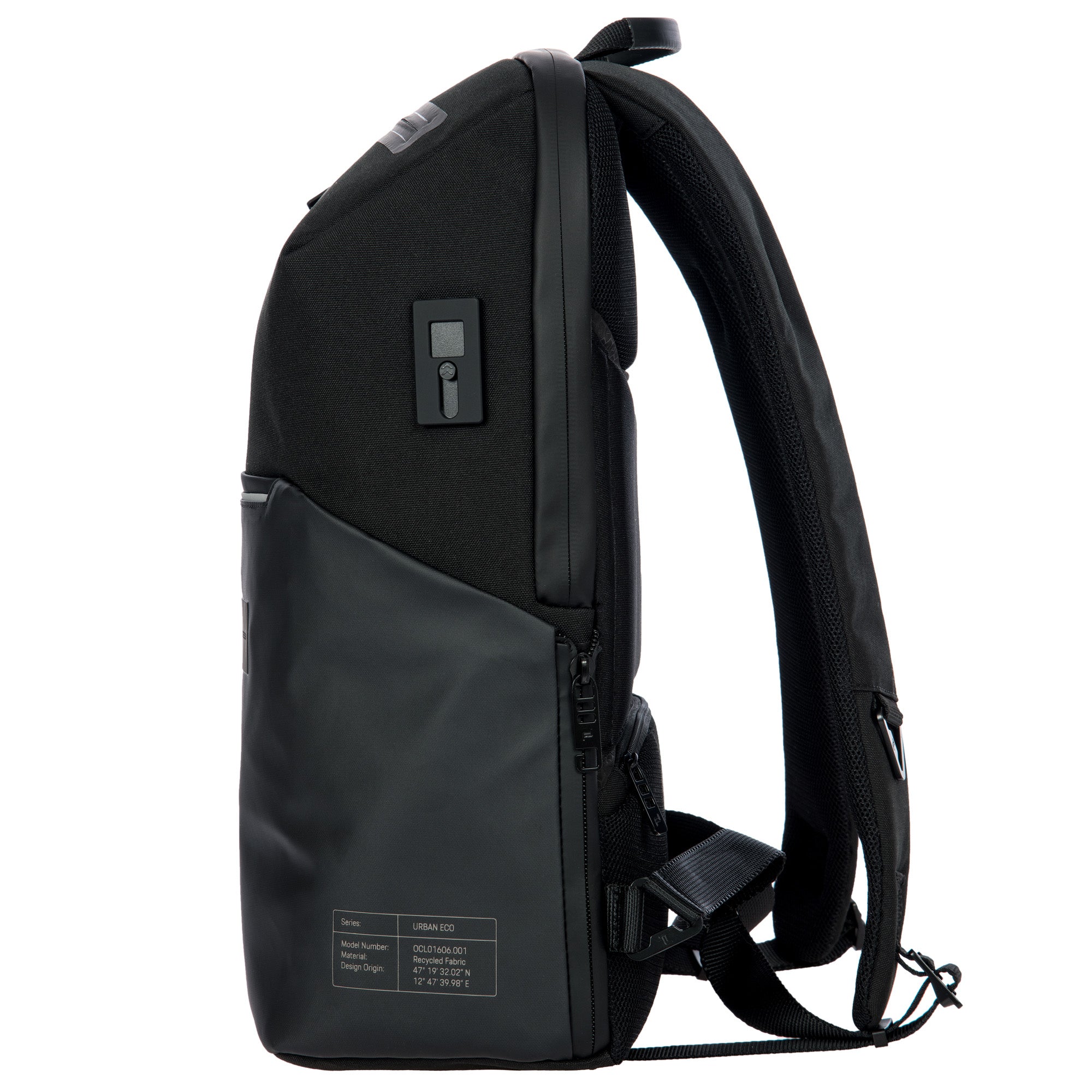The fusion of style and sustainability, functionality and flexibility, business and travel: The Porsche Design Urban Eco series doesn't stay in the drawer - its perfect for modern everyday life. The compact Porsche Design Urban Eco Backpack XS impresses at first glance with its combination of materials of water-repellent polyester and coated fabric - and with its clean design language with laminated zippers and black metal fittings. At second glance, the details catch the eye: like the rubberized logo patch, reflective piping and Porsche model badge-inspired print with the map coordinates of Zell am See, home of Studio F.A. Porsche. The backpack's well-thought out comfort may not be visible, but you'll feel it every time you wear it. Padded straps, a padded neoprene back with trolley link, a main compartment with 2-way zipper, USB plug and compartments for notebook and tablet, numerous functional pockets with organizer and the rain cover hidden in the bottom make the backpack the perfect 24-hour companion.
