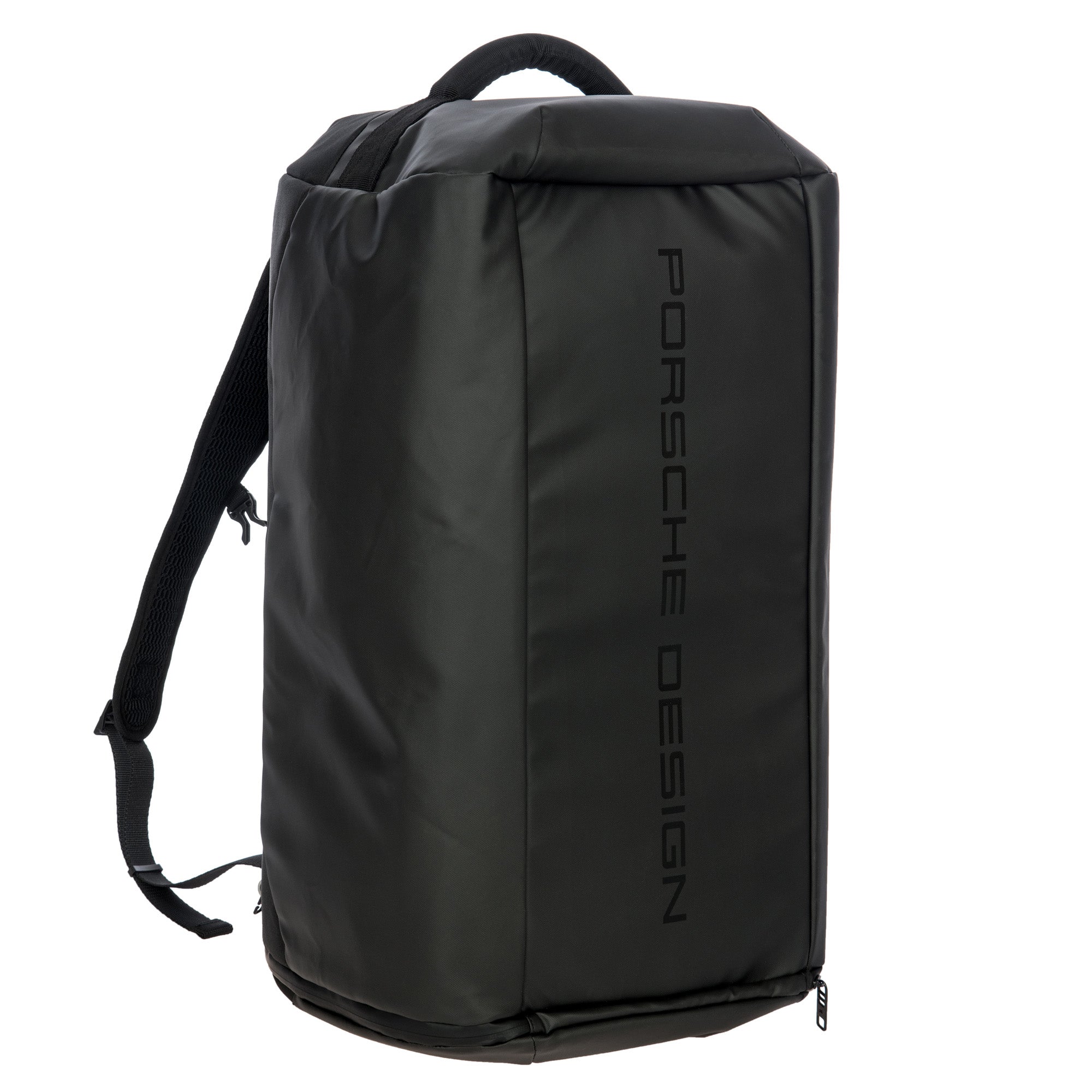 A fusion of smart style and sustainability, functionality and flexibility: the Porsche Design Urban Eco Collection doesn't really fit into any specific category, but it does fit perfectly into modern everyday life. The water-repellent duffle bag made of recycled polyester fabric and polyurethane is particularly abrasion-resistant and weatherproof. A spacious main compartment with a two-way zip offers enough space for every trip. Two slide-in compartments and various zip compartments ensure order and quick access to all important essentials. A specially designed shoe compartment and an additional side compartment with interchangeable zip pulls expand the storage options. The bag can be carried casually by hand or worn comfortably as a backpack with padded shoulder straps and chest strap. Reflective details on the front and a slide-in compartment underneath combine design and functionality. The Porsche Design branding on the back as well as uniquely designed decorative elements and fittings complete the stylish look of the bag.