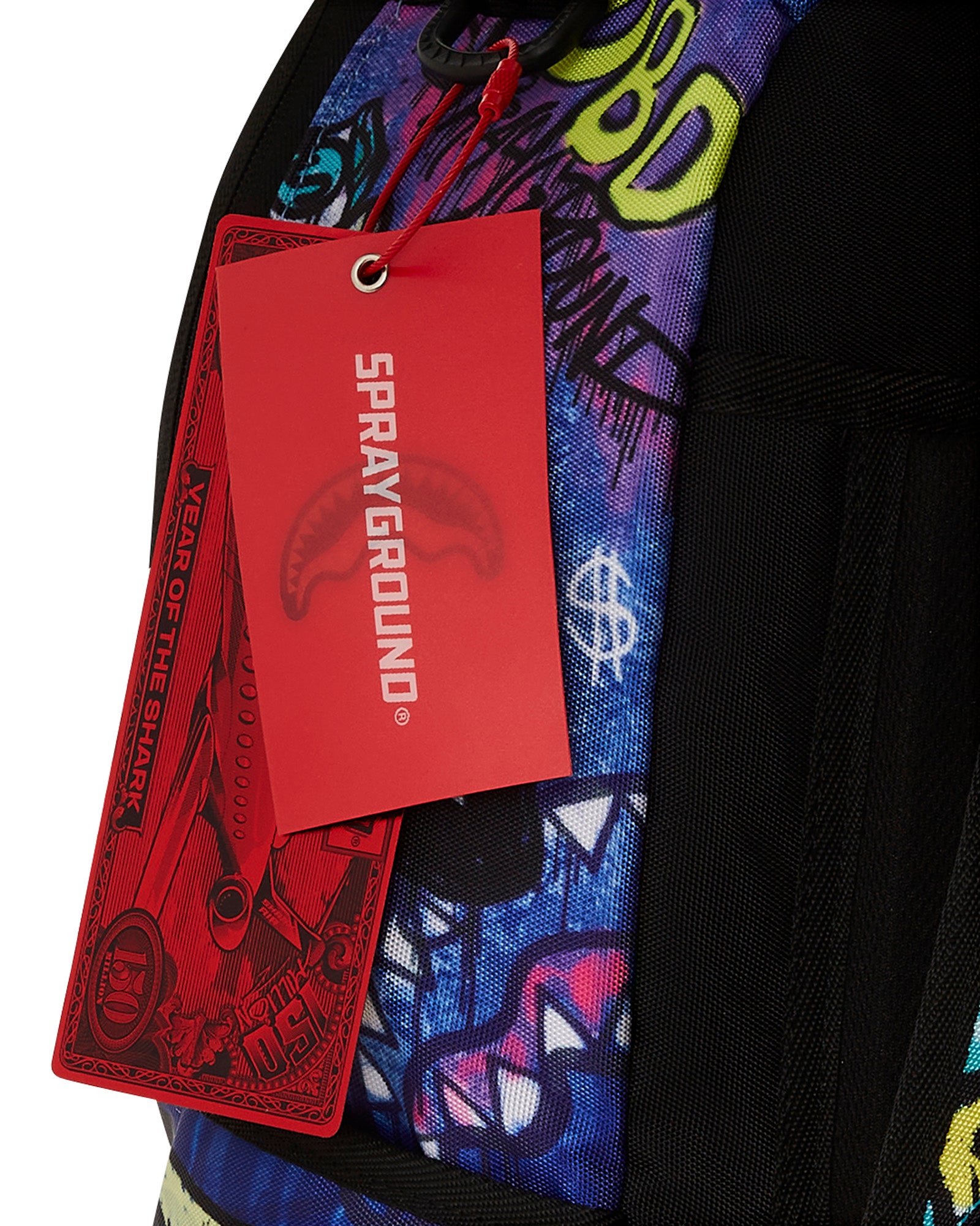 ALL BAGS ARE LIMITED EDITION & NEVER PRODUCED AGAIN. Made with Durable Faux Leather water-resistant fabric Spraygrounds art is meant to tell a story, through inspiration, pop culture, details, color, and thought-provoking concepts that push the limit in design and fashion. Durability, Strength, and Longevity are the foundation of Quality for Sprayground. A bag is meant to be thrown and beat up through the normal wear and tear of people's daily adventures. Functional compartments for todays youthful tech kid with slots for headphones, sunglasses, laptops, tablets and easy organization and mobility with ergonomic strap support for easy transport.