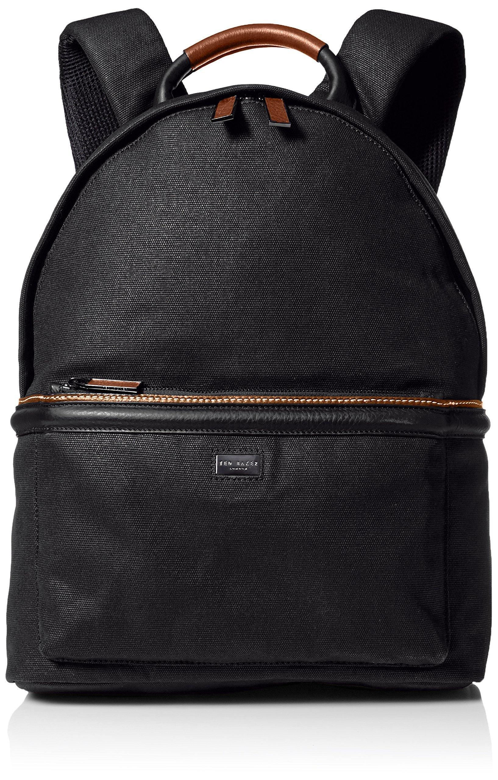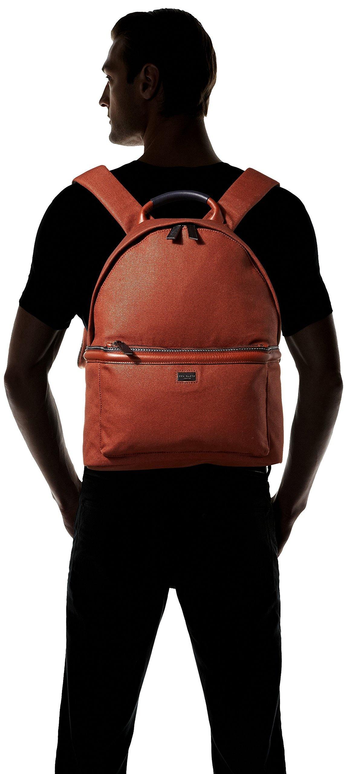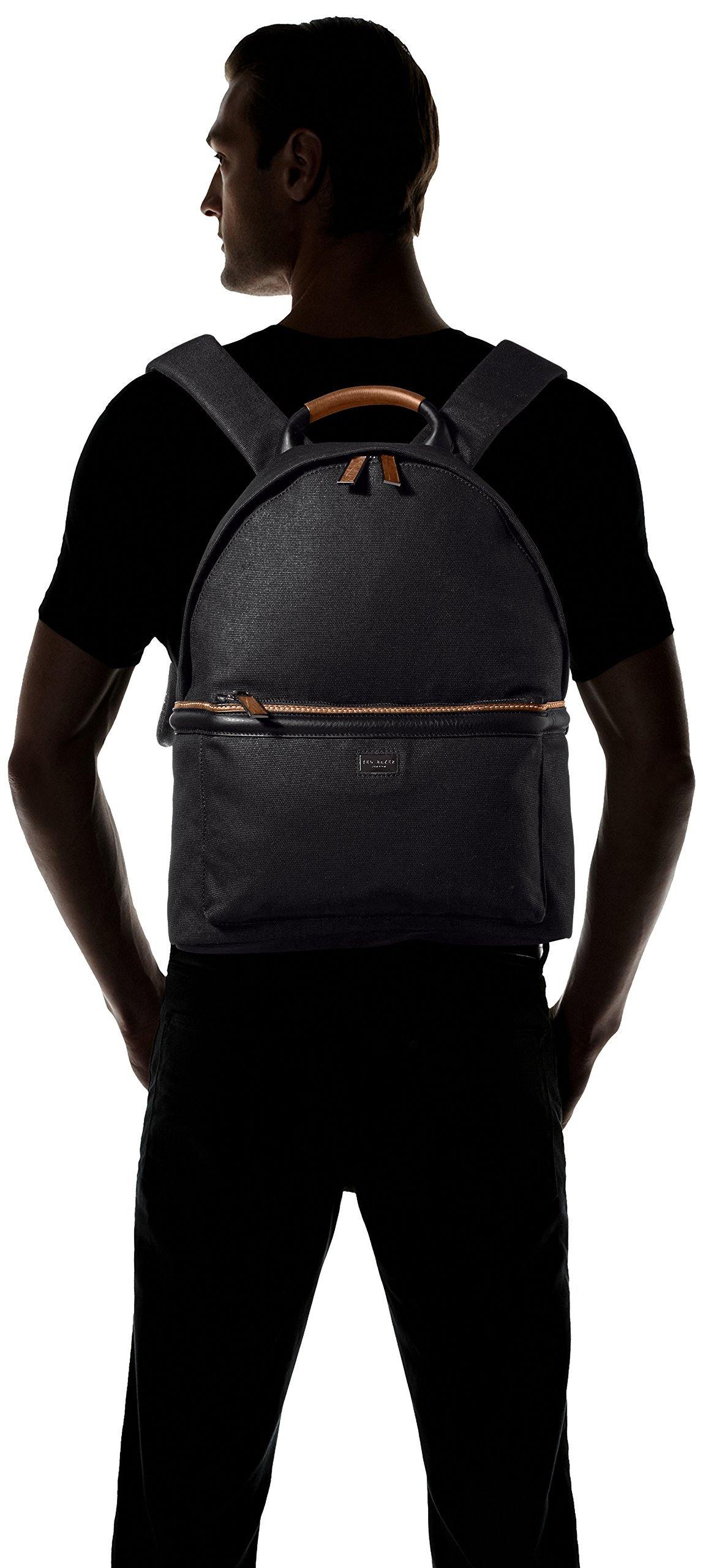 Ted Baker branded logo. Leather detail contrast trim. Interior pockets.