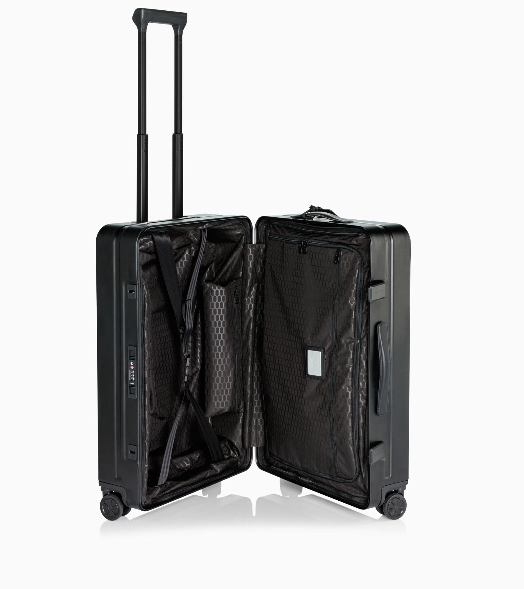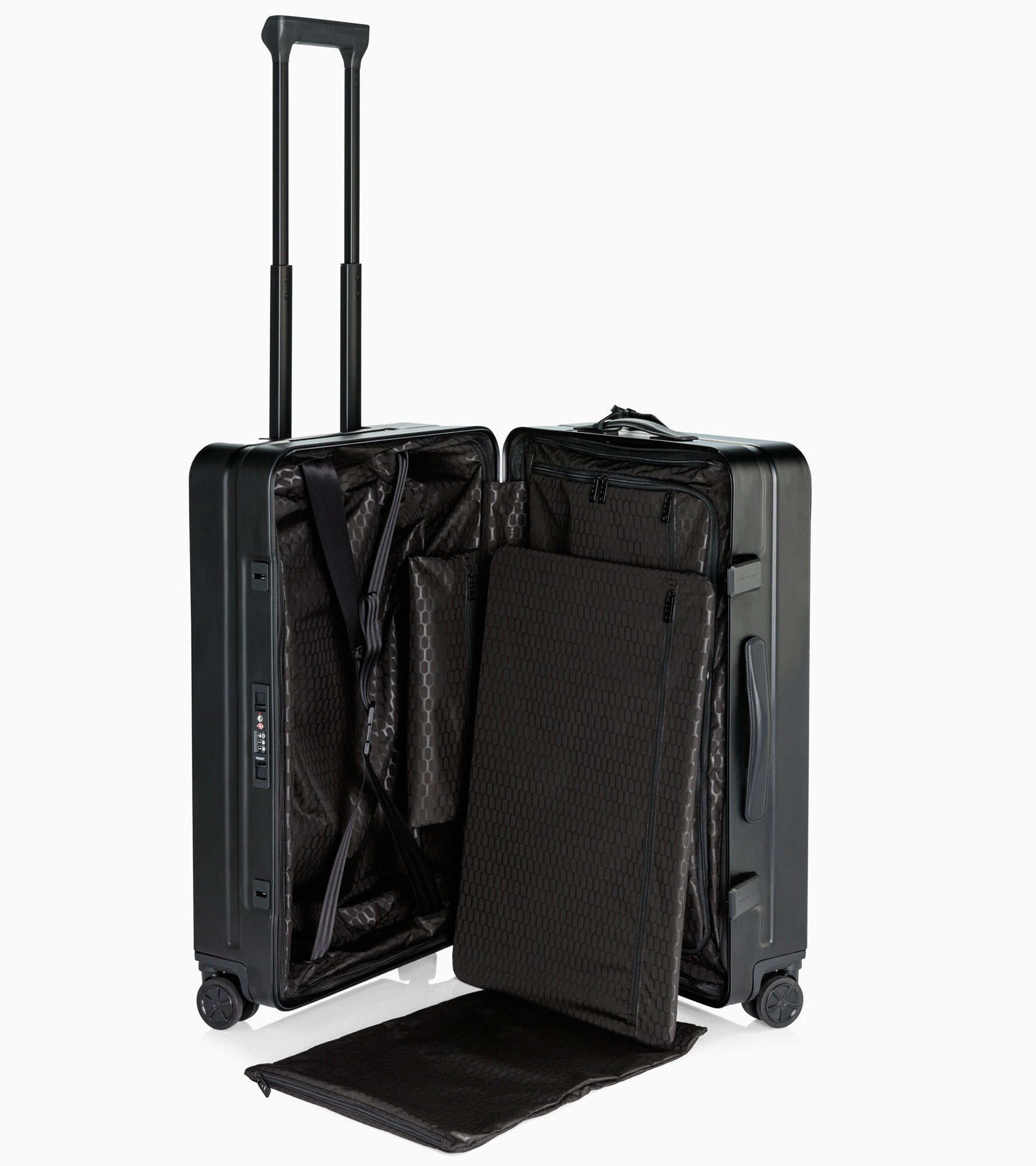The design on the front and back of the trolley is inspired by the aerodynamic shape of the 911, which develops a unique patina with each travel adventure.
