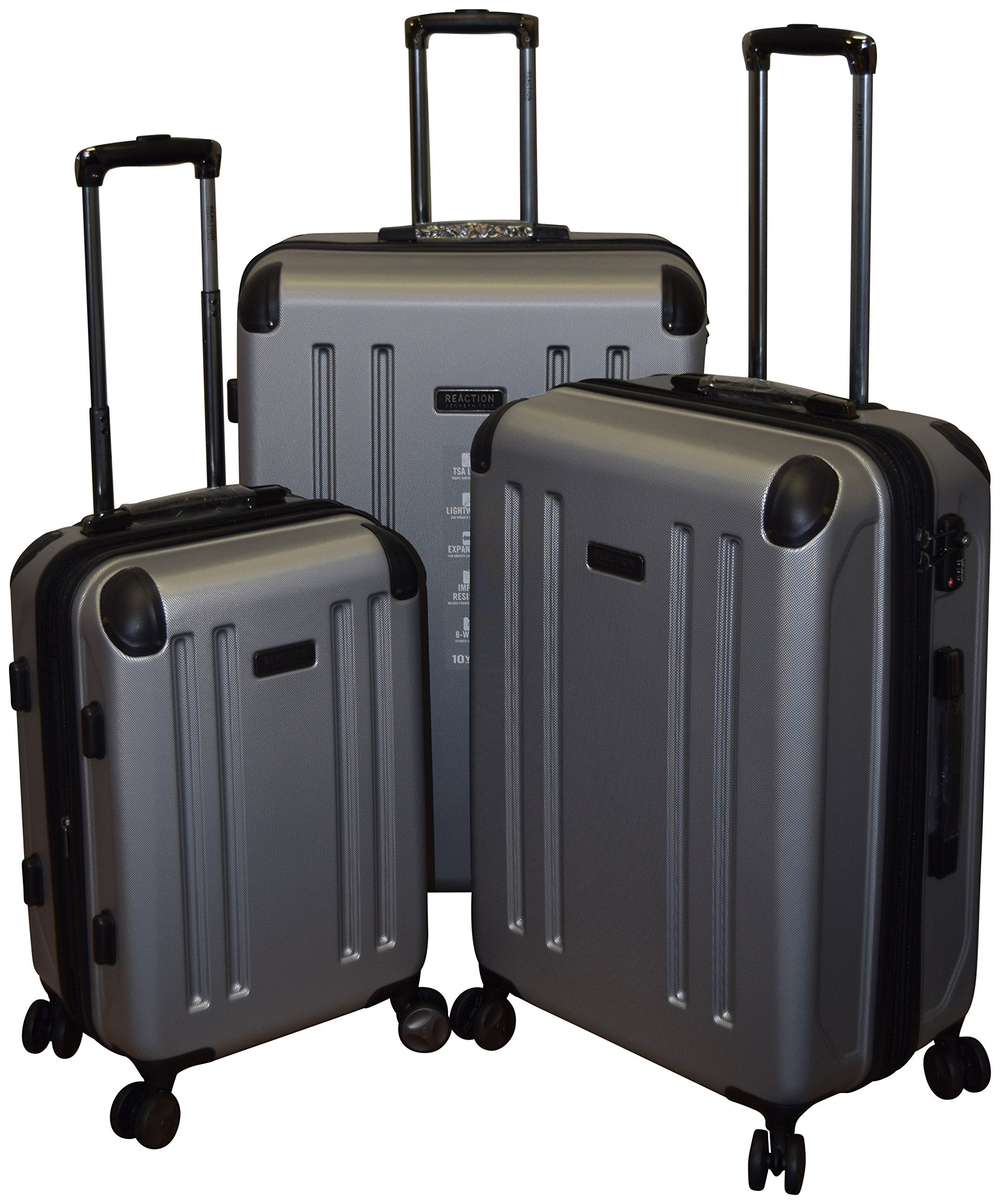 The 8 Wheelin by Kenneth Cole Reaction is a beautiful and resistant suitcaseexpandable set with 8 wheeled upright system. This set belongs to the latestluggage collections of Kenneth Cole Reaction and is a stylish and innovativedesign constructed with a lightweight and durable abs exterior with moldedcorner reinforcement for maximum impact resistance. Expansion zipper on maincompartment allows for up to 30% extra carrying capacity when needed andfeatures garment restraints and zipper pockets. lid includes a large meshu-shaped zipper pocket with elastic top shoe/accessory pockets and a meshzipper pocket. Durable bottom grab handle and flexible top and side handlesallows for easy lifting. Side bezels allow upright to stand on its side. Eightwheel constructions allows uprights to be rolled in any direction. retractablelocking handle system. "