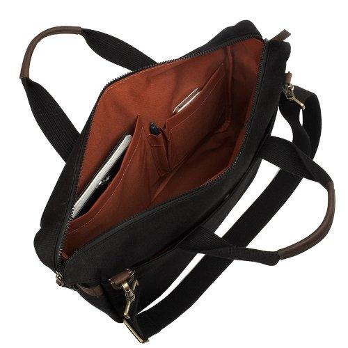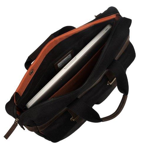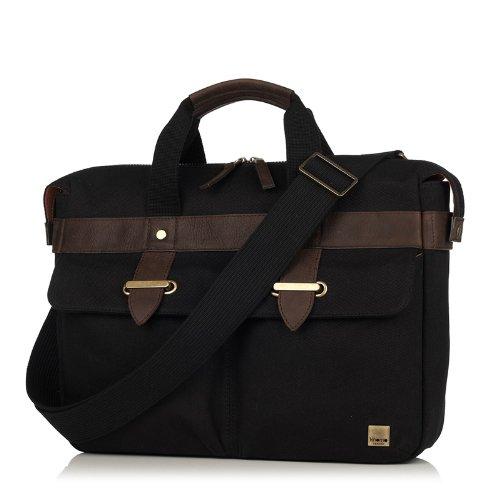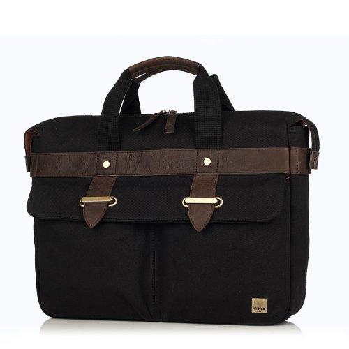 Color:Black The Farnham briefcase from Knomo is a real work-horse bag:spacious and understated, yet it won't let you down in the style stakeseither. Holds up to a 15" laptop within removable sleeve . Removable nylonlaptop sleeve has velveteen lining . Made of a lightweight twill cotton canvasexterior, Carry 2 ways: via short carry handles or detachable, adjustableshoulder strap, Fastens with top zip with raw-edge leather zip pullers, Veryspacious interior: holds files/folders and A4 pad -Internally, durable nylonpockets can hold your mobile/iPod -2 large front pockets with mock-bridge lockflap,