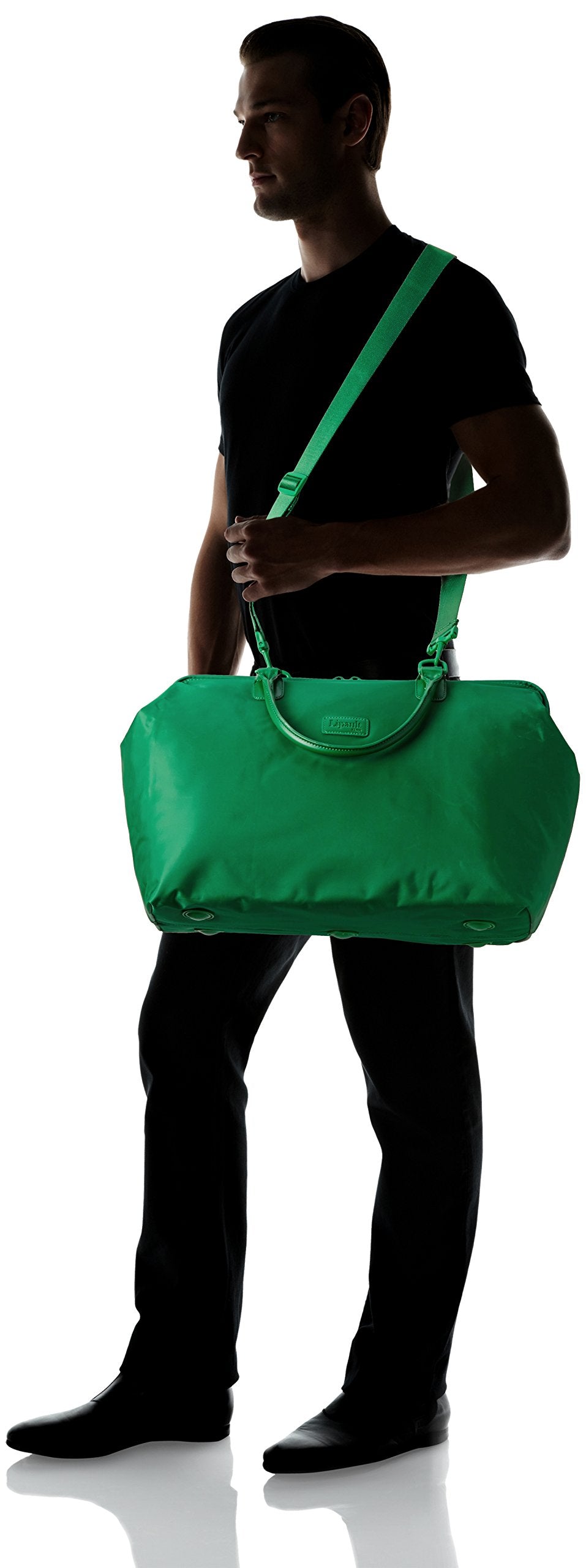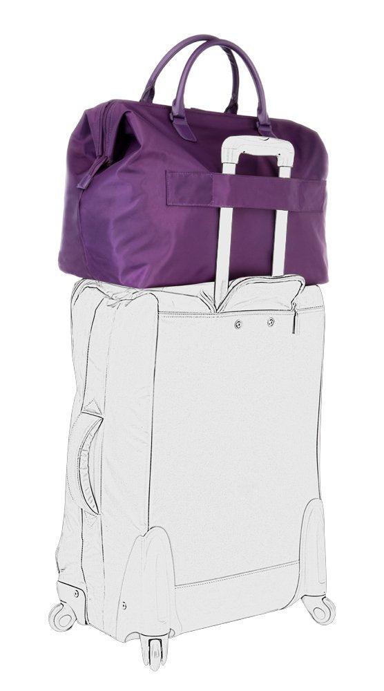 You?ll be looking for new adventures just so you can travel with this style-savvy satchel. Equally functional and fashionable, it is sized for 1-3 days away with a framed opening that gives you easy access to the main compartment. Also a great companion piece; slips on top of your wheeled luggage.