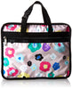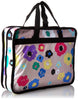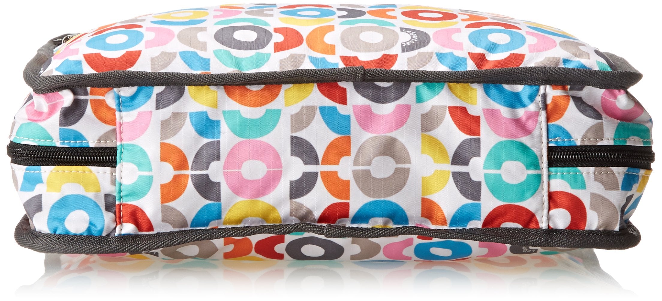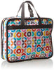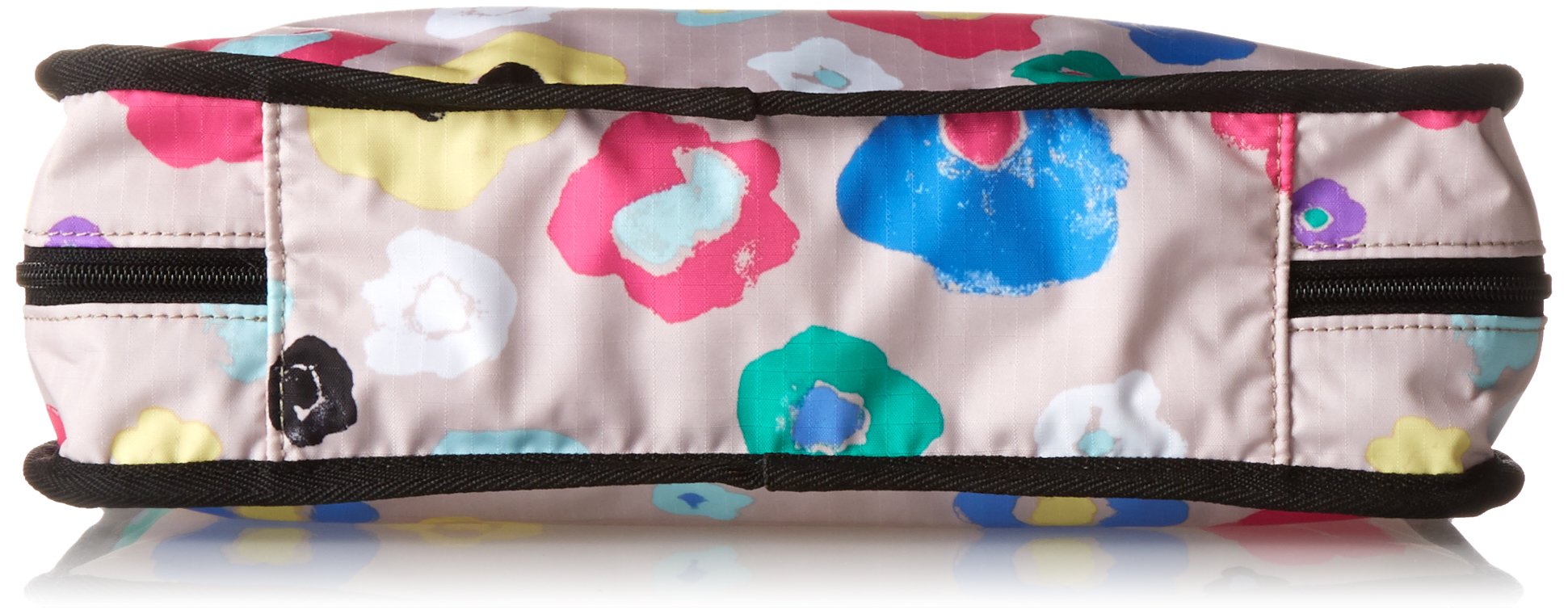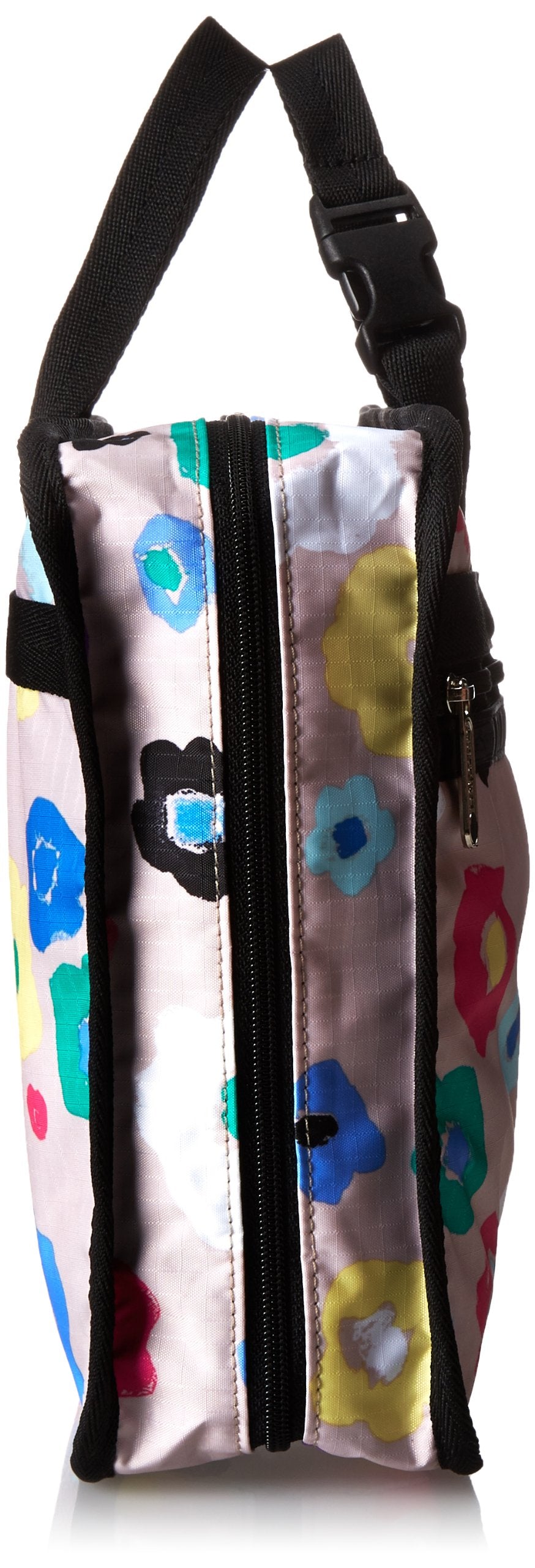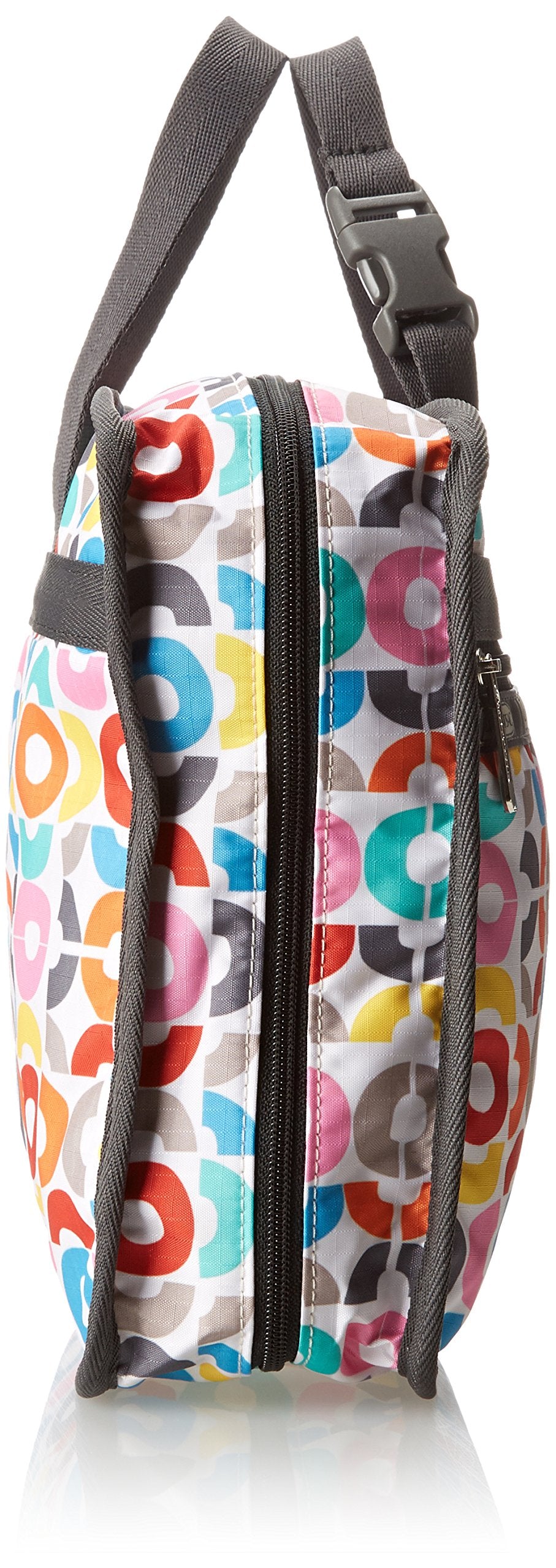 Zip around main closure with dual zipper pulls, Exterior front pocket with zip closure, Top handles with one quick release clip, Clear interior back pocket with zipper closure, Three clear interior front pockets with velcro flap closure, Detachable interior clear pouch with zip closure