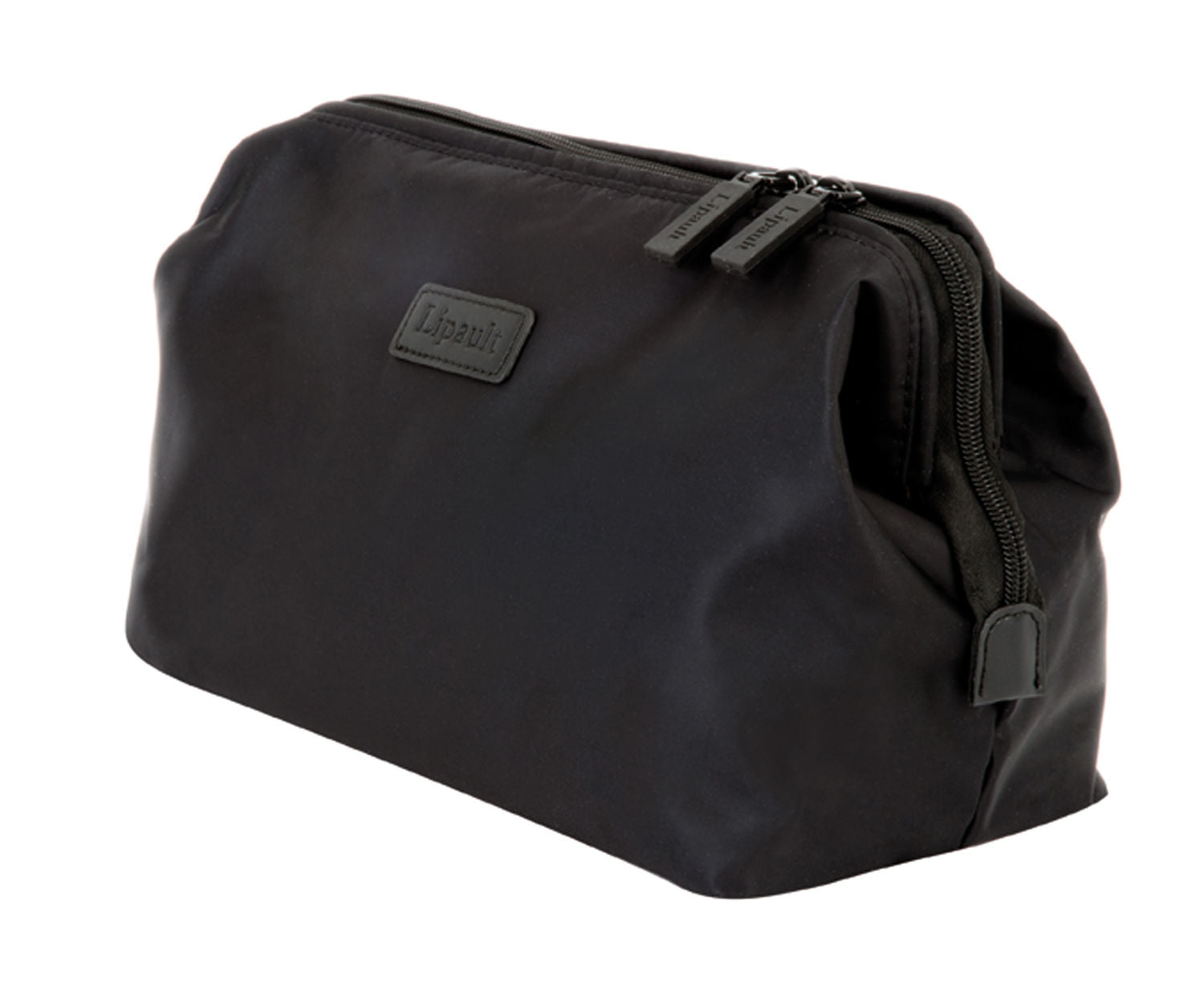 There's a bit of retro style in this larger kit with a framed opening that allows you to see everything stashed inside. Features an interior pocket and double zipper closure.
