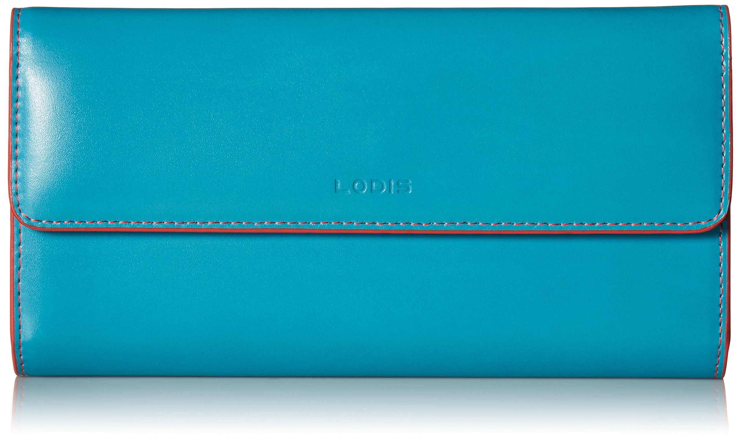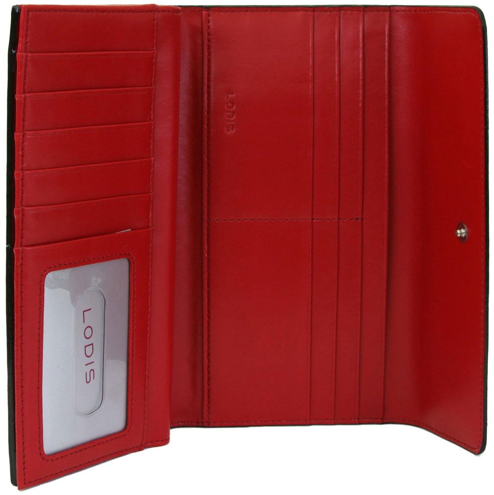 Timeless clutch wallet with room for a checkbook and register Lodis' Audrey checkbook wallet is an organizational wonder. Within its small frame comes the helpful ordering ability of four bill and receipt pockets, 11 card slots, an ID pocket with a clear viewing window, two zip-close pockets, and slots for your checkbook and register. Its super-soft leather fabrication and cheery color make this accessory a perfect choice for well-composed style.