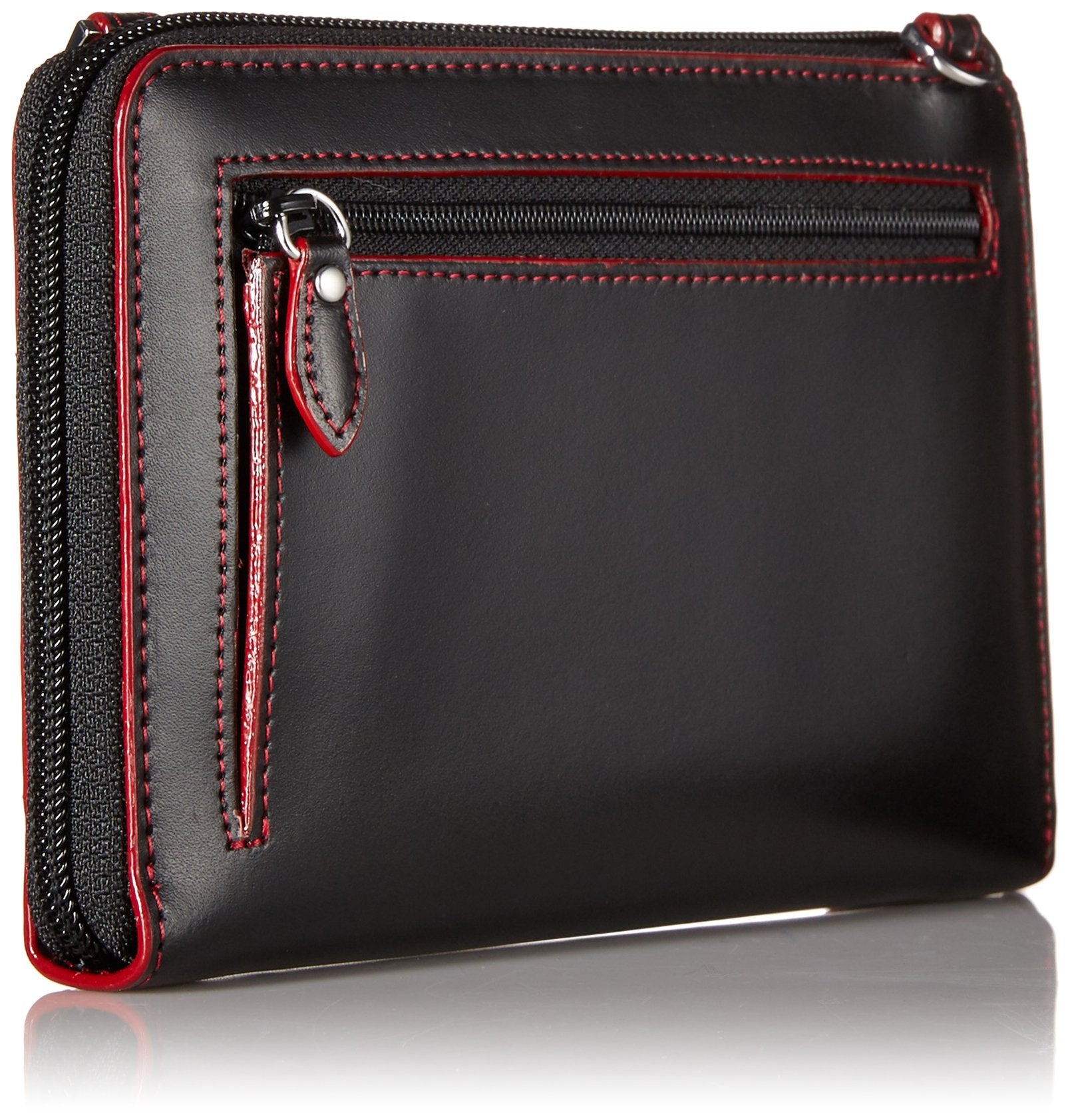 interior wallet credit card slots with ID window. Imported. Measurements: