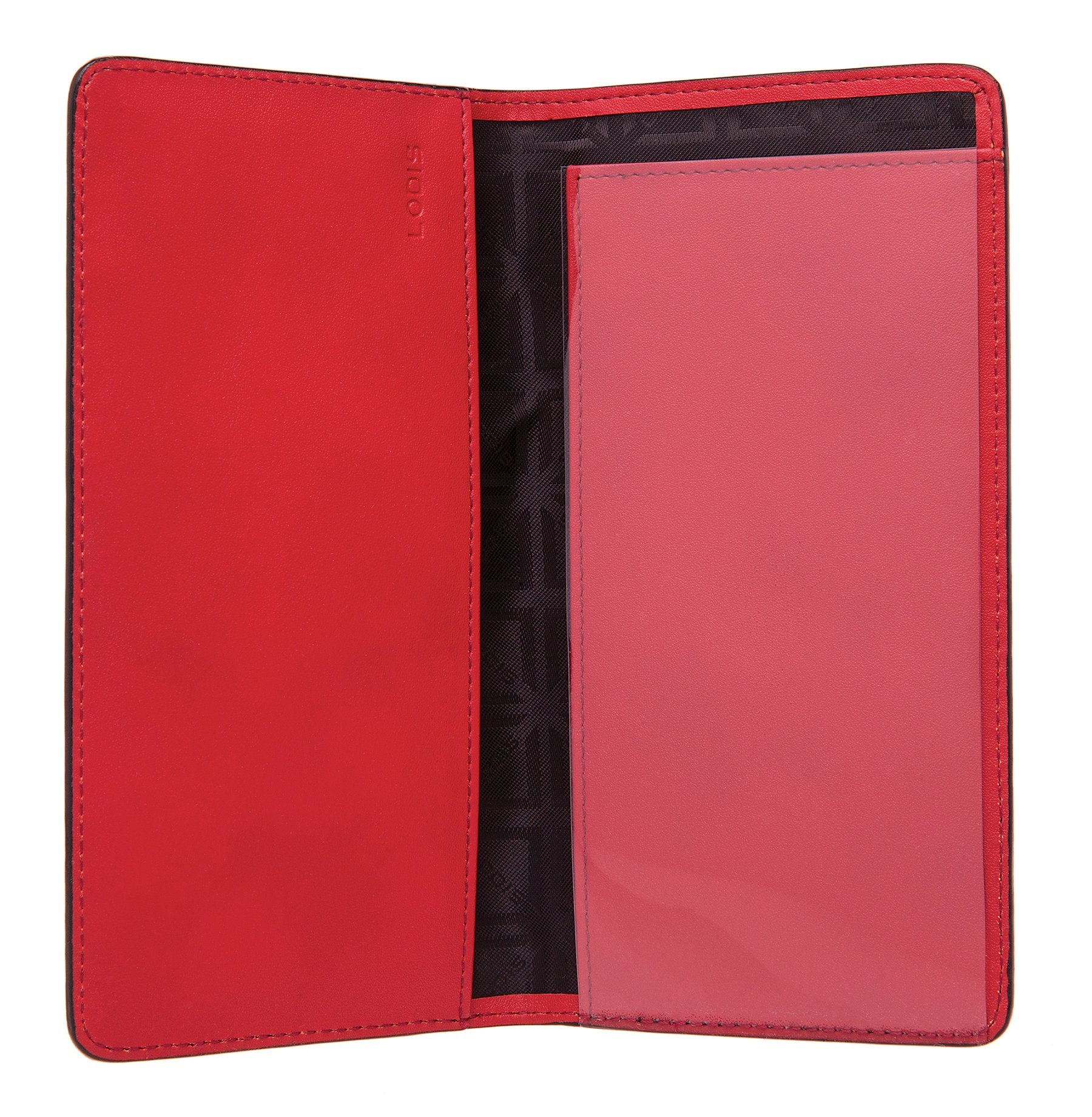• Leather pocket keeps checkbook secure.