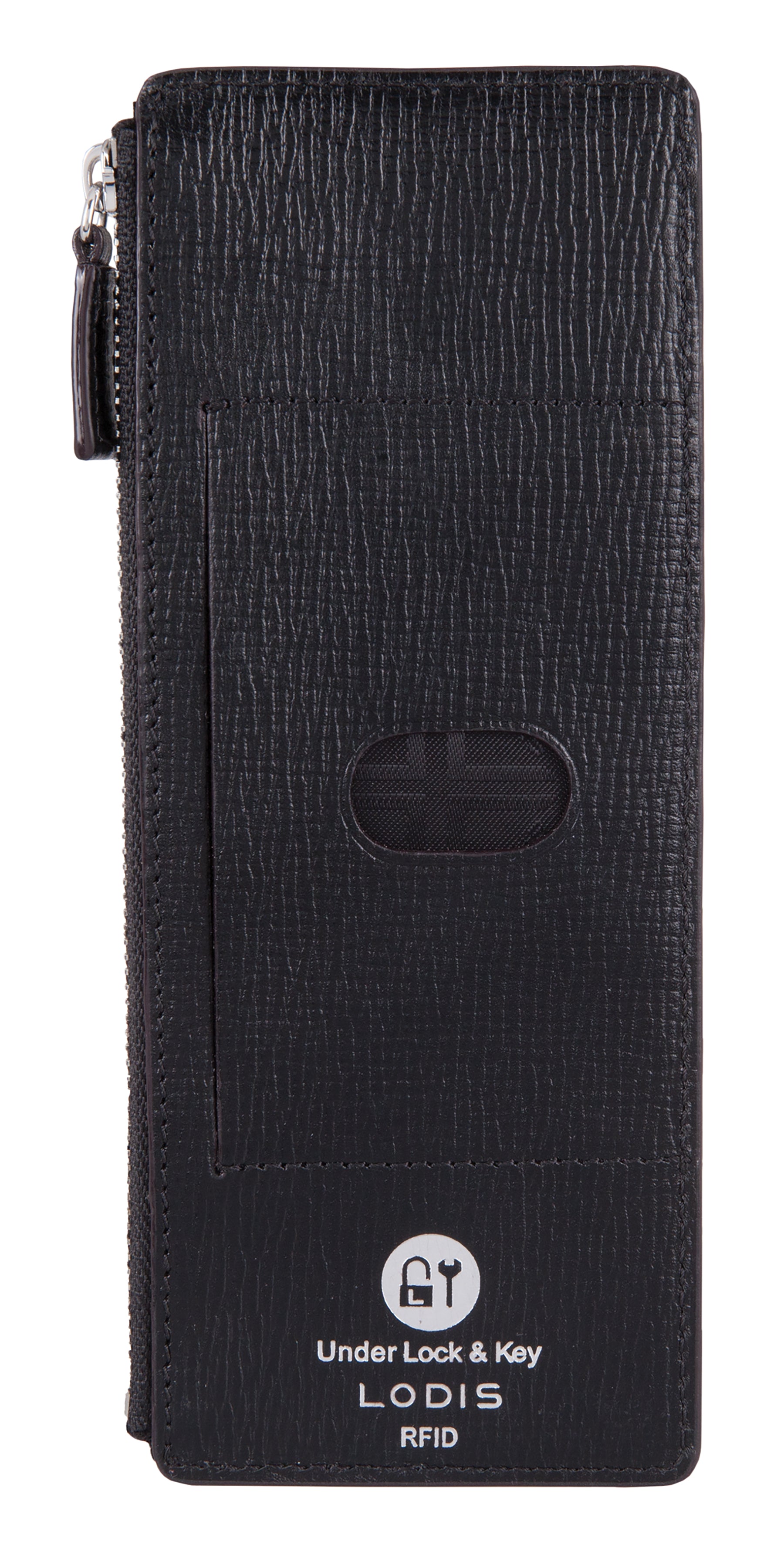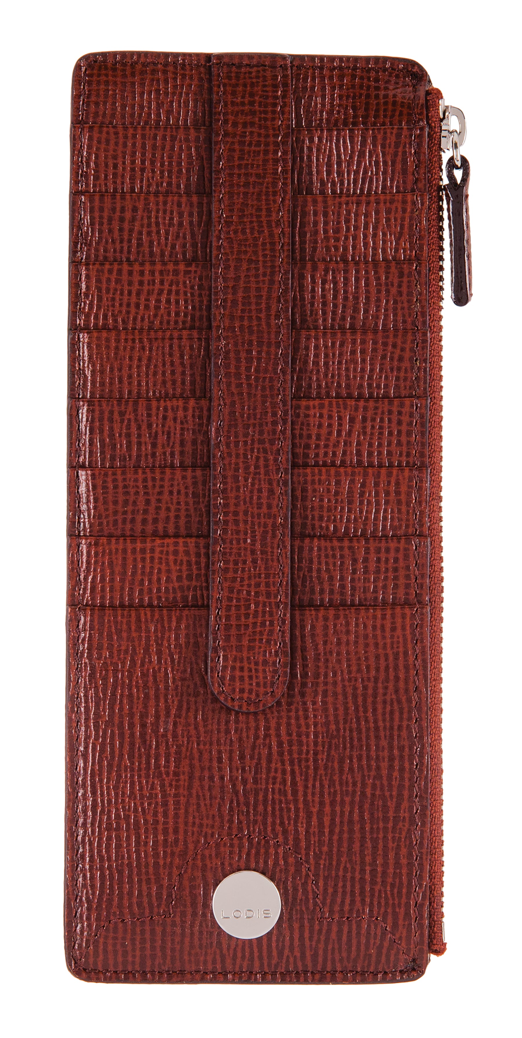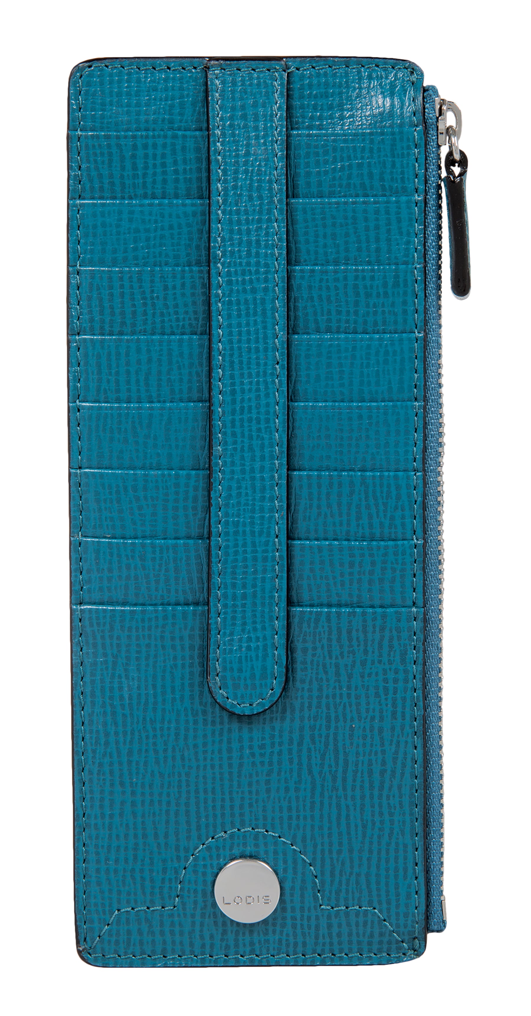 - Don't overstuff your main wallet. Organize all your credit cards, gift cards, store cards, and even travel cards in this classic LODIS card case. It features an exterior ID pocket on back, a zip pocket perfect for currency or valuables, and 8 exterior card slots with snap closure for added security.