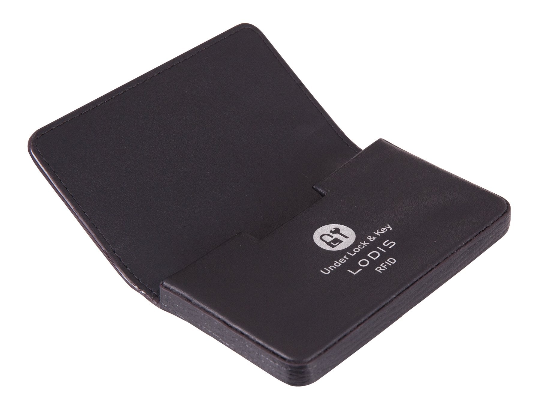 Smart and sophisticated, the Business Chic collection is defined by minimalistic details and functional wearability. The structured cross grain hand boarded Italian leather is the defining feature that complements sumptuous suede textural details. Interiors offer new Lodis organizational bag-moji icons, as well as Lodis Under Lock and Key (trademark pending) RFID protection. Business chic is presented in a stylish palette of Black, Russet, Taupe and Peacock with tonal interiors. Chic business card case holds up to 30 business cards - for the businesswoman with the heart of a fashionista. Features: Magnetic closure, Holds up to 30 business cards or 12 credit cards One year warranty against manufacturing defects.