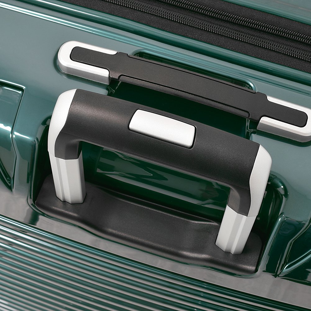 Locking push button handle system with aluminum channels for added strength. Deluxe 8-wheel multi-directional 360 degree spin technology. TSA approved locks, flush mounted for strength. Side feet and corner guards for extra protection. Interior has zippered dividers and tie down straps. Expands 2" for additional packing capacity. Full iconic London Fog plaid lining interior as well as custom London Fog hardware. Limited lifetime warranty.