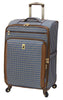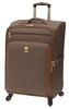 Durable Woven jacquard material or tri weave ballistic solid. Honeycomb structure for ultra-lightweight strength. Trolly has aluminum channel tubes for added strenght. Ergonomic comfort grip locking trolley handle. Low profile 360 degree multi-directional wheels. Reinforced back panel adds strenght without weight. Convenient top side and bottom, carry handles. Full London Fog signature lining, Interior has integrated show pockets an d a zippered mesh pocket on lid. Spinner uprights expand 2" for additonal packing capacity. Interior has integrated shoe pockets and a zippered mesh pocket on lid.