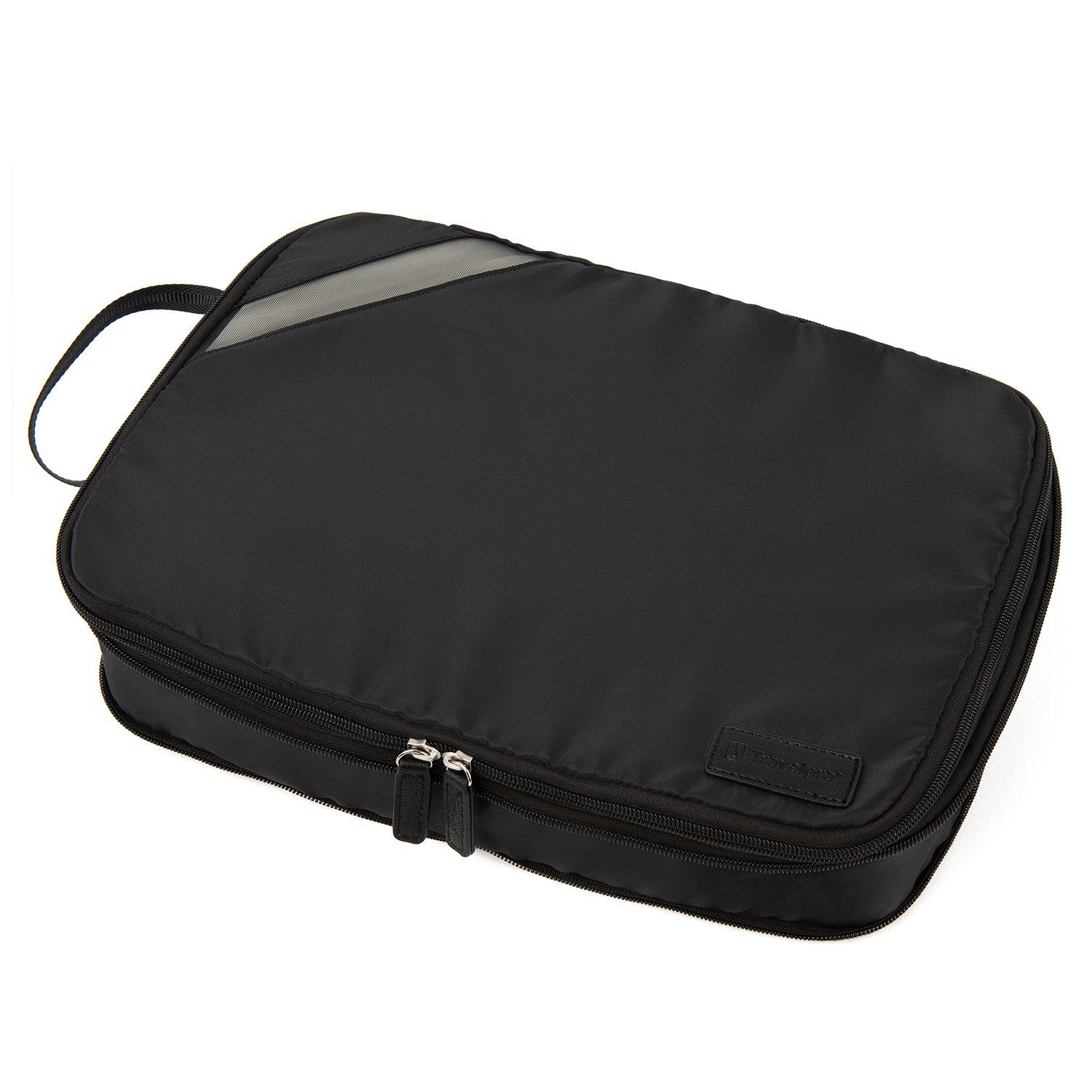 When getting the most from luggage space matters, the only thing better than our Large Packing Cube is our Travelpro Essentials Large Expandable Packing Cube. Offering ample room for several pieces of rolled or folded clothingfrom t-shirts, shorts and pants to dresses and button-down shirts, our larger-sized expandable cube gets extra-efficient with an extra zipper designed to let you compress the air out of the cubes contents to minimize volume and maximize what you can fit in your luggage. Expand to pack it full, then compress it to condense space. Even expanded, it fits well in a carry-on bag or checked luggage. Once you use our Travelpro Essentials Packing Cubes, you will wonder how you ever packed without them. Made from highly-durable, tear-resistant and quick-drying polyester, these nearly-weightless cubes are well-constructed with wrap-around zippers and tabbed zipper pulls for easy opening and secure closing. This expandable cube also features an additional compression zipper. Unzip for expansion to pack it full, or zip it up for compression to condense space by removing the air from what is packed inside. Soft tops facilitate maximum packability and feature a breathable peek-a-boo mesh section. Stackable when expanded and packed with contents, these travel cubes double as wardrobe and accessory organizers, even at your destination. Use different sized cubes to perfectly configure your luggage, get more from your duffel, checked or carry-on bag and keep items right where you want them. Backed by a 1-Year Limited Warranty!