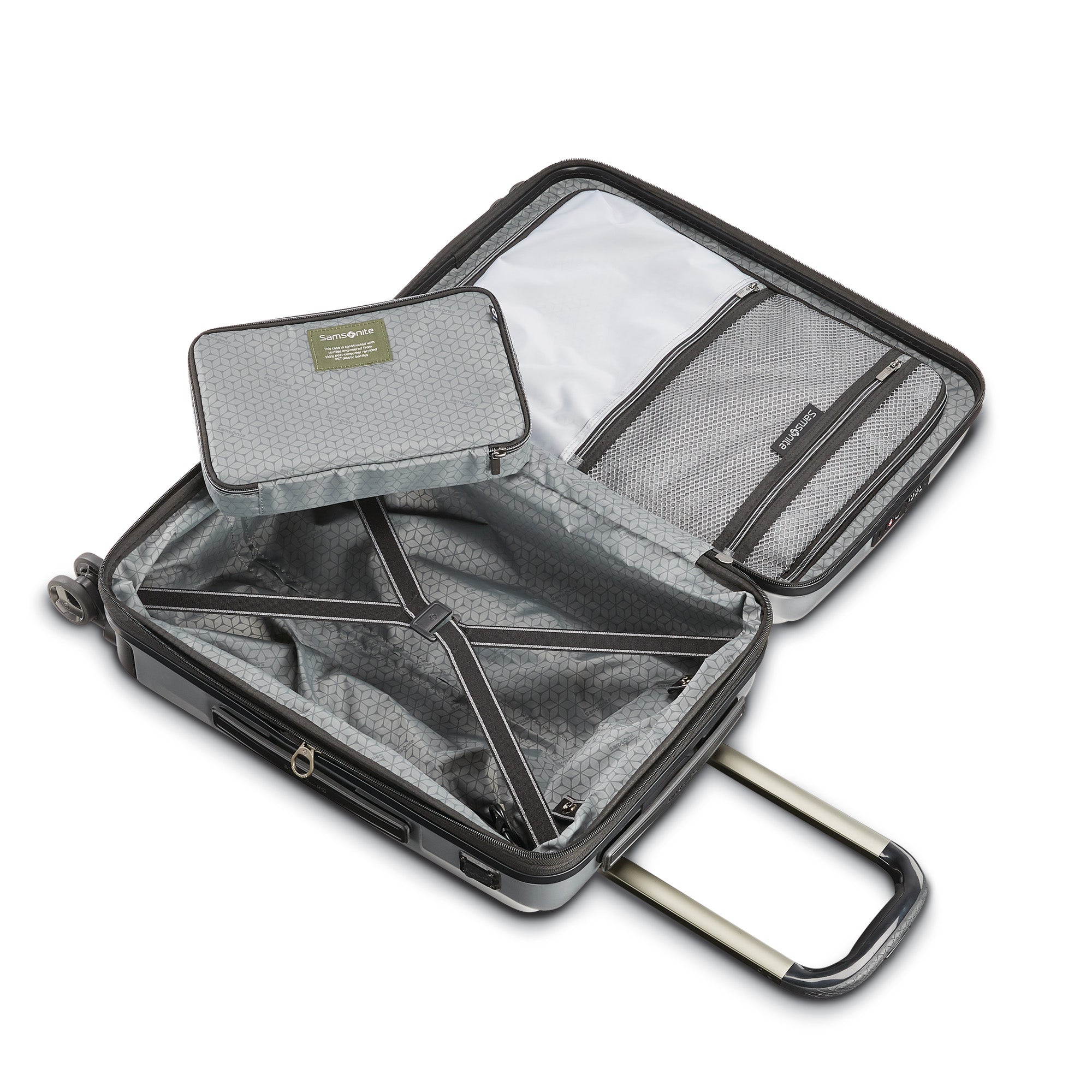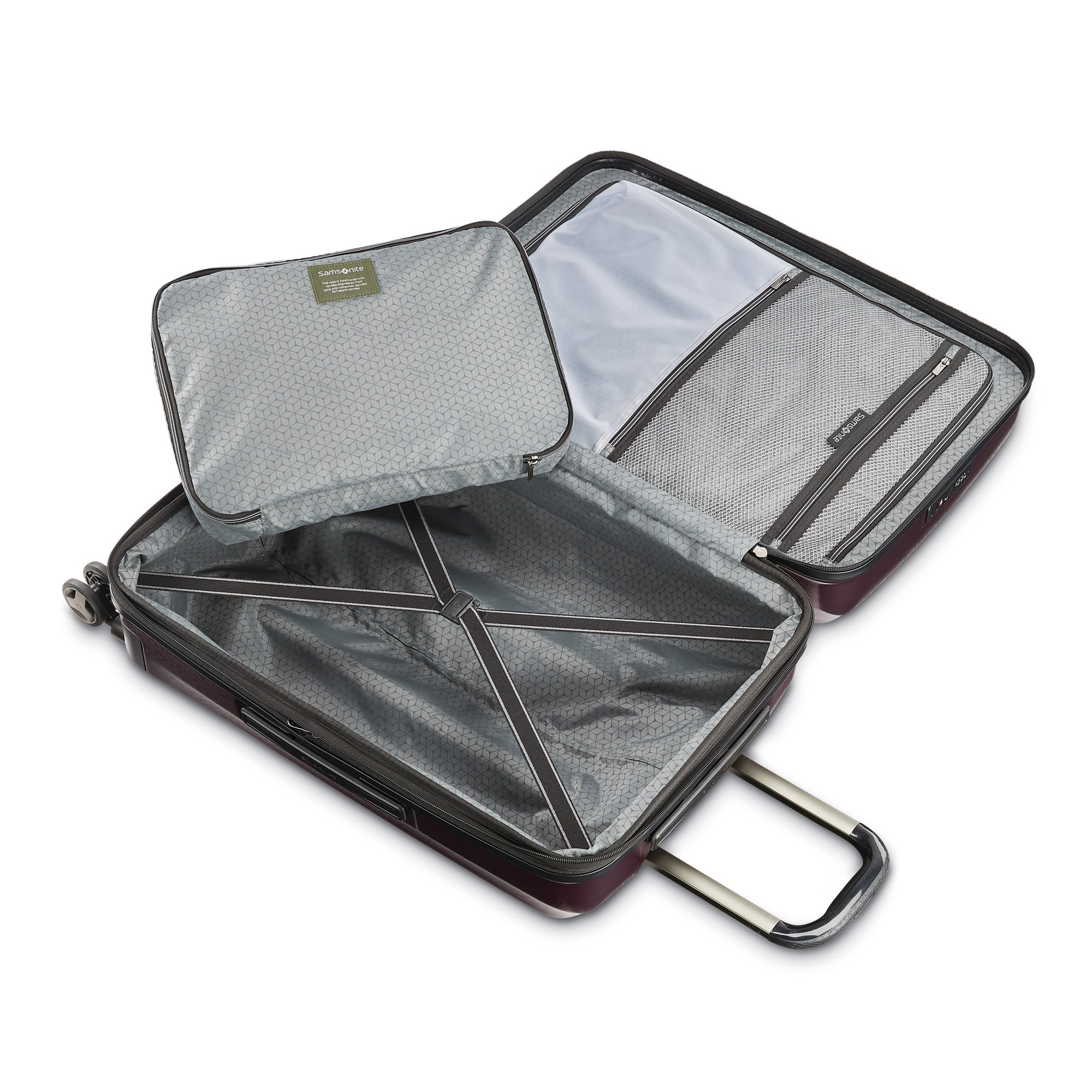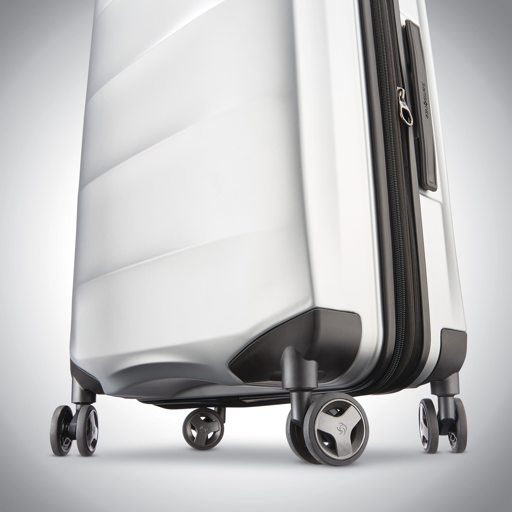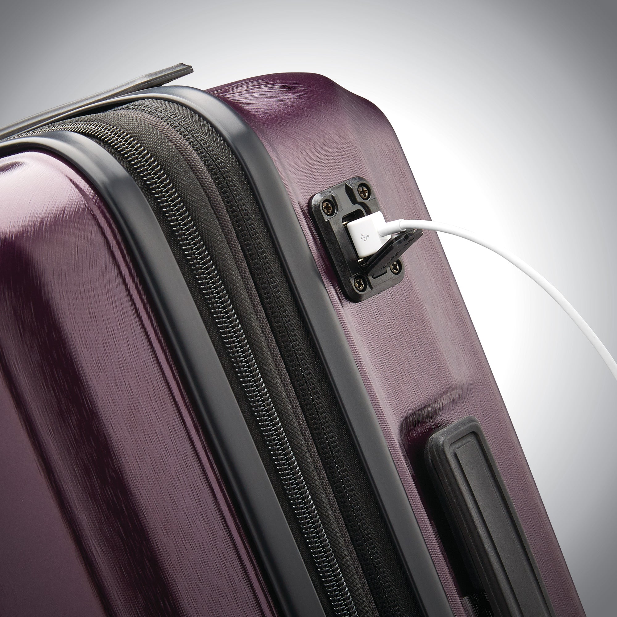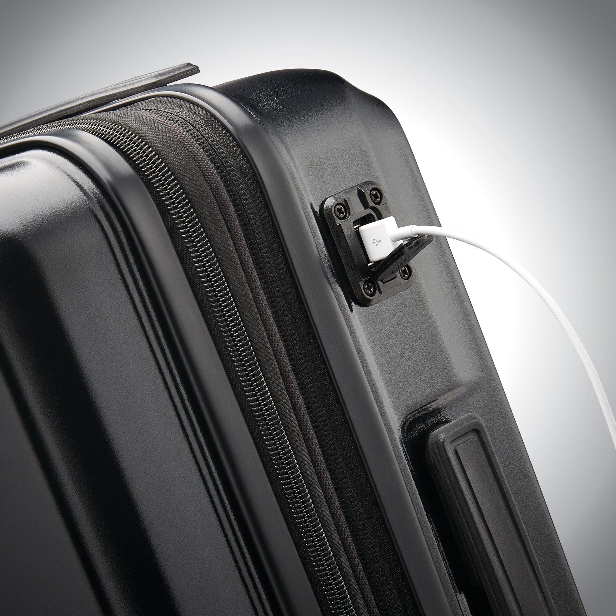 Elevate your travel experience with the Samsonite Octiv Lightweight Hard Shell Luggage collection, the perfect blend of style and functionality for the modern traveler. Crafted from durable polycarbonate and features a scratch-resistant coating that helps maintain a pristine look while preventing cracks and dents. Its ergonomic telescopic handle adjusts to 8 different heights, while the textured grip allows for easy one-handed maneuvering. Two soft carry handles provide convenient lifting options. Experience effortless mobility with patented 360-degree spinner wheels equipped with advanced Aero Trac Suspension Technology, which absorbs shocks and bumps for smooth and steady rolling in any direction. Stay connected on the go with a built-in USB port incorporated in the carry-on (just add your own external battery) and enjoy expandable zippers that add up to 1.5 inches of packing space. The spacious interior includes a snap-in packing cube, a WetPak pouch for liquids, and mesh pockets to keep everything organized. Travel with peace of mind thanks to the zipper latched recessed TSA-approved lock, ensuring your belongings are secure throughout your journey.