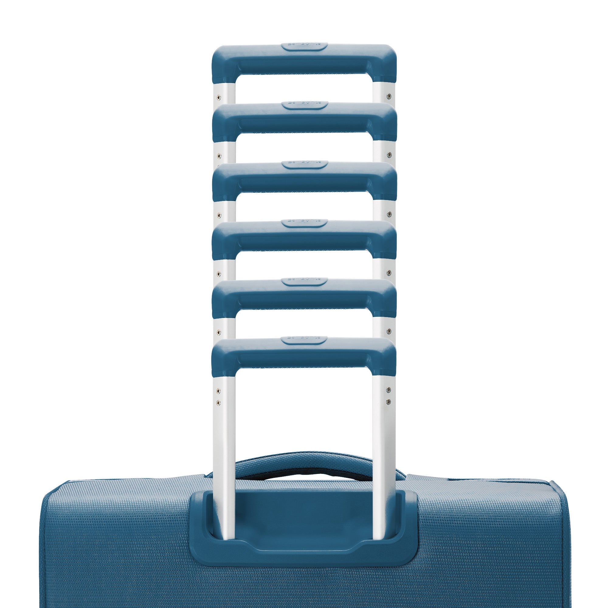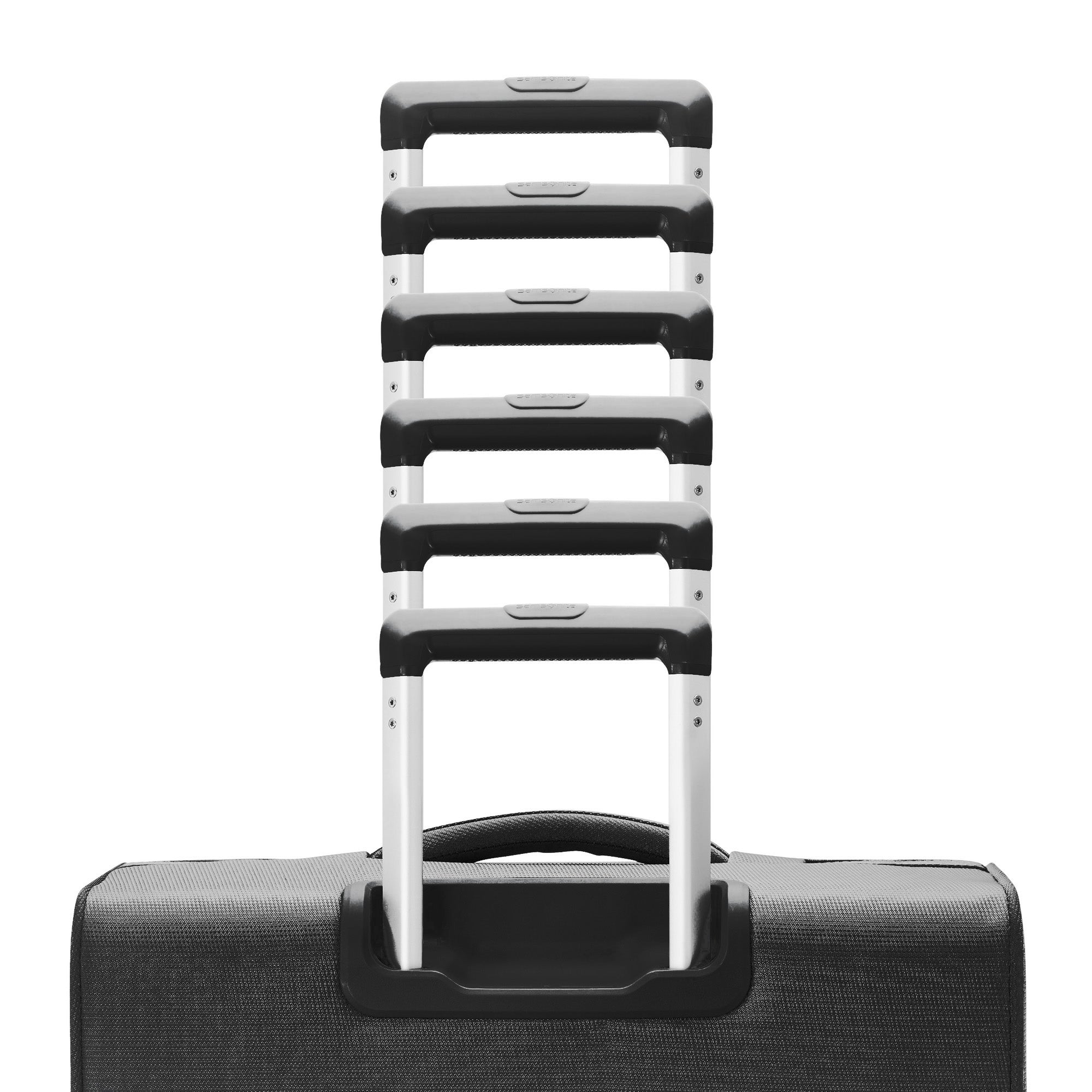 • UpLIFT Design - RightHeight handle system with multi-stop adjustments allow you to extend the handle to a height that's customized to you. Mesh-dual access pocket that's also accessible from the exterior face panel pocket - gives quick on-the-go access to items packed away Seatbelt Webbing Cross Straps maximizes packing space by compressing your clothes. Removable 3-1-1 Wet Pouch keeps all your liquids safe from your clothing