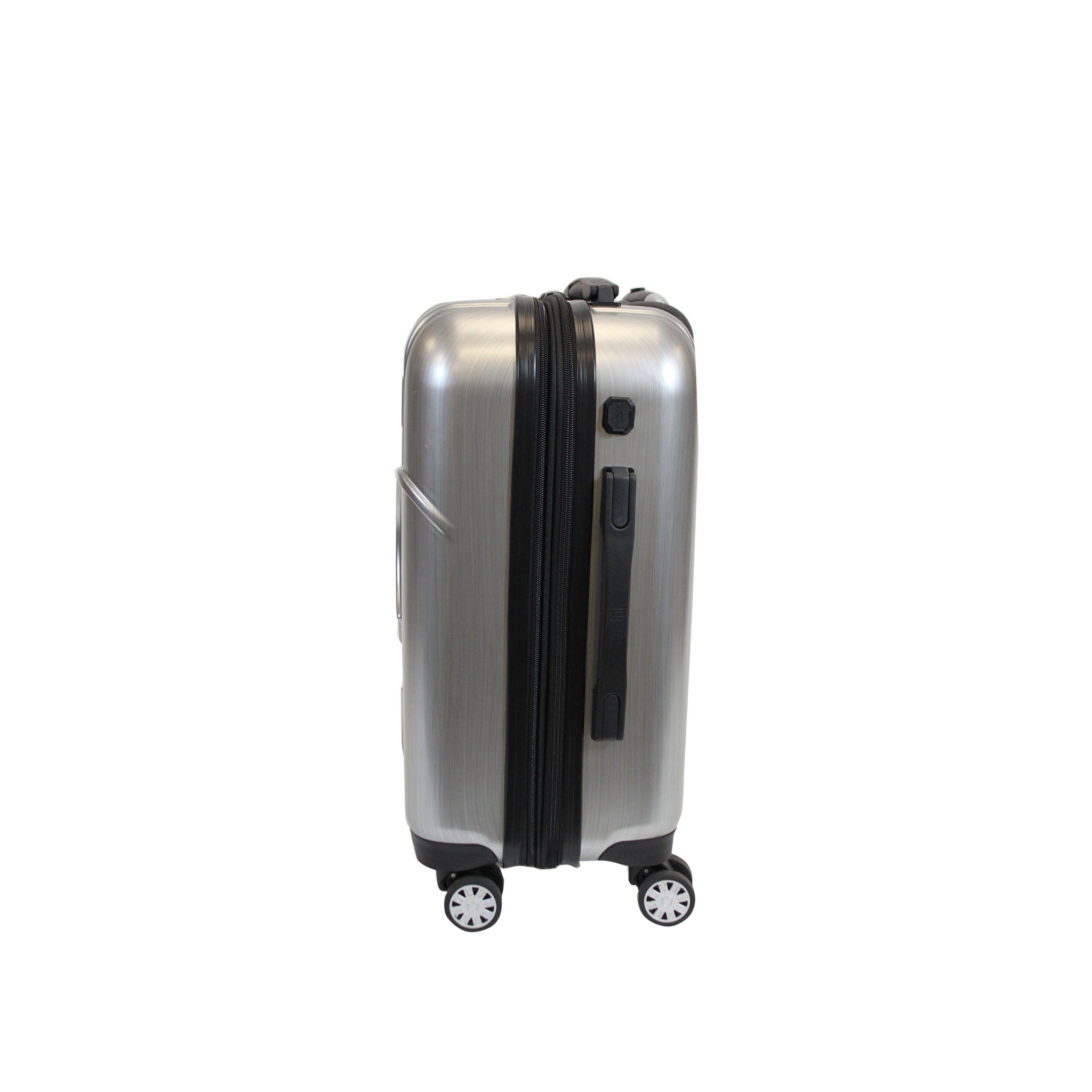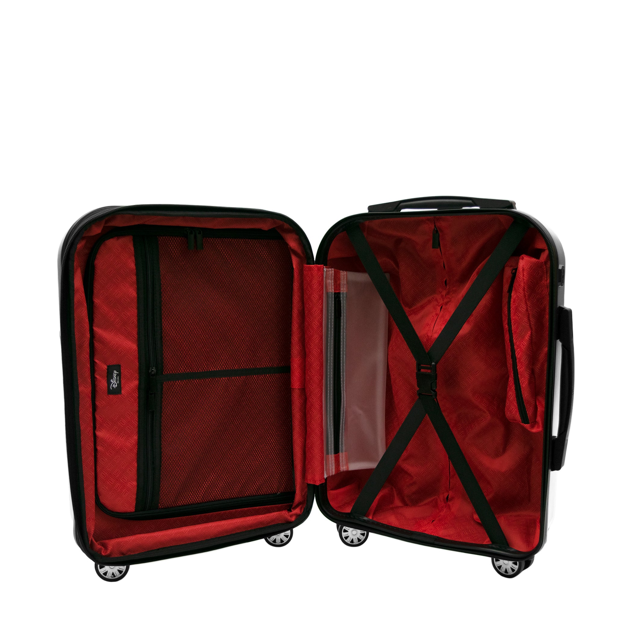 Travel like the VIP you are with the Molded Mickey Icon 21in Hard sided Rolling Luggage. It is made with durable ABS Plastic with a molded Mickey Mouse logo on the front. It includes an Internal pocket that lets you plug in your own power supply and charge your phone from the outside with a built in USB port. The luggage is made with dual spinner wheels and has an aluminum telescopic handle that tucks away when not in use. A divided full-body main compartment is lined with polyester fabric and features a zip wet dry compartment for personal essentials and 2 mesh zip pockets for small accessories. Built-in clothing compression straps hold items in place and let you pack more. The luggage is also expandable for more space with a 2 inch zipper gusset. Finally, it includes retractable top and side carry handles for loading into trunks, cars, and overhead bins. The luggage is easy to spot clean and is backed with a 5 year warranty.