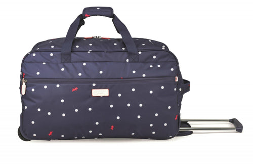 This super lightweight Radley bag is perfect for frequent travelers. Made from durable 840 denier polyester, it features unstructured pockets to maximize packing capabilities, as well as TSA padlocks and a trolley system for easy maneuverability. Boasting a stylish, all-over spot print and the iconic Scottie Dog, this duffle bag is decorated with sophisticated Radley branding throughout.