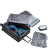 • Interior organization includes a tri-fold suiter, removable draw string pouch, toiletry kit, and numerous zippered pockets to secure personal items.