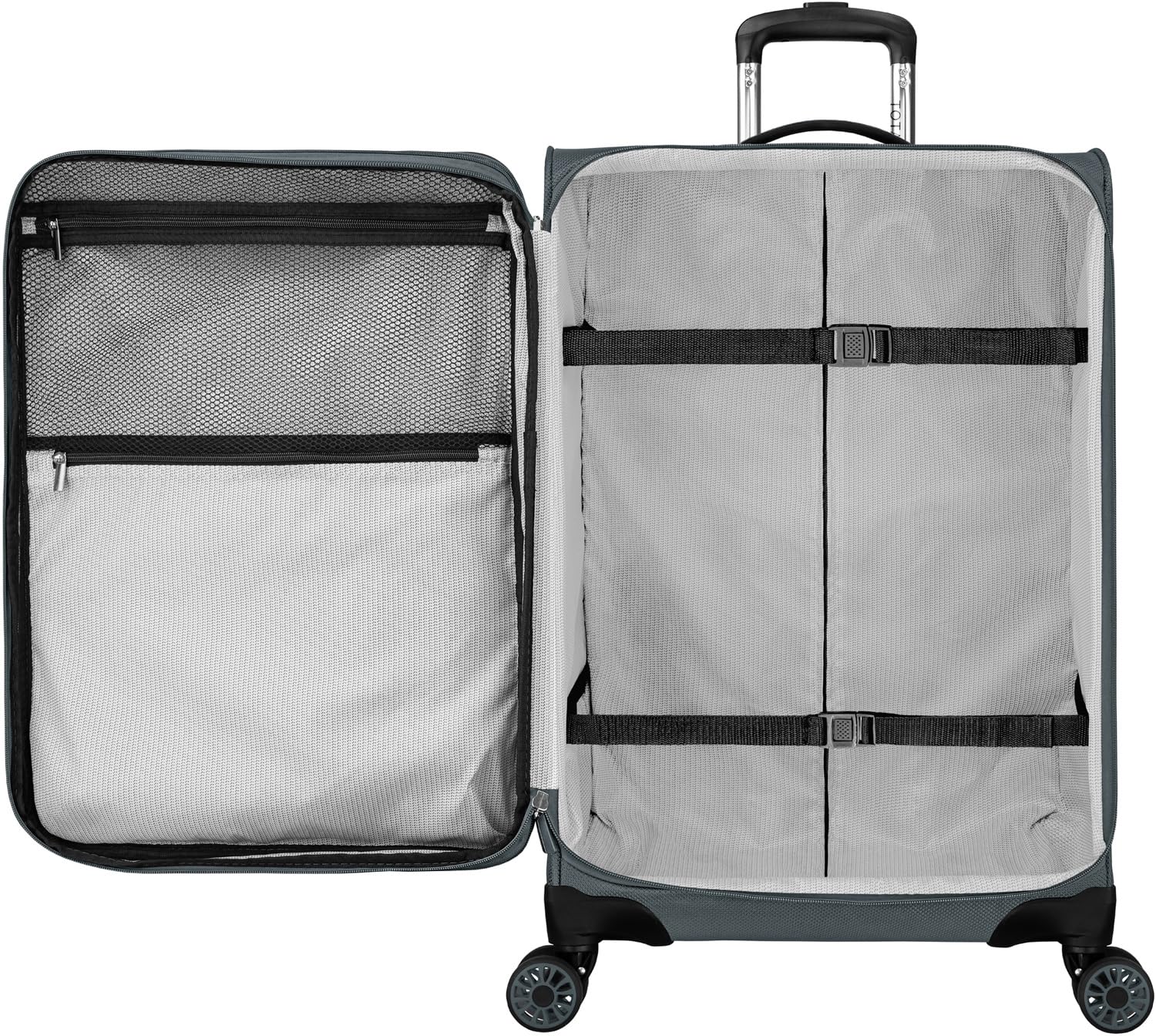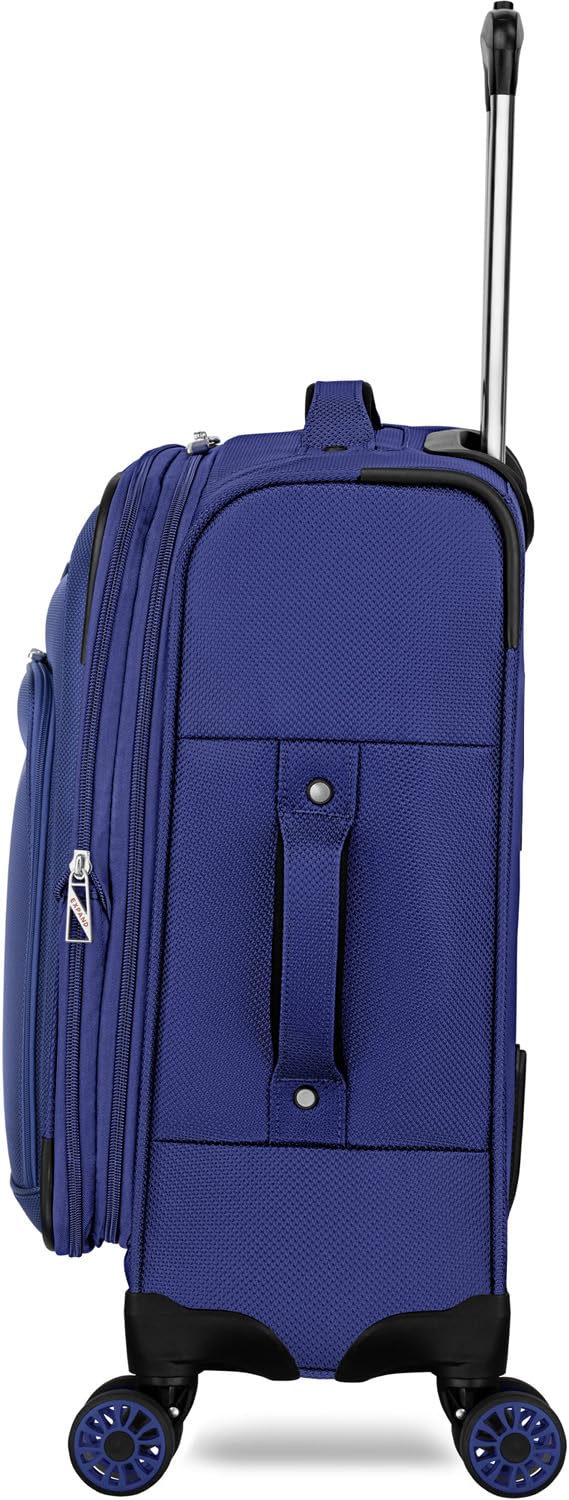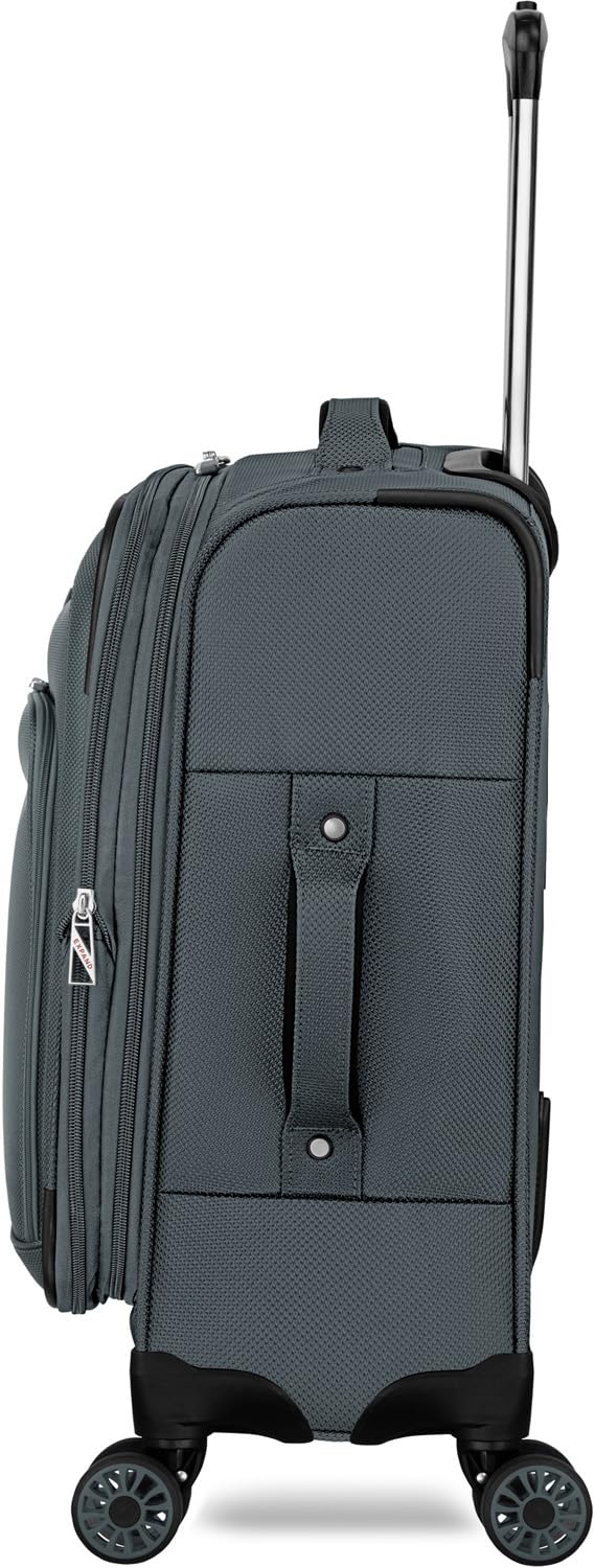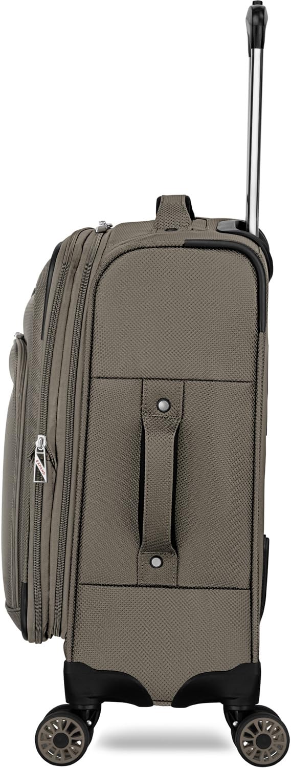 The Total Travelware Charleston 20" spinner is lightweight and built to last. Featuring durable poly-ballistic, 2" expandability for extra packing capacity, and a lightweight injection molded frame, this case is loaded with features! With the recessed 8-wheel spinner system, it maneuvers easily in all directions and the multistage locking handle adjusts to your height. Featuring screw-in wheel housings, reinforced carry-handles, and ergonomic zipper pulls. This 20 spinner is carry-on friendly and is ideal for both short and long trips. Whether traveling by car or by plane, for business or pleasure, the Charleston 20" spinner is the perfect blend of function and fashion. Covered by a 5 Year Limited Warranty.