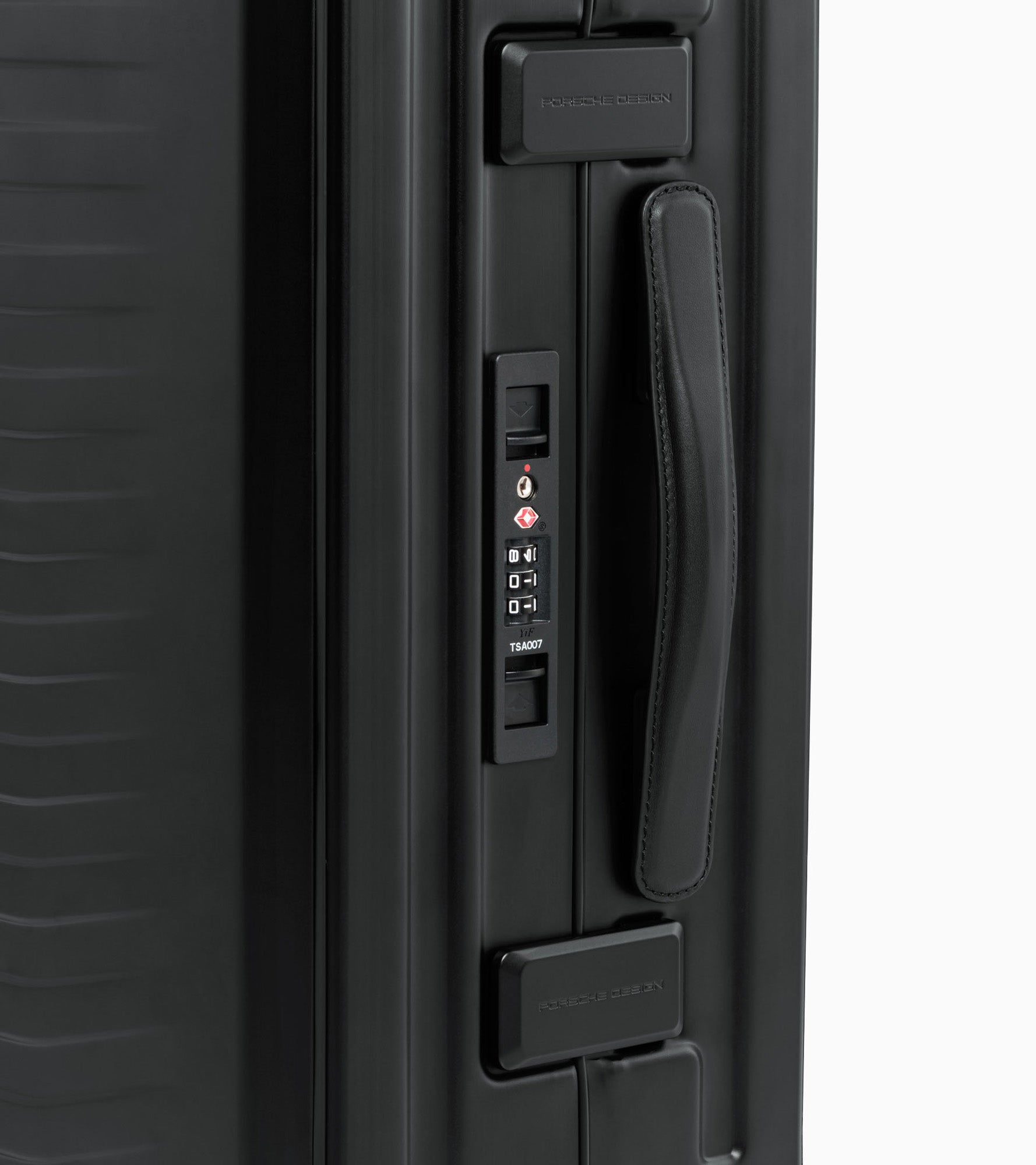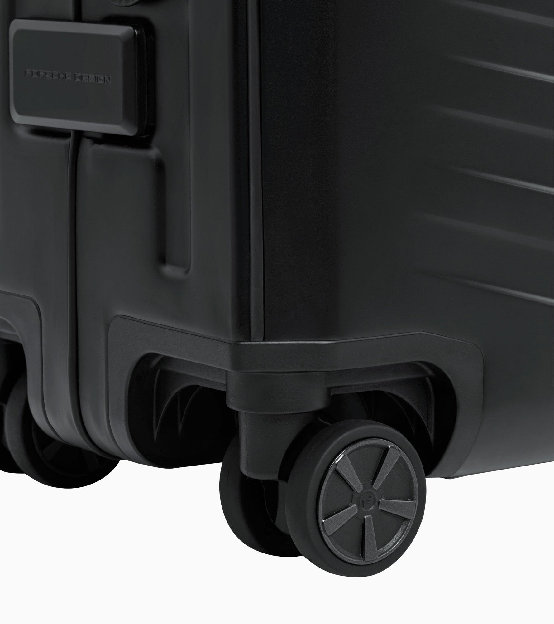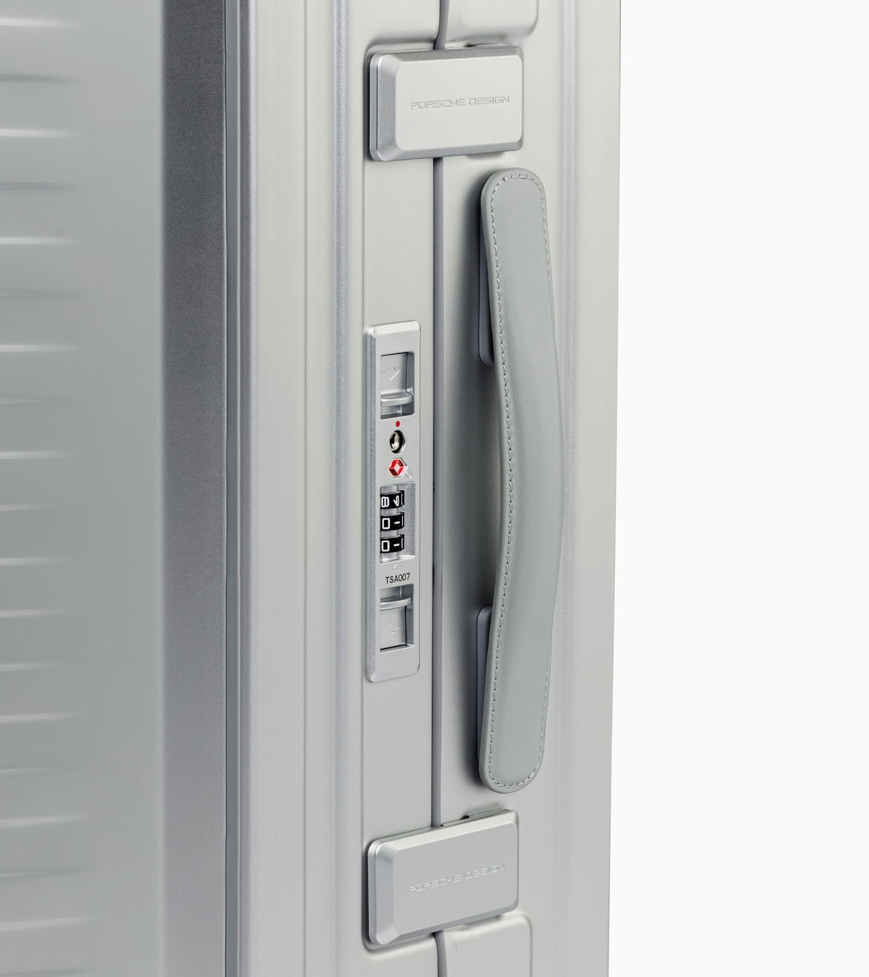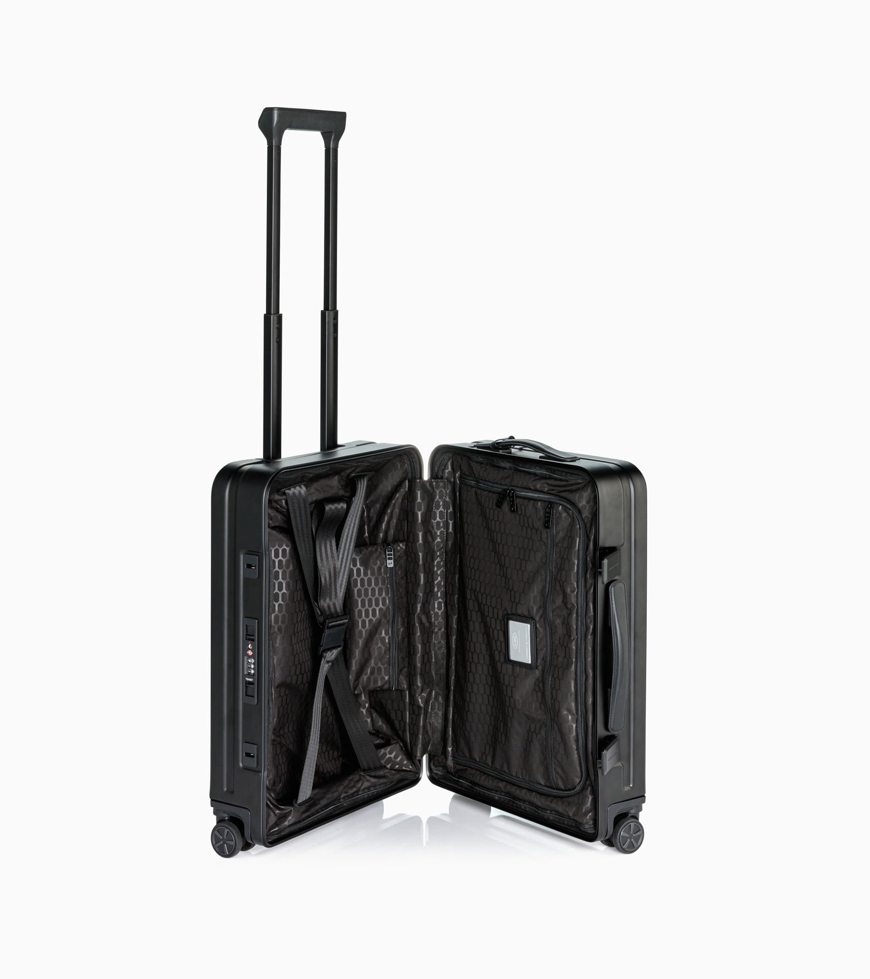 A cabin trolley made of high-quality anodised aluminium, embodying Porsche DNA in every detail with its innovative construction.?