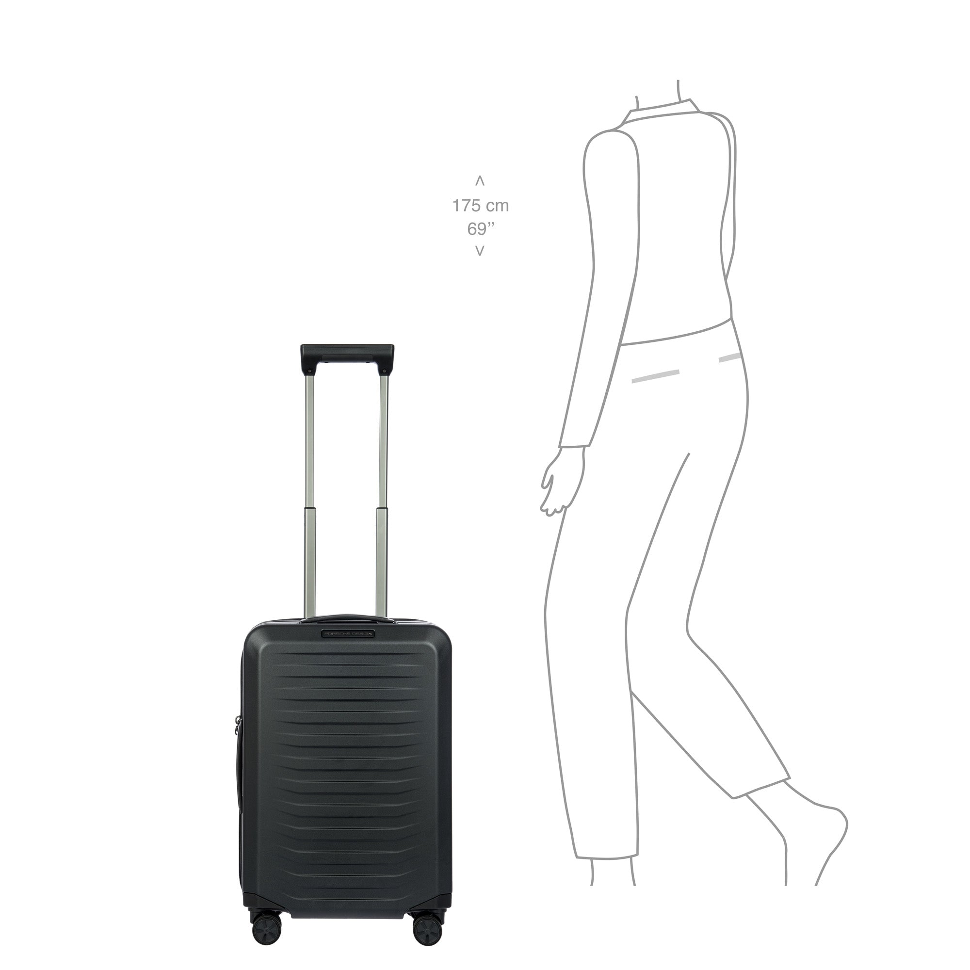 Ultra-light and inspired by the colors of the Porsche cars: the Roadster Hardcase collection. The polycarbonate luggage series developed by the Studio F.A. Porsche is the perfect fusion of form, function and design. The Porsche Design Roadster Hardcase 4W Trolley S amazes with the lightweight and its dynamic monochrome look with Porsche Signature details.