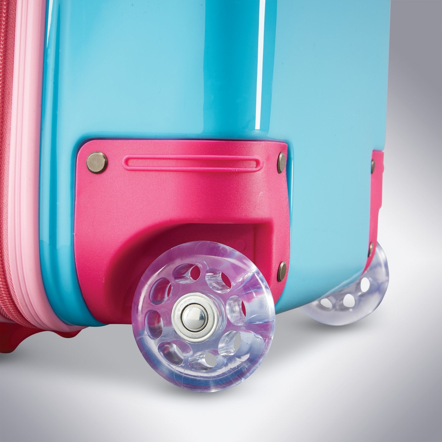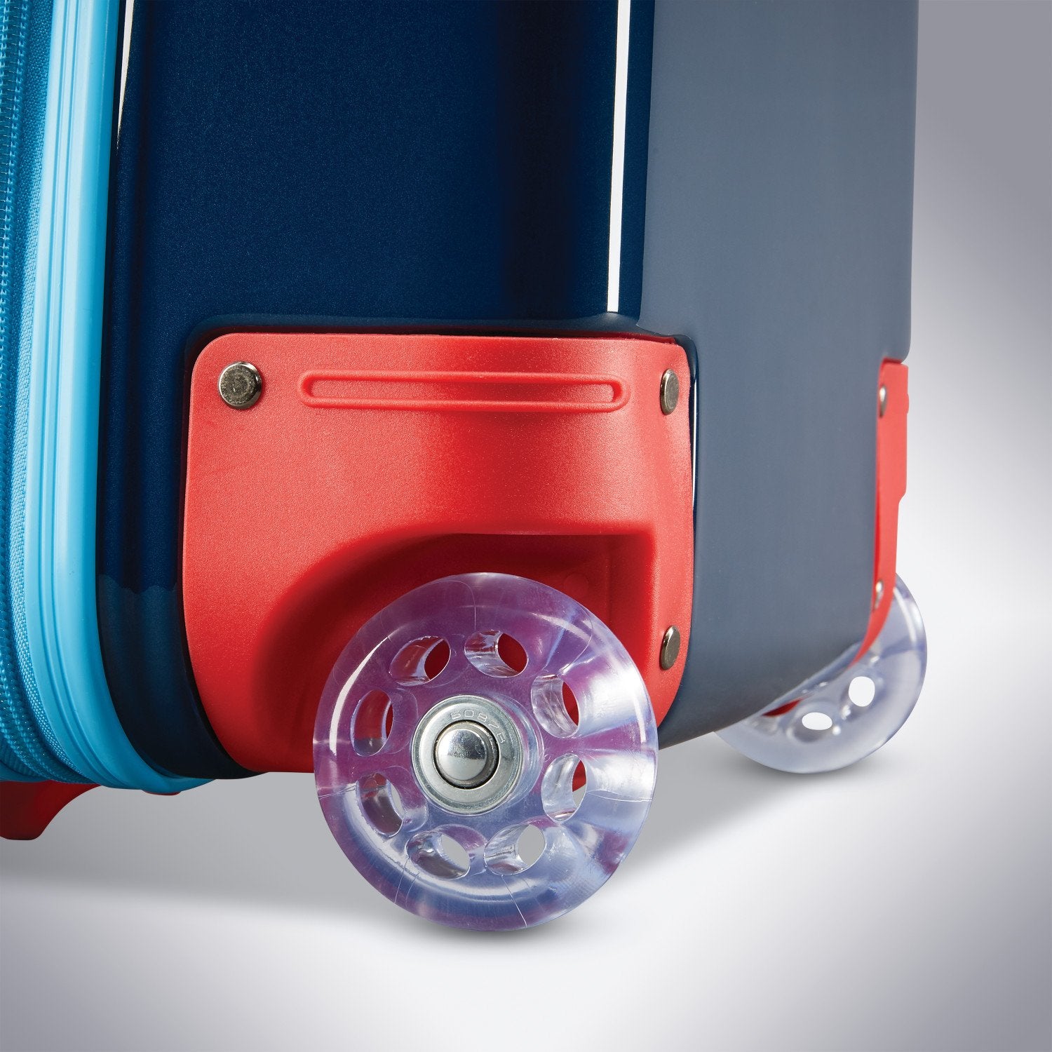 The American Tourister 18" Upright is made from lightweight and durable polyester material and features a sleek design with in-line mounted skate wheels, an easy pull handle, and a top grab handle for easy lifting. The interior is fully lined and detailed with crisscross tie-down straps to hold clothing in place. Detailed with colorful graphics of your favorite Star Wars characters, Nickeodeon, Disney princesses, and other Disney stars, this case is perfect for boys and girls on the go. Pack more fun with this luggage!