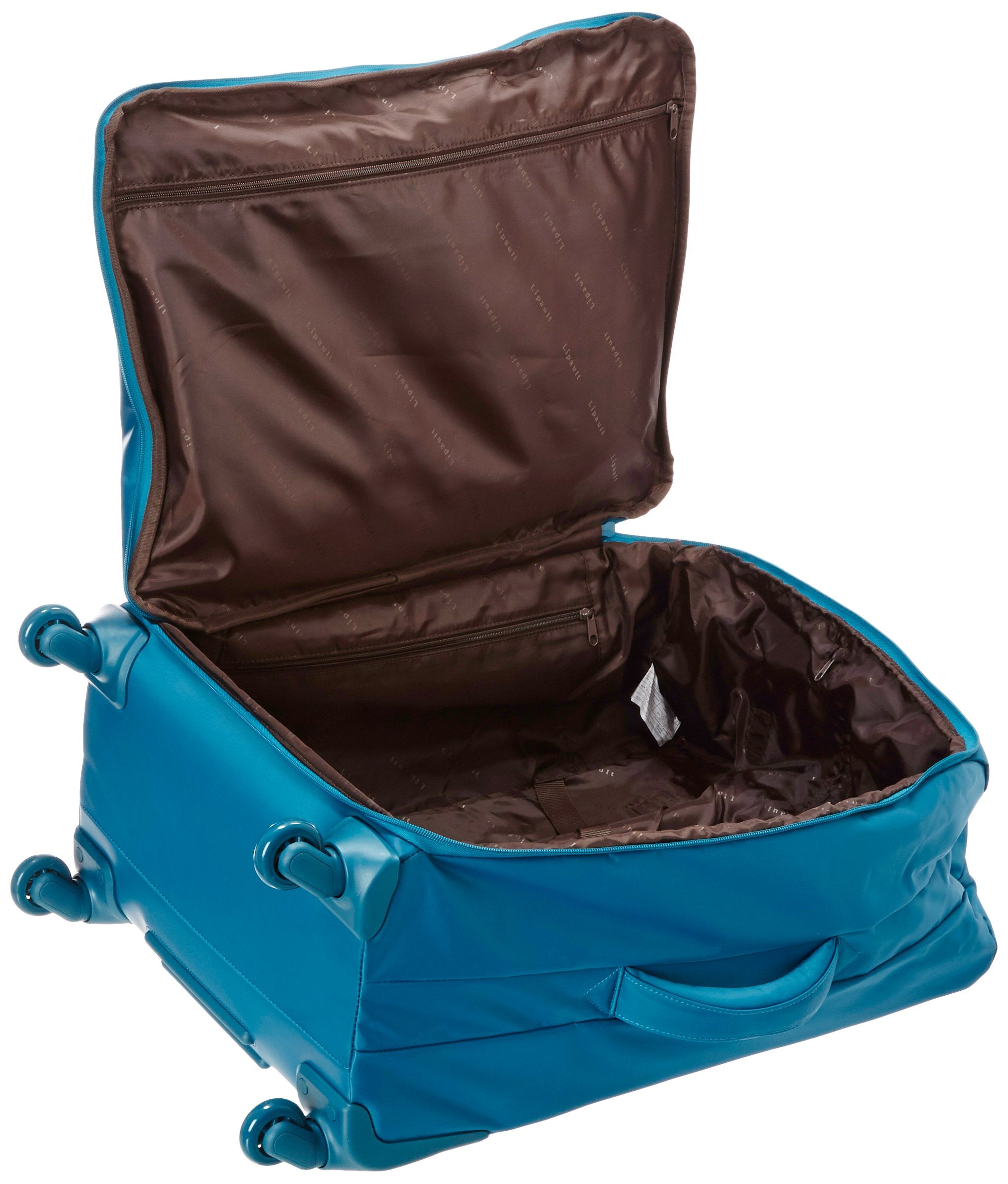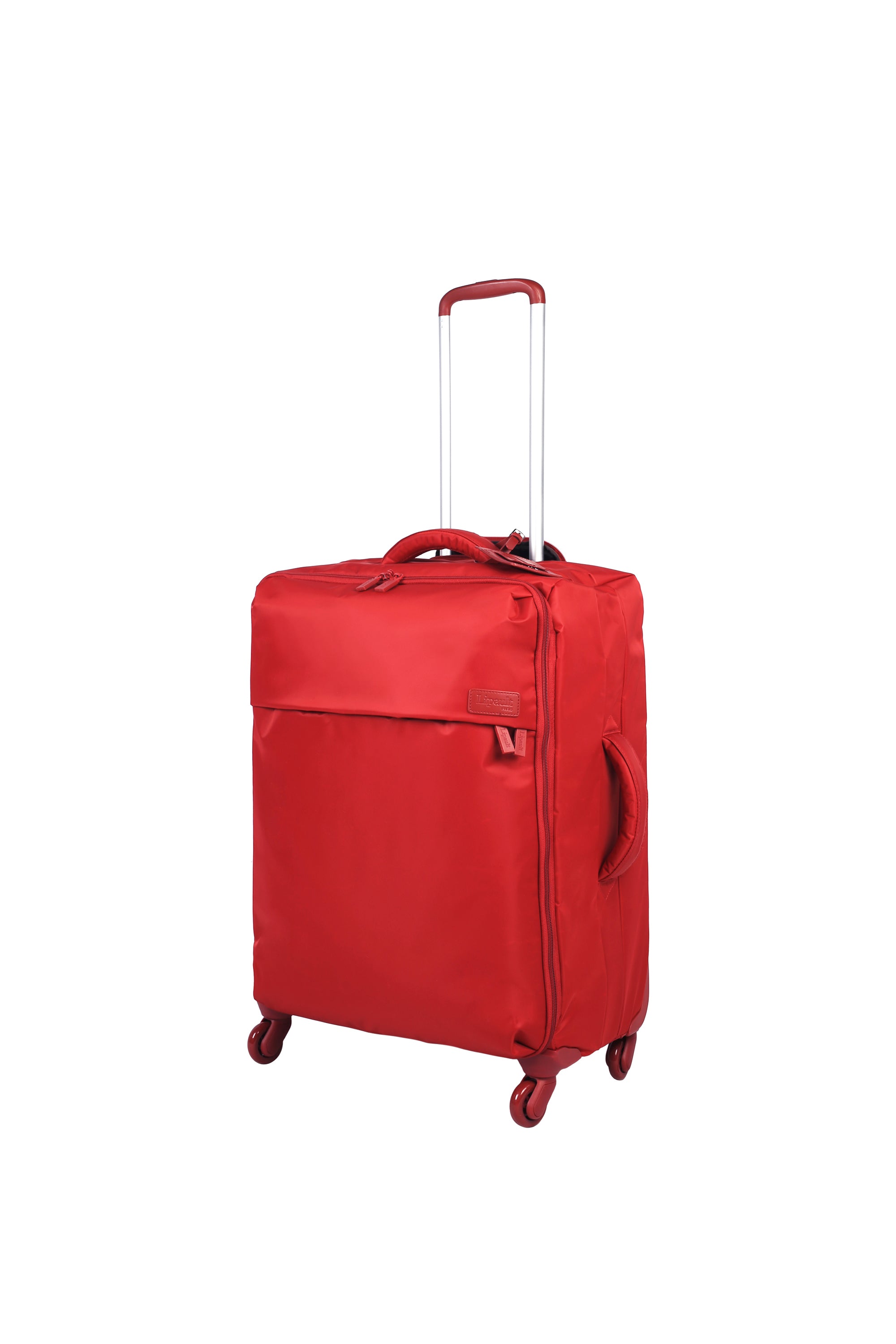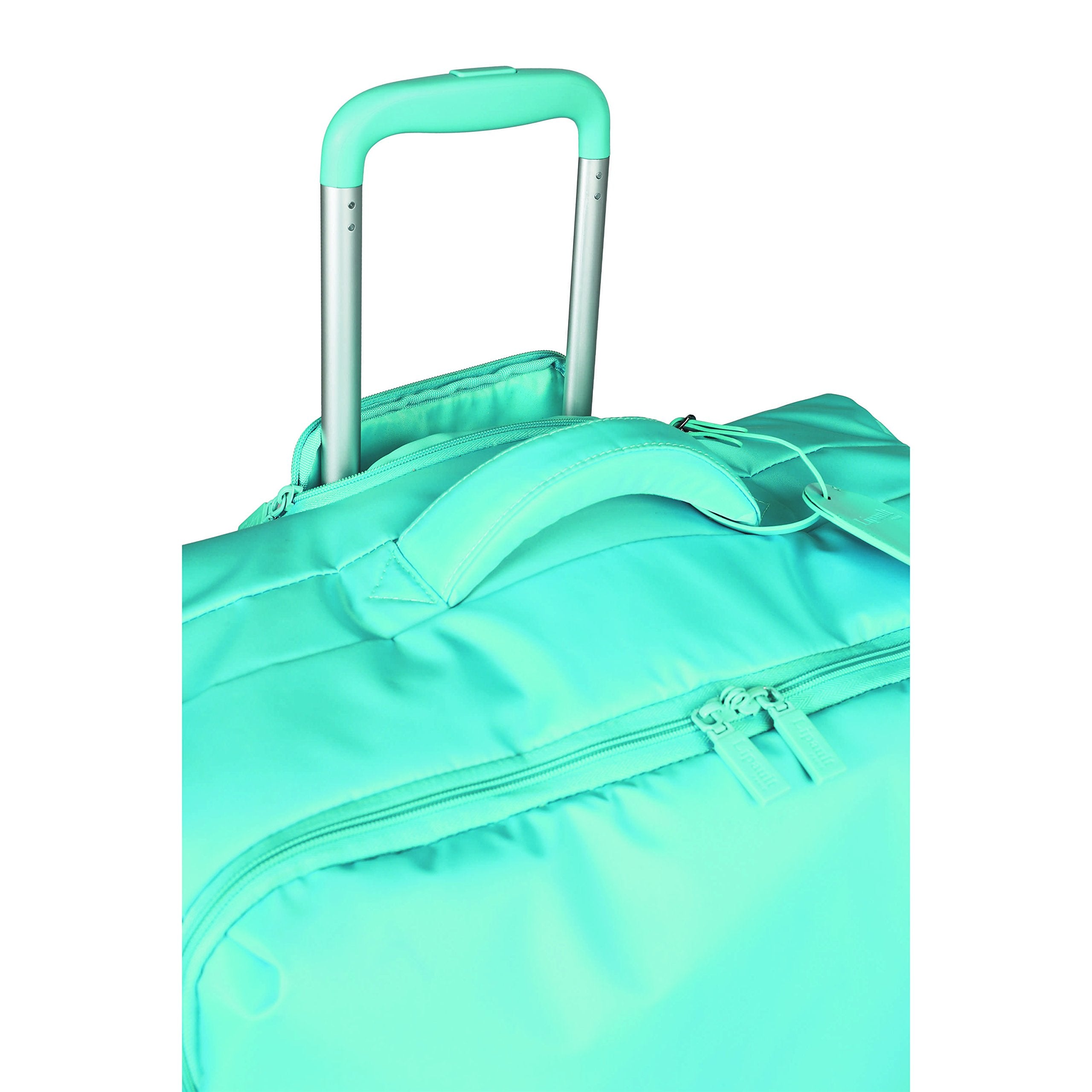 Fast turns. Sharp curves. Speed bumps. Go anywhere and in any direction with this spin-savvy carry-on. Its four wheels turn 360 Four wheel spinner wheel system for maximum functionality. Vibrant Fashion colors. Durable and water resistant. PVC reinforced. Nylon. 3 Year Guarantee. Cabin luggage that can be taken on board an aircraft with most airlines. Size and weight allowances for cabin luggage vary by airline. If the bag is overstuffed, it may not be accepted by the airlines.