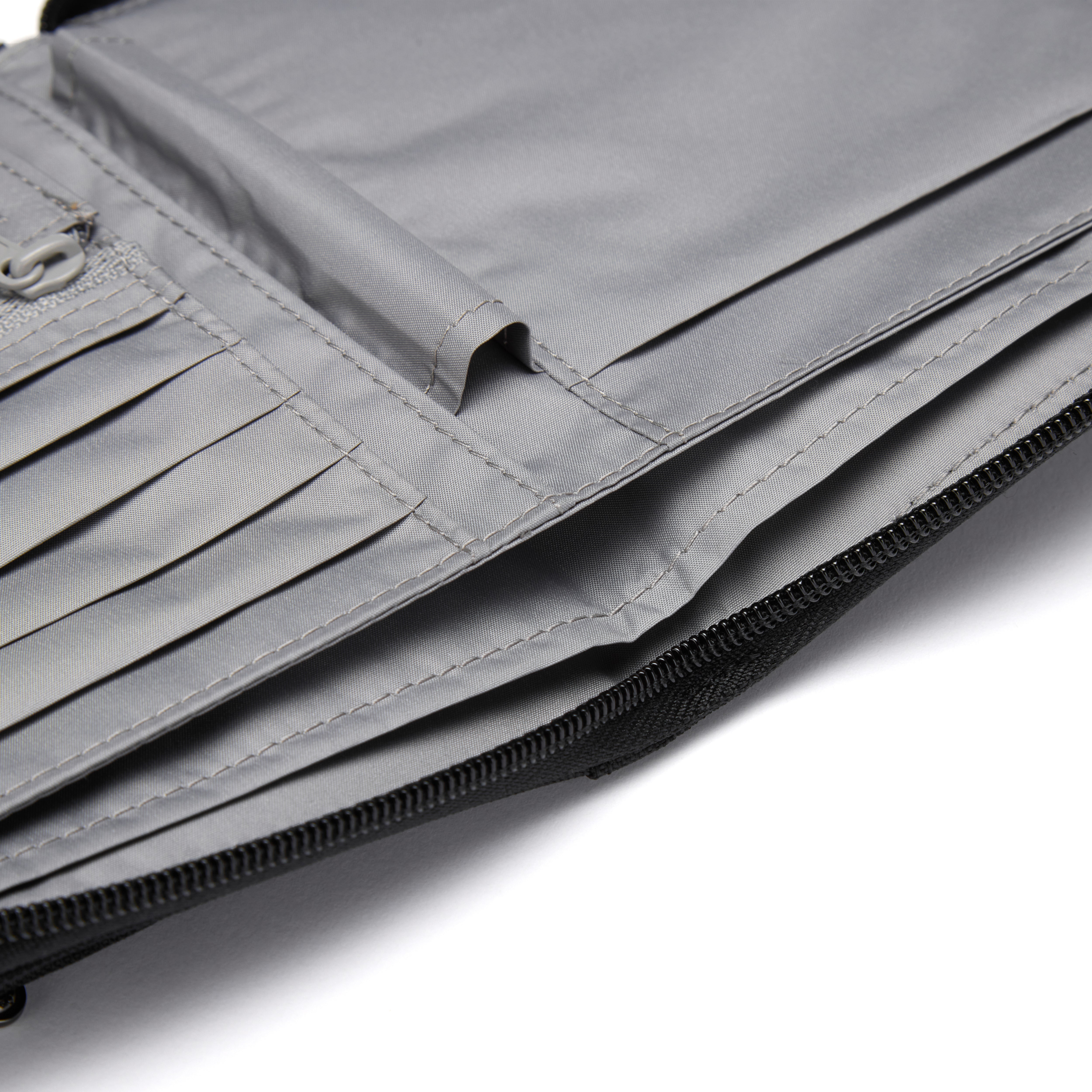 Sort your travel essentials into a zip folder that protects the information stored on your passport and cards. This Travel Organizer is made from RFID blocking material and has compartments for multiple currencies, space for a boarding pass and more.