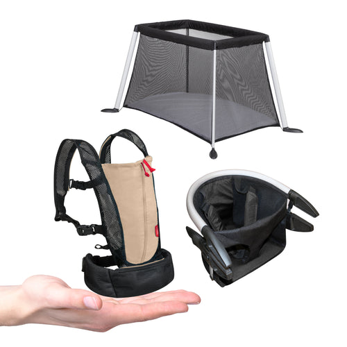 Bundle includes 1 of each: Airlight Carrier (your choice of color) + Black Lobster Highchair + Traveller Crib