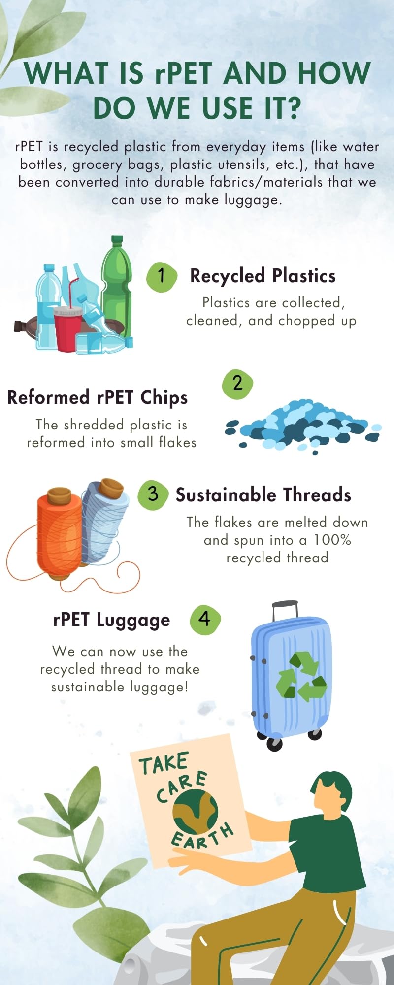 • SUSTAIN ABLY MADE, CONSCIOUSLY CARRIED : Crafted from durable rPET fabric made of recycled plastic bottles, this bag is a smart choice for travelers who care about their footprint without compromising on style or performance.