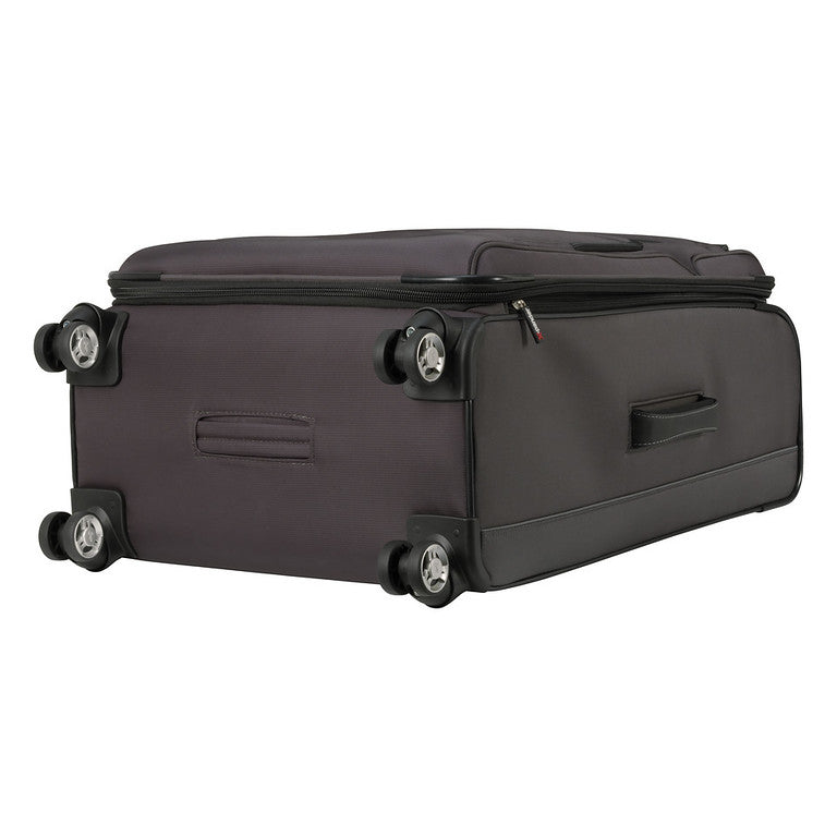 • Four dual spinner wheels allow for effortless mobility in any direction. Ergonomically designed handle with a textured TPR grip provide extra comfort when moving your case.