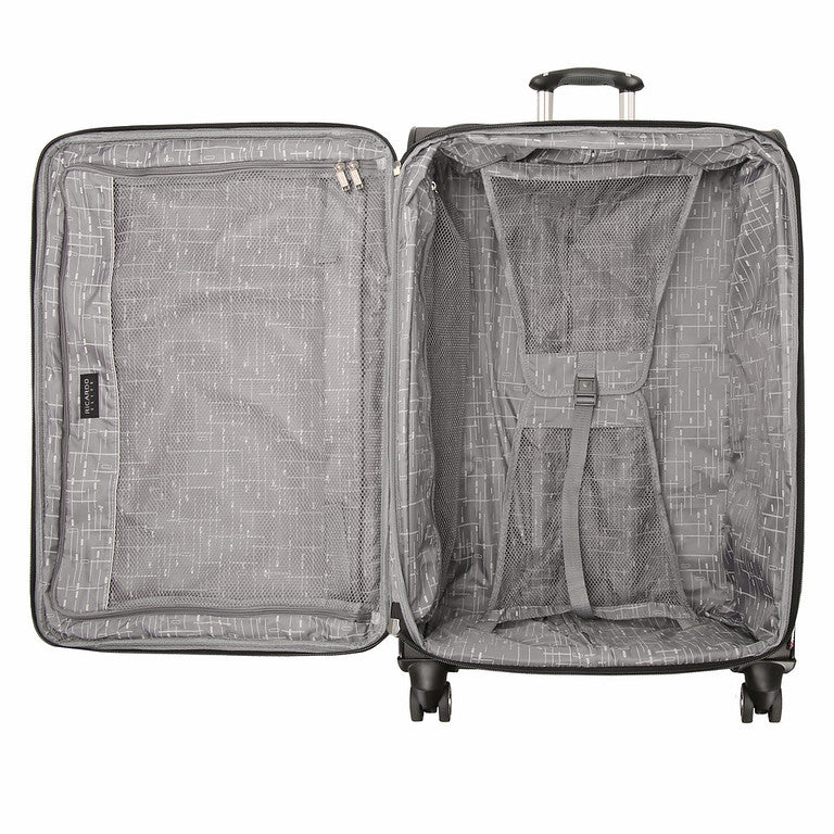 Lightweight spinner carryon provides exceptional mobility. This spinner case expands 2" with a pull of a zipper, while interior pockets provide packing organization. The retractable pull handle is durable and reliable for troule free use, and offers multiple locking stages for the proper handle height for comfortable rolling.