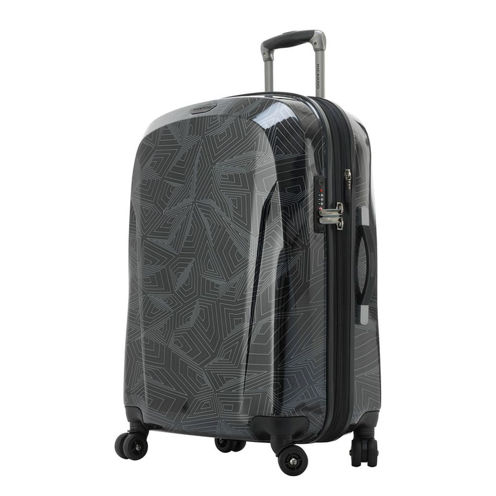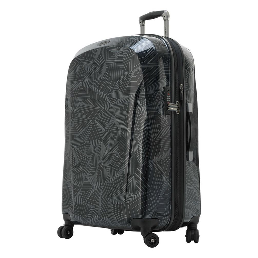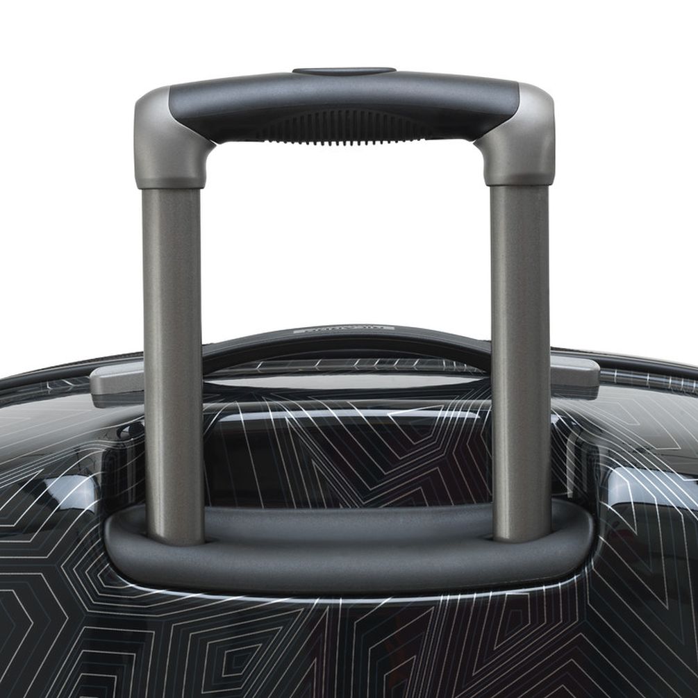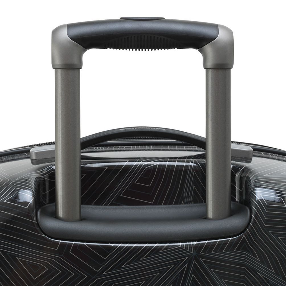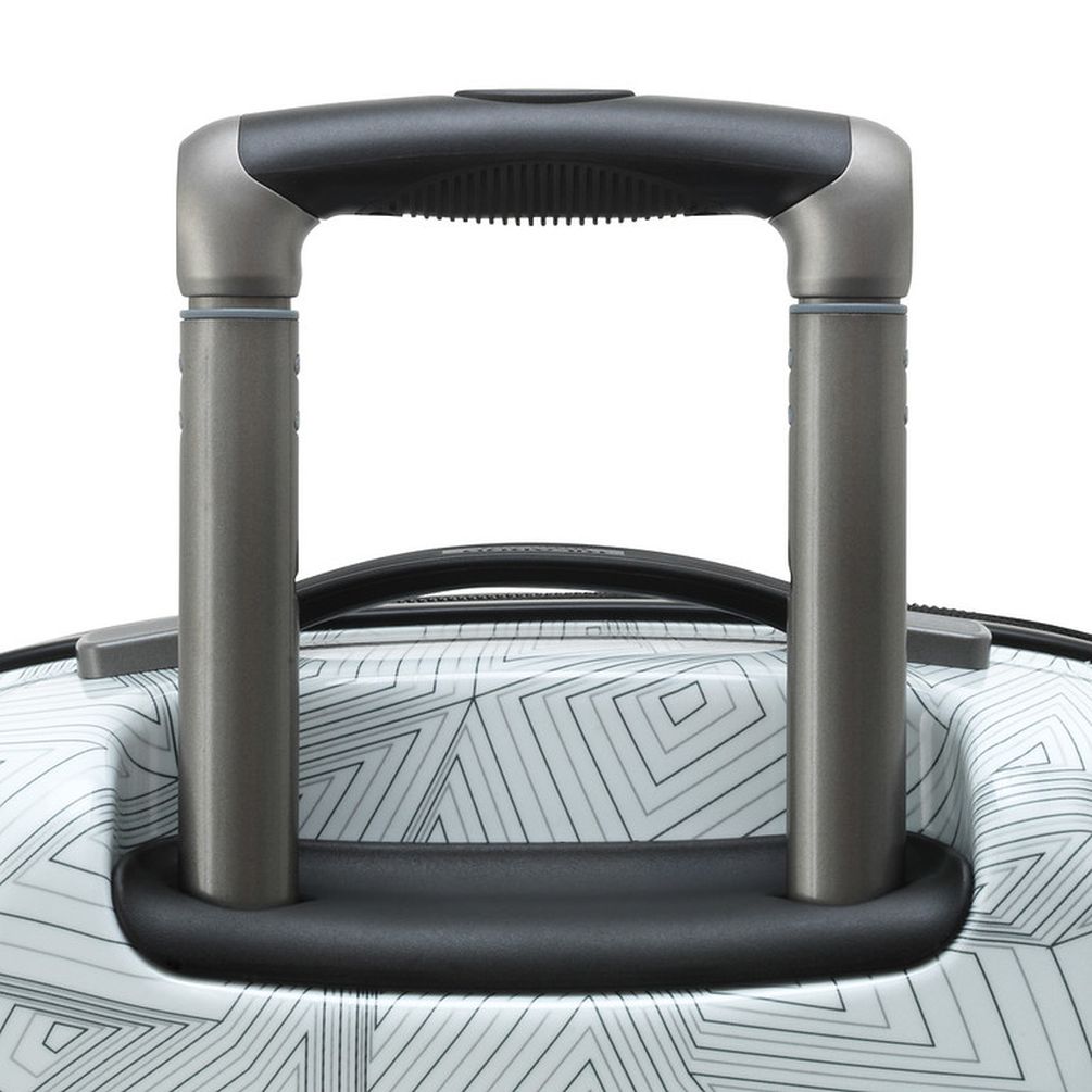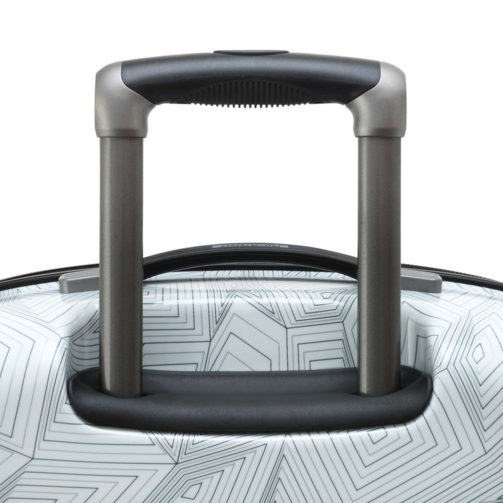 Style and durability are hallmarks of this expandable carry-on spinner case from the striking Spectrum collection. Featuring refined curves and a bold geometric pattern, this tough-wearing polycarbonate hardside protects your belongings at every stage of the journey. This lightweight case has a retractable handle and sturdy, smooth-glide spinner wheels that offer total control of motion. The extra-grippy gel carry handle promotes easy lifting into overhead bins and taxis. Keep organized on the road with smart interior features, such as a suit compartment, mesh pockets and tie-down straps. A dedicated pocket for your location tracking device offers peace of mind.