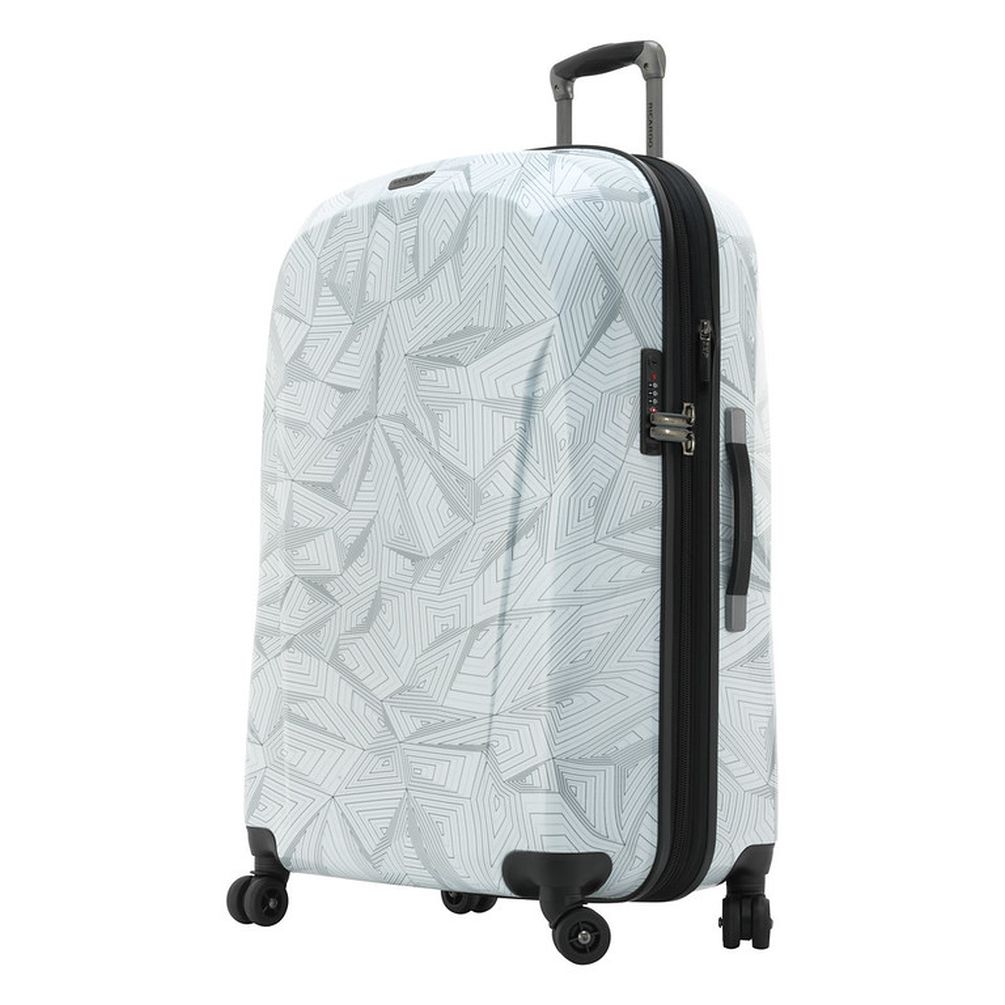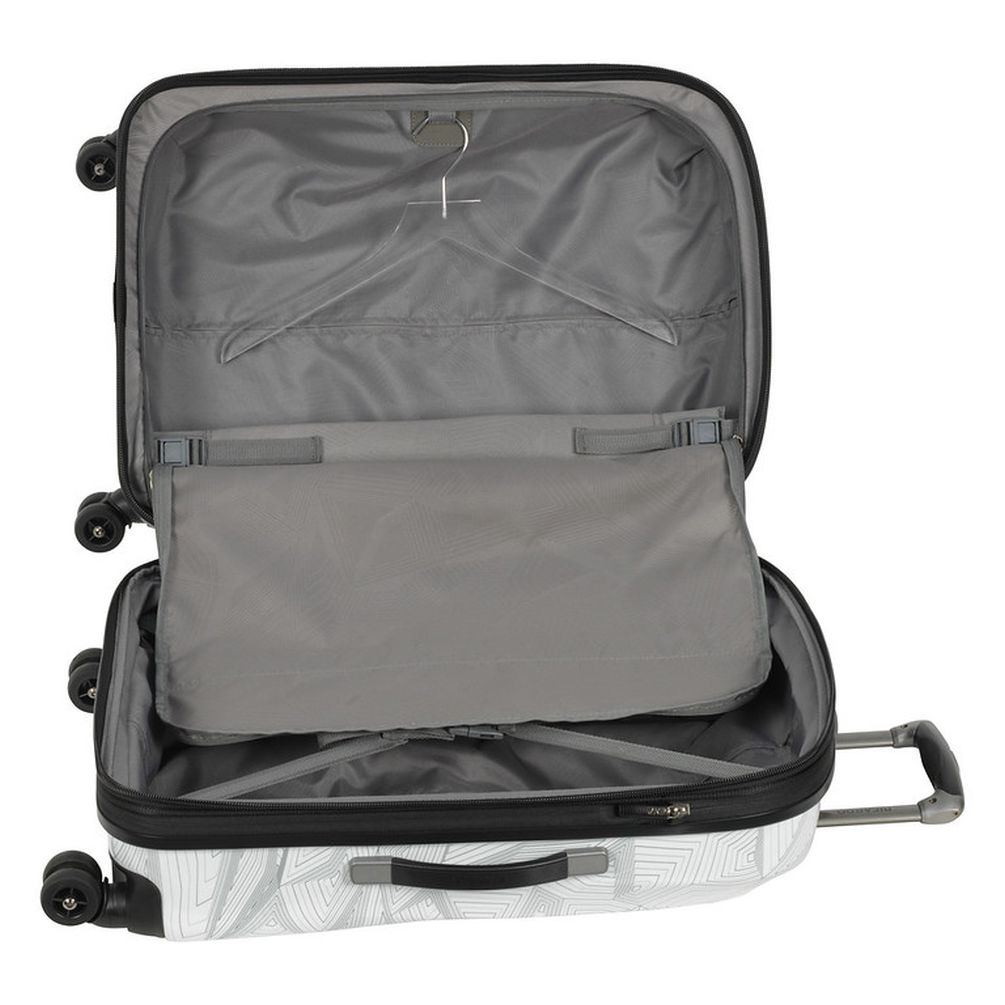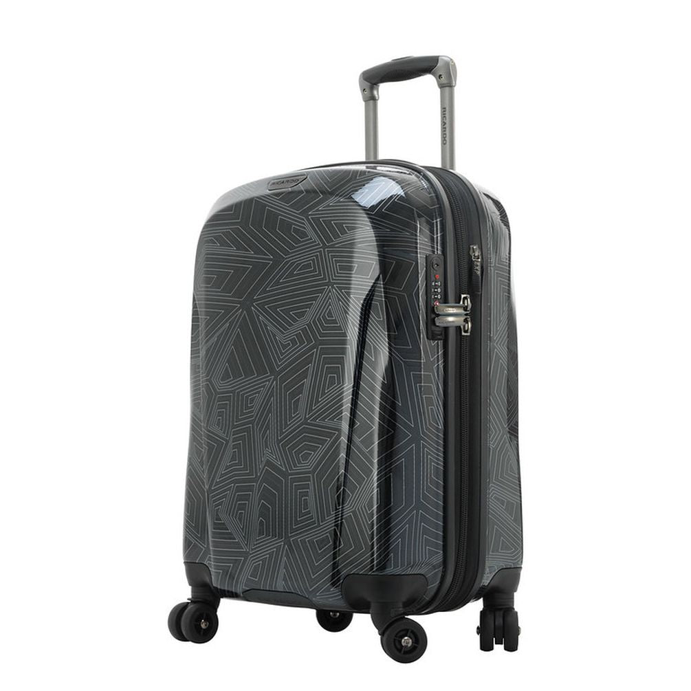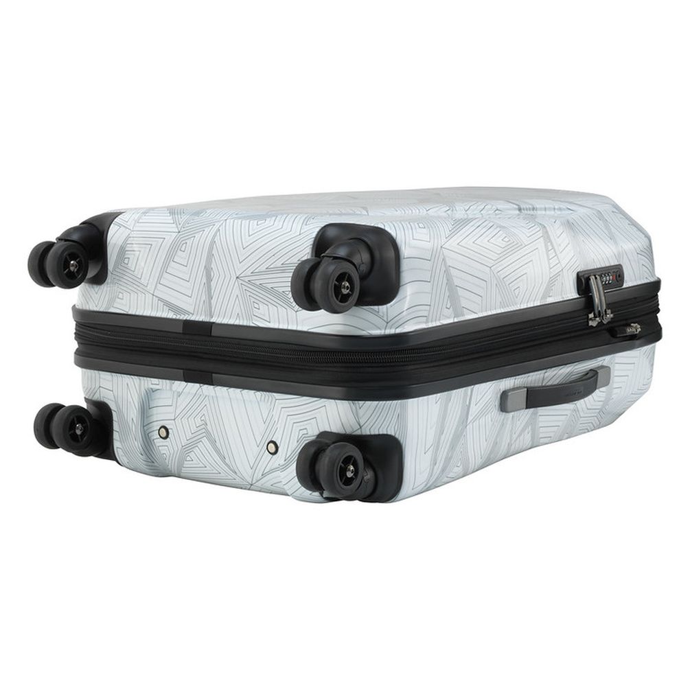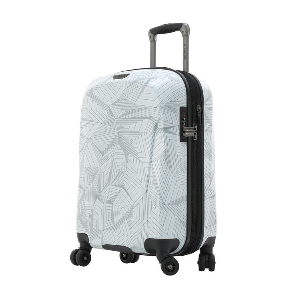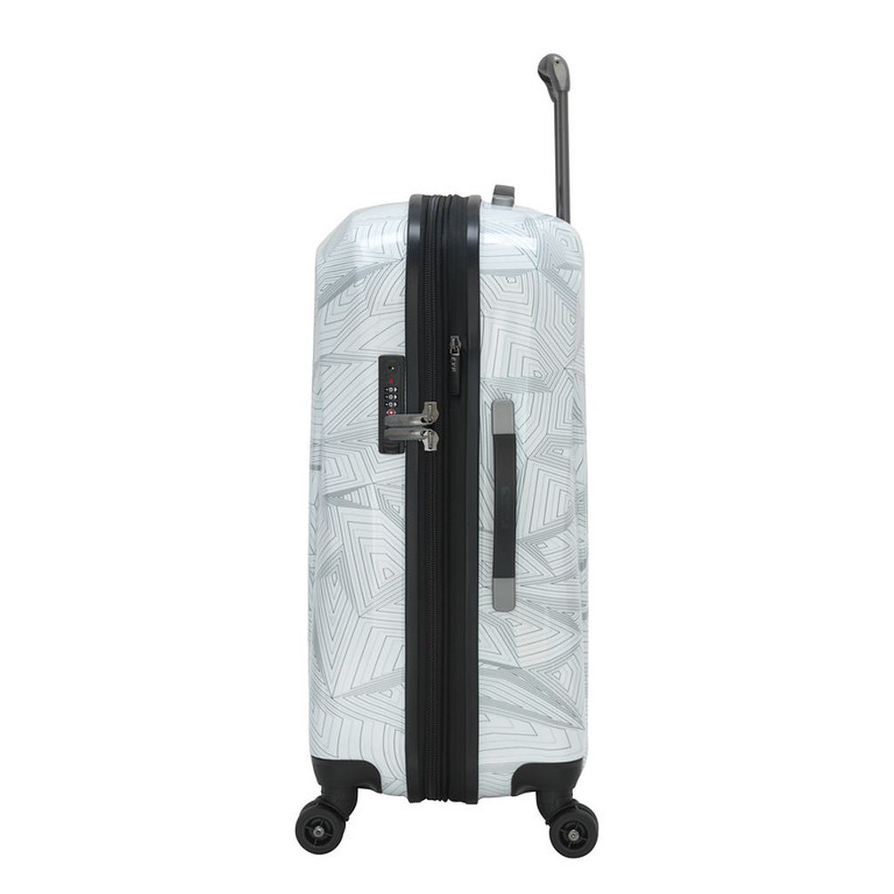 Style and durability are hallmarks of this expandable carry-on spinner case from the striking Spectrum collection. Featuring refined curves and a bold geometric pattern, this tough-wearing polycarbonate hardside protects your belongings at every stage of the journey. This lightweight case has a retractable handle and sturdy, smooth-glide spinner wheels that offer total control of motion. The extra-grippy gel carry handle promotes easy lifting into overhead bins and taxis. Keep organized on the road with smart interior features, such as a suit compartment, mesh pockets and tie-down straps. A dedicated pocket for your location tracking device offers peace of mind.