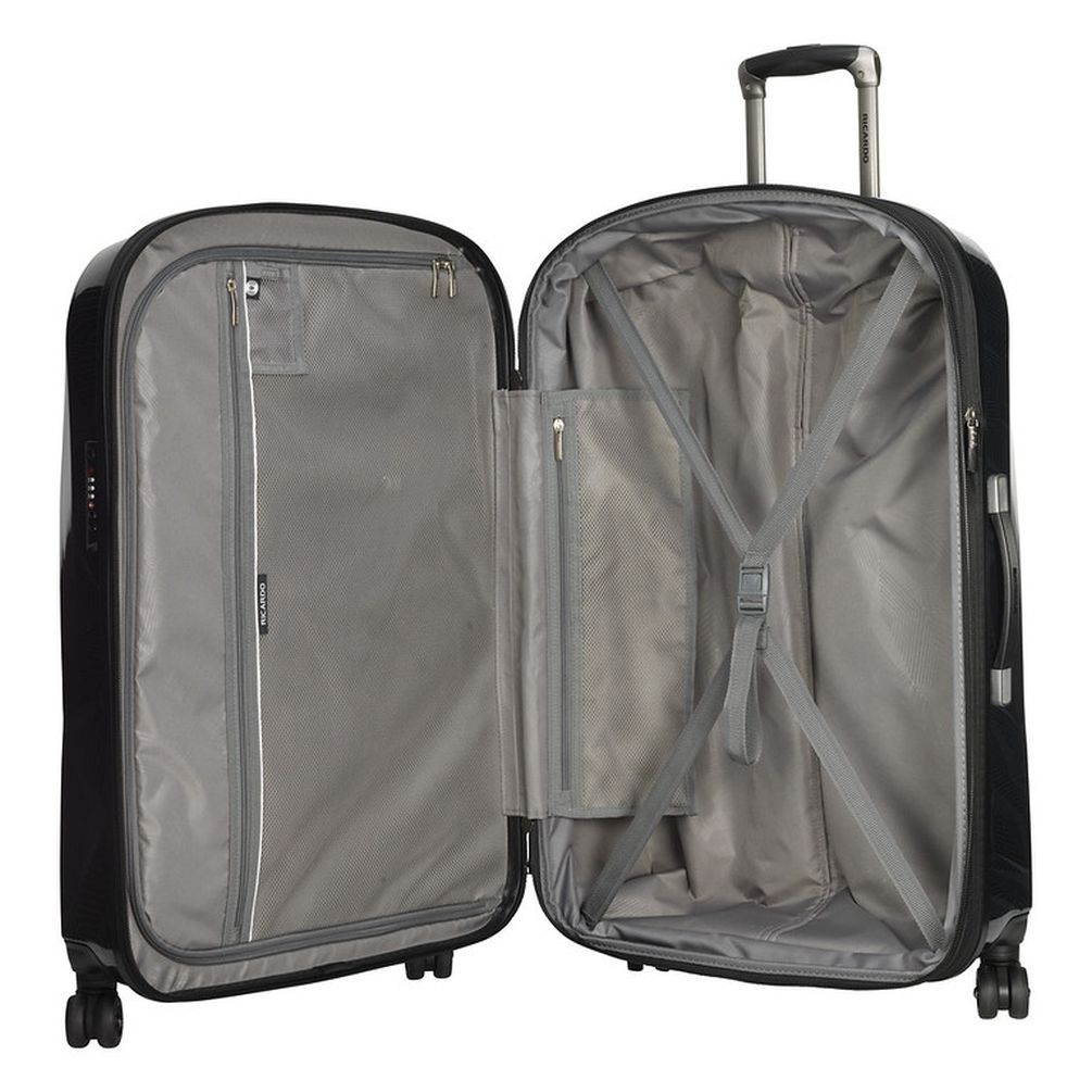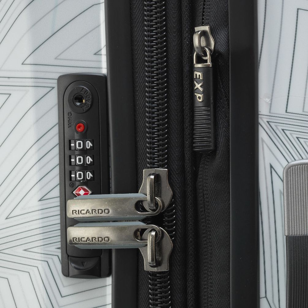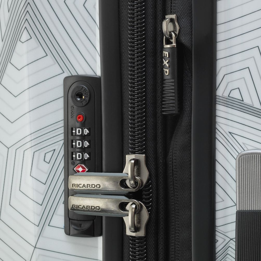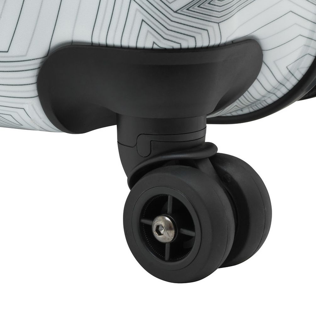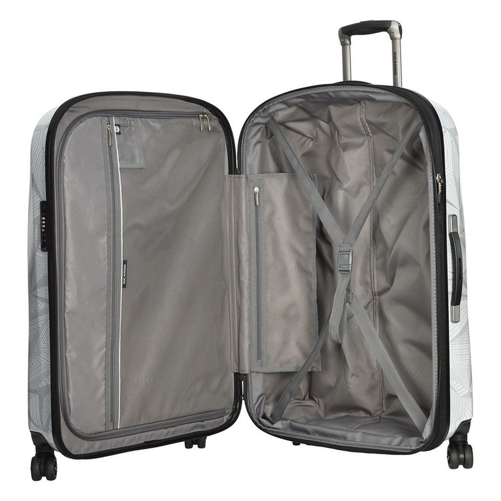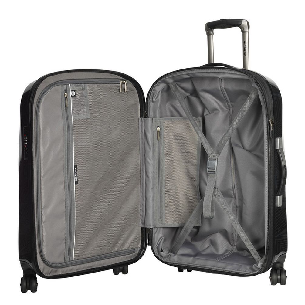 Style and durability are hallmarks of this expandable carry-on spinner case from the striking Spectrum collection. Featuring refined curves and a bold geometric pattern, this tough-wearing polycarbonate hardside protects your belongings at every stage of the journey. This lightweight case has a retractable handle and sturdy, smooth-glide spinner wheels that offer total control of motion. The extra-grippy gel carry handle promotes easy lifting into overhead bins and taxis. Keep organized on the road with smart interior features, such as a suit compartment, mesh pockets and tie-down straps. A dedicated pocket for your location tracking device offers peace of mind.