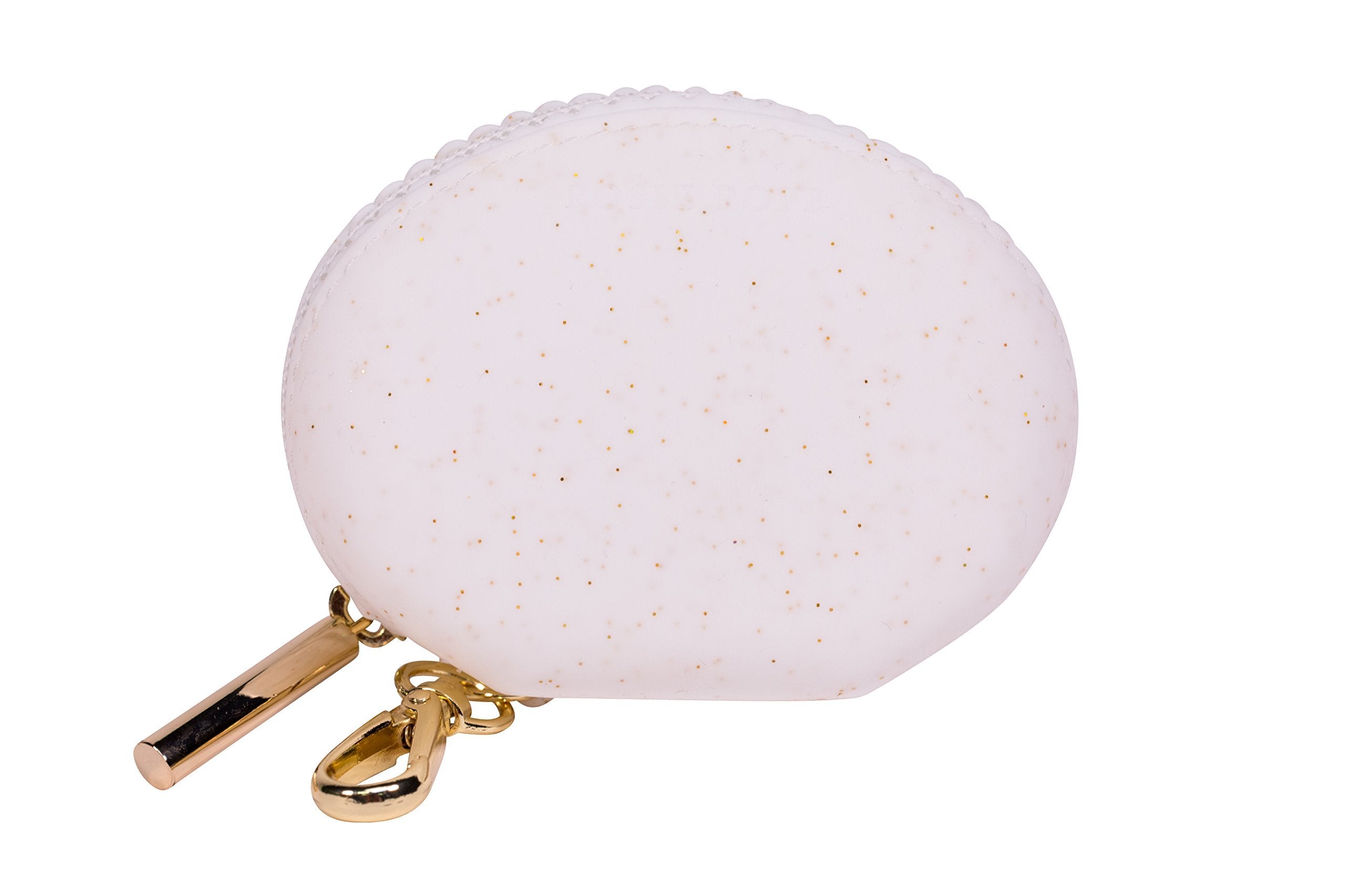 The 100% silicone Pacifier Holder by ROSIE POPE holds up to two standard sizepacifiers, keeping them clean and easy to find. White silicone with subtlegold sparkles makes this pacifier holder one-of-a-kind. Silicone is safe, easyto clean and has antibacterial properties -making it the perfect material forholding your child's treasured pacifiers. The Pacifier Holder features azipper closure with adorable scalloped edging detail and a shiny, goldattachment clasp so that you can attach it anywhere and everywhere! Siliconeis lead, phthalate, BPA and PVC free. Love with Confidence.