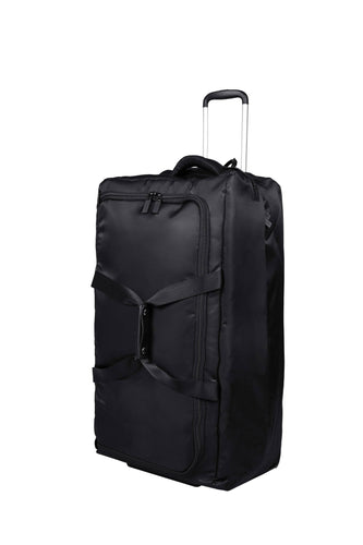 When youve got really big plans for adventure, this lightweight and foldable wheeled duffel will get you there. It has plenty of room to hold all your gear and folds flat into its own case for easy storage under a bed or in a closet. Unique collapsible 2-wheeled trolleys come with matching zipped storage case. Vibrant Fashion colors. Durable and water resistant. PVC reinforced. Nylon.