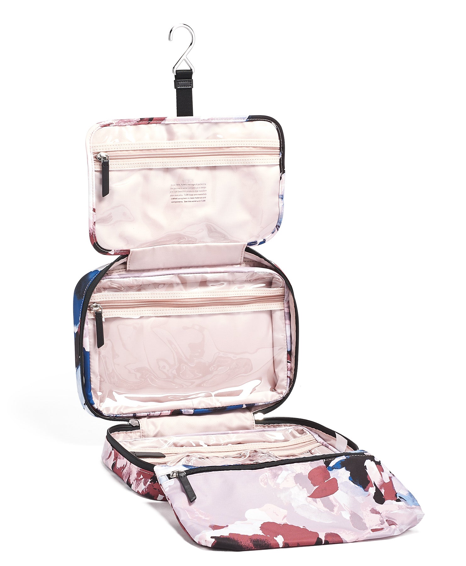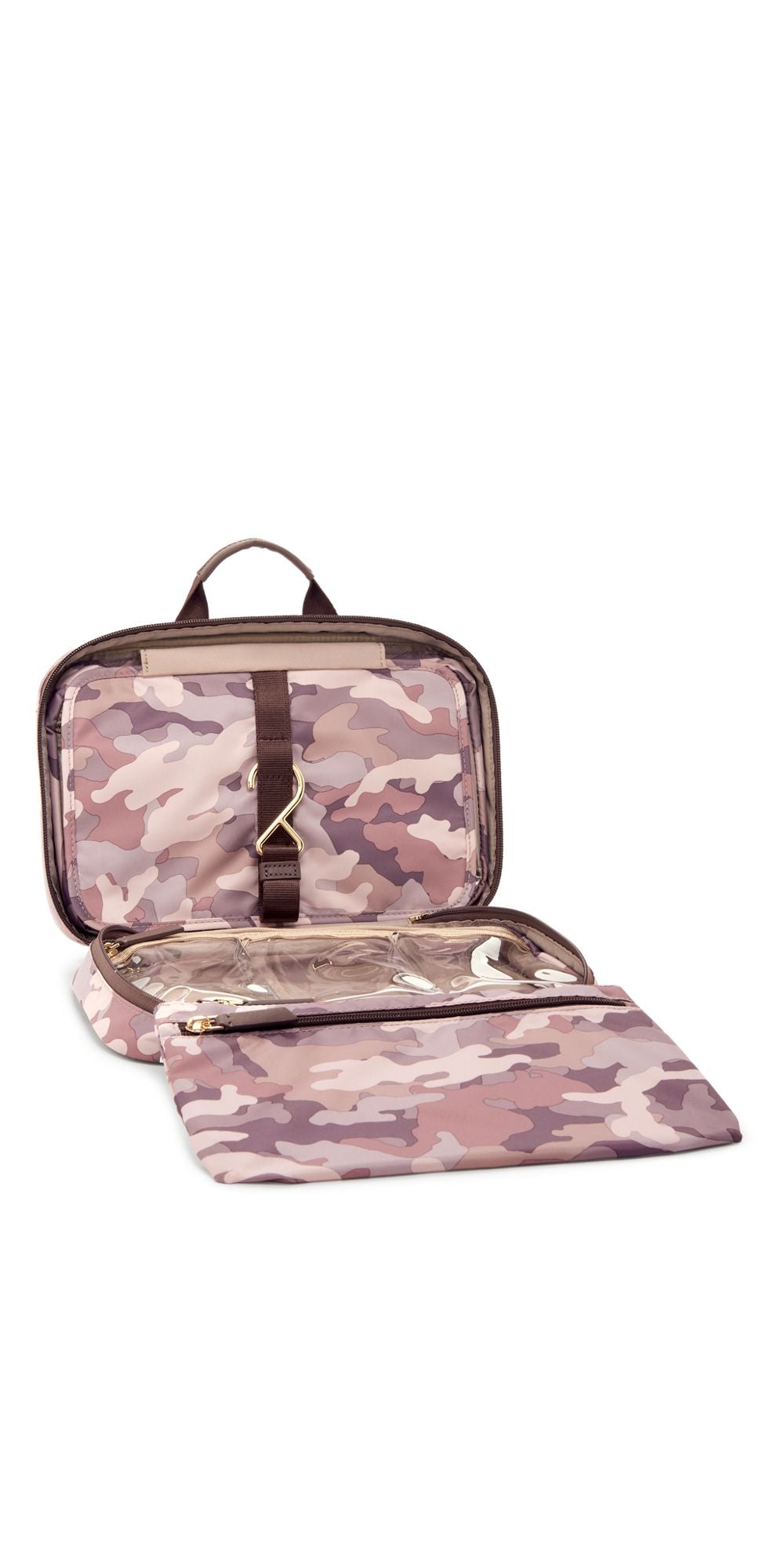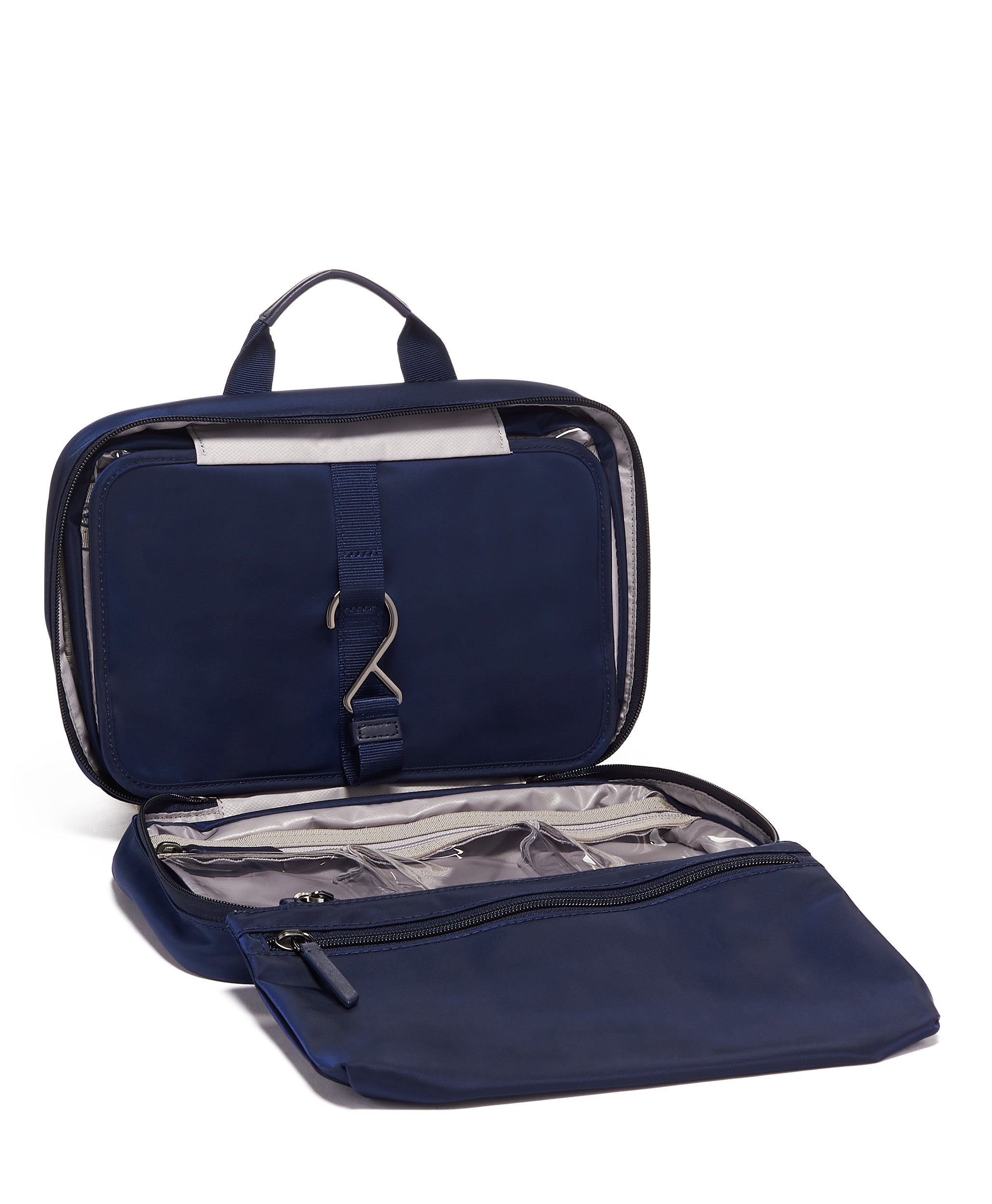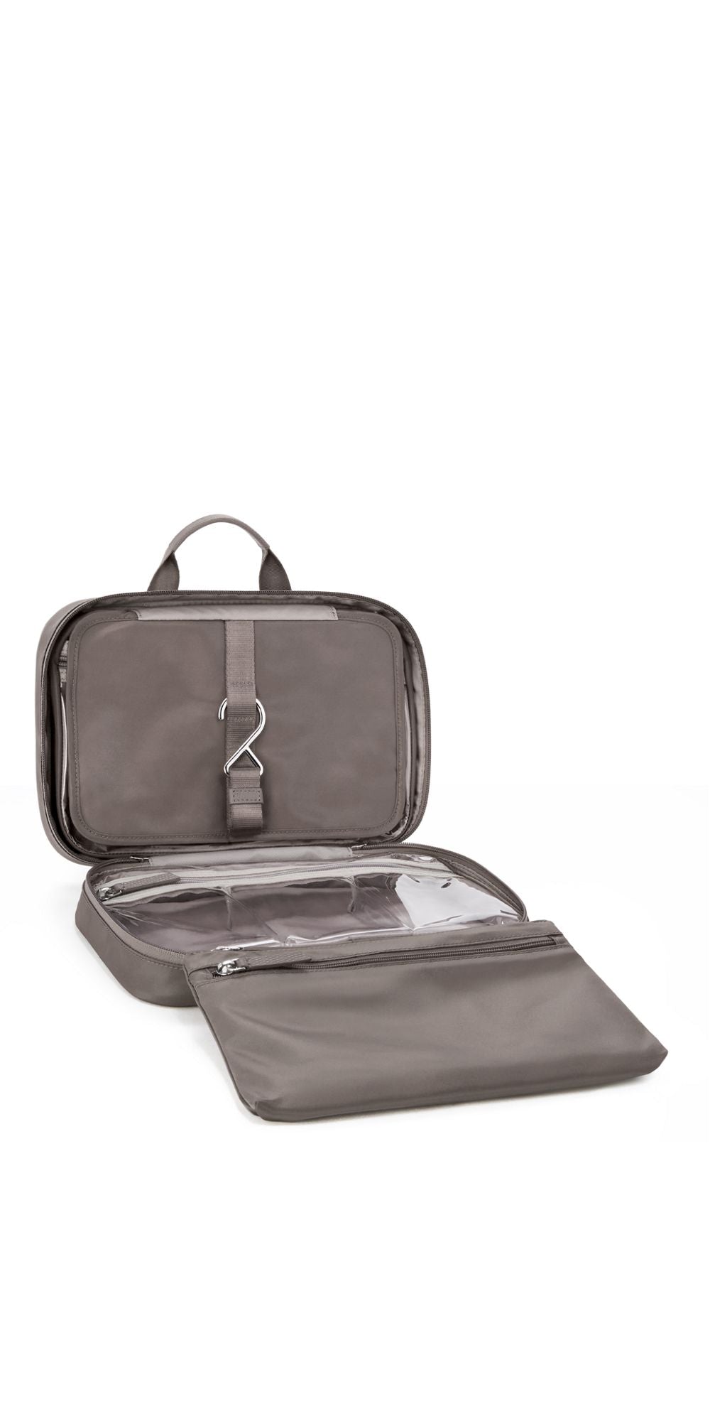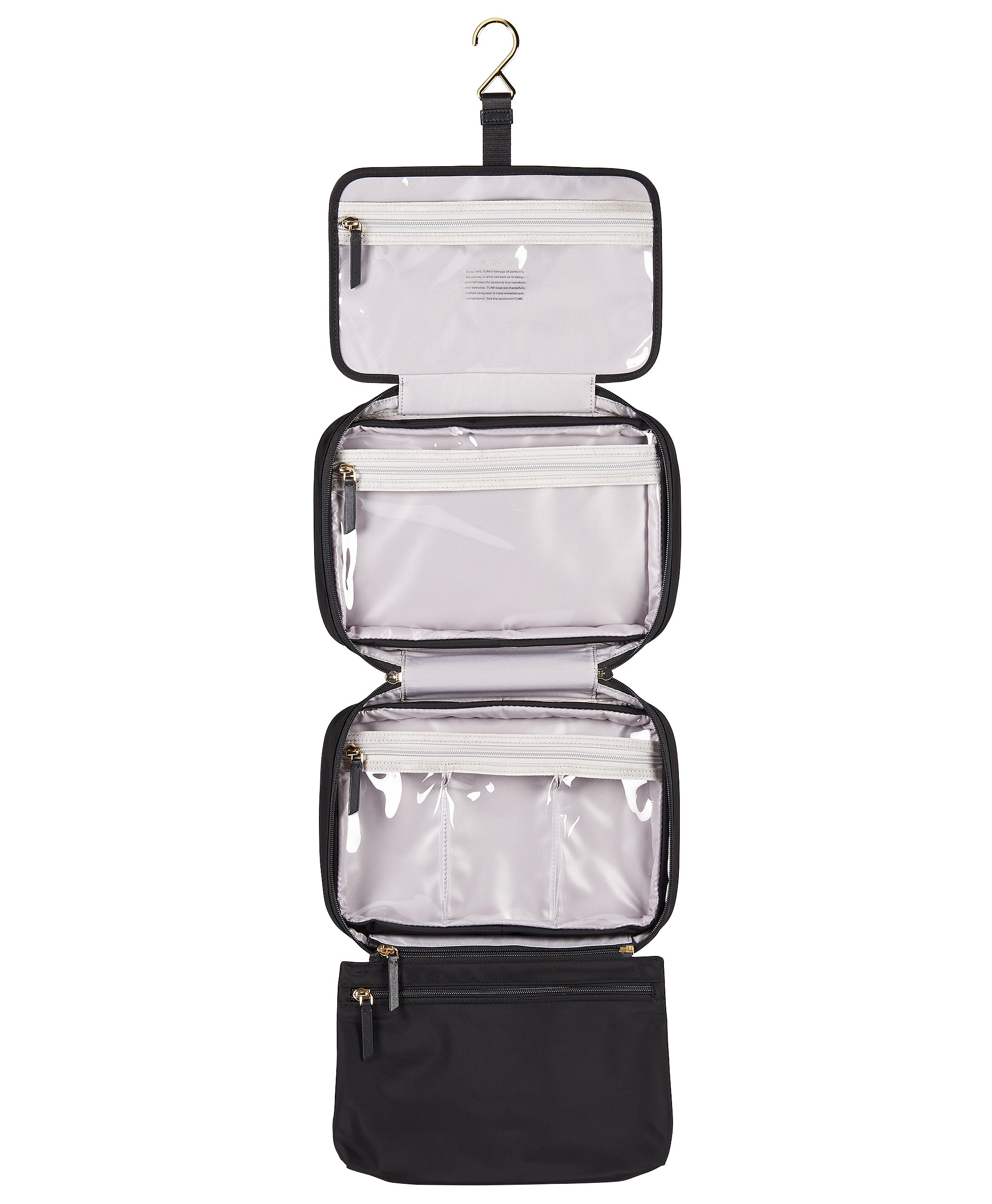 Meet your ideal travel companion. Made from lightweight nylon, it offers three transparent interior compartments and a detachable nylon pouch for smaller items. This versatile design can lay flat or hang from a fixture when open. Purposeful,practical design that doesnt compromise on style: Our Voyageur collection brings you versatile and lightweight nylon backpacks, bags, and accessories for women.