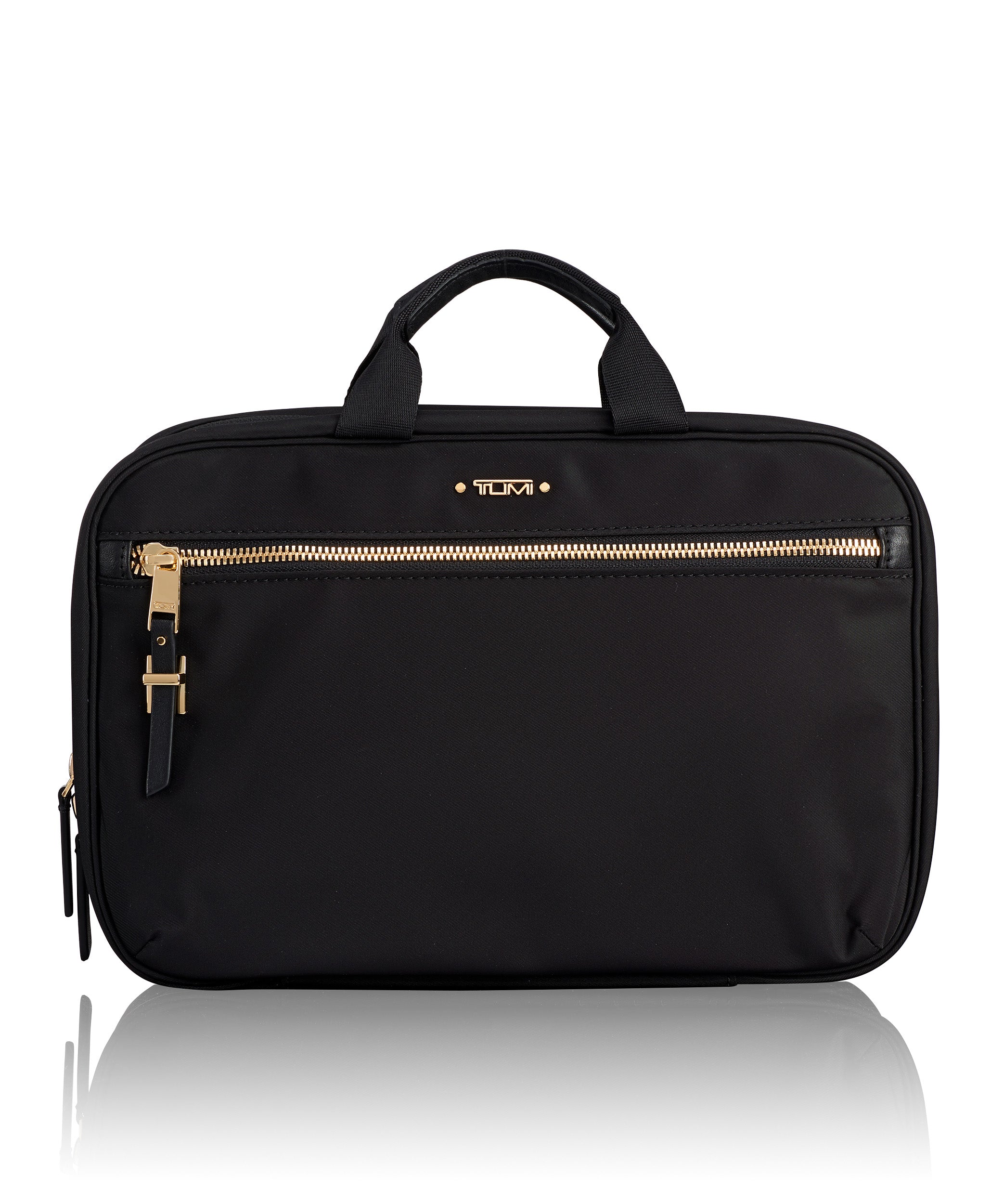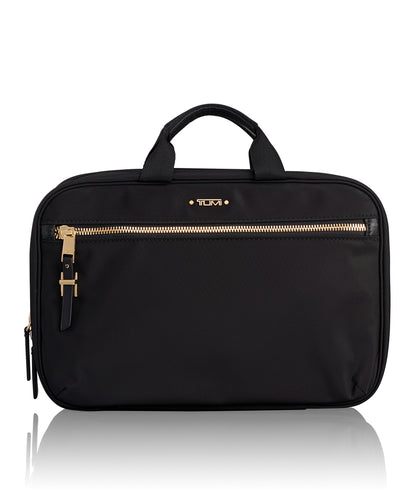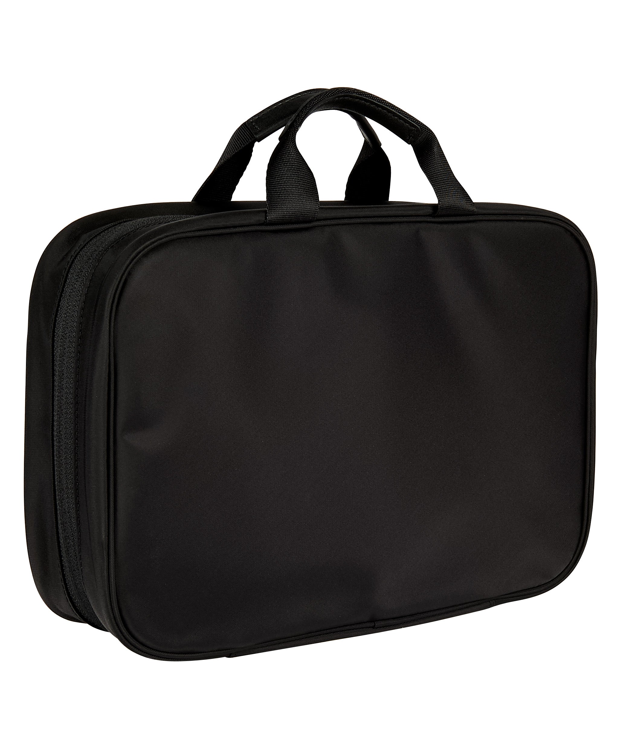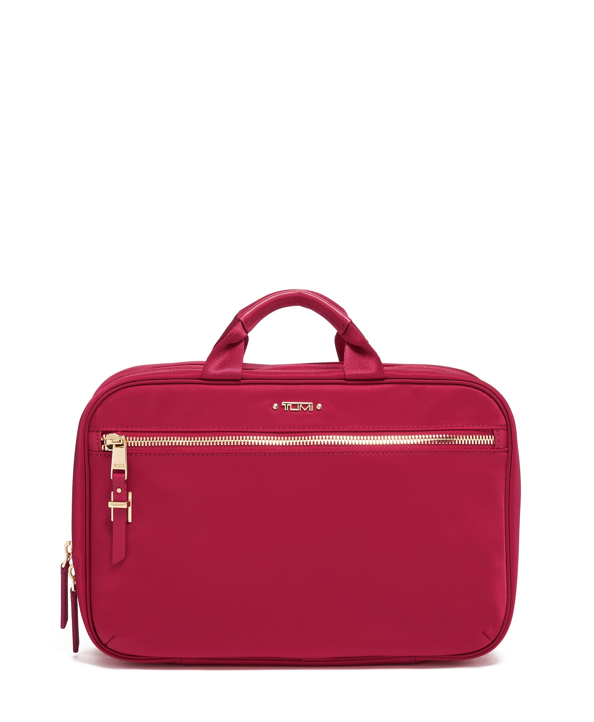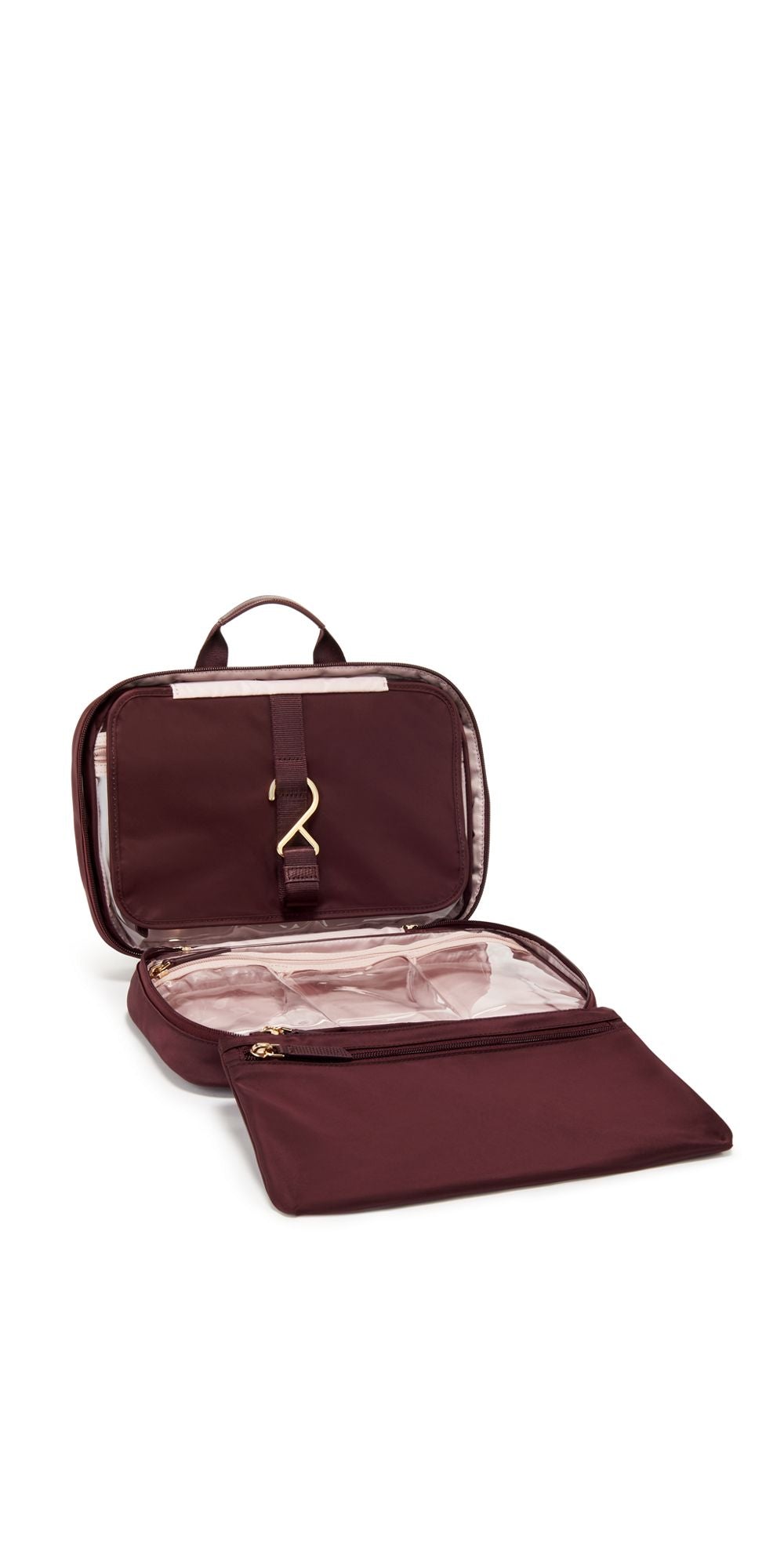 Meet your ideal travel companion. Made from lightweight nylon, it offers three transparent interior compartments and a detachable nylon pouch for smaller items. This versatile design can lay flat or hang from a fixture when open. Purposeful,practical design that doesnt compromise on style: Our Voyageur collection brings you versatile and lightweight nylon backpacks, bags, and accessories for women.