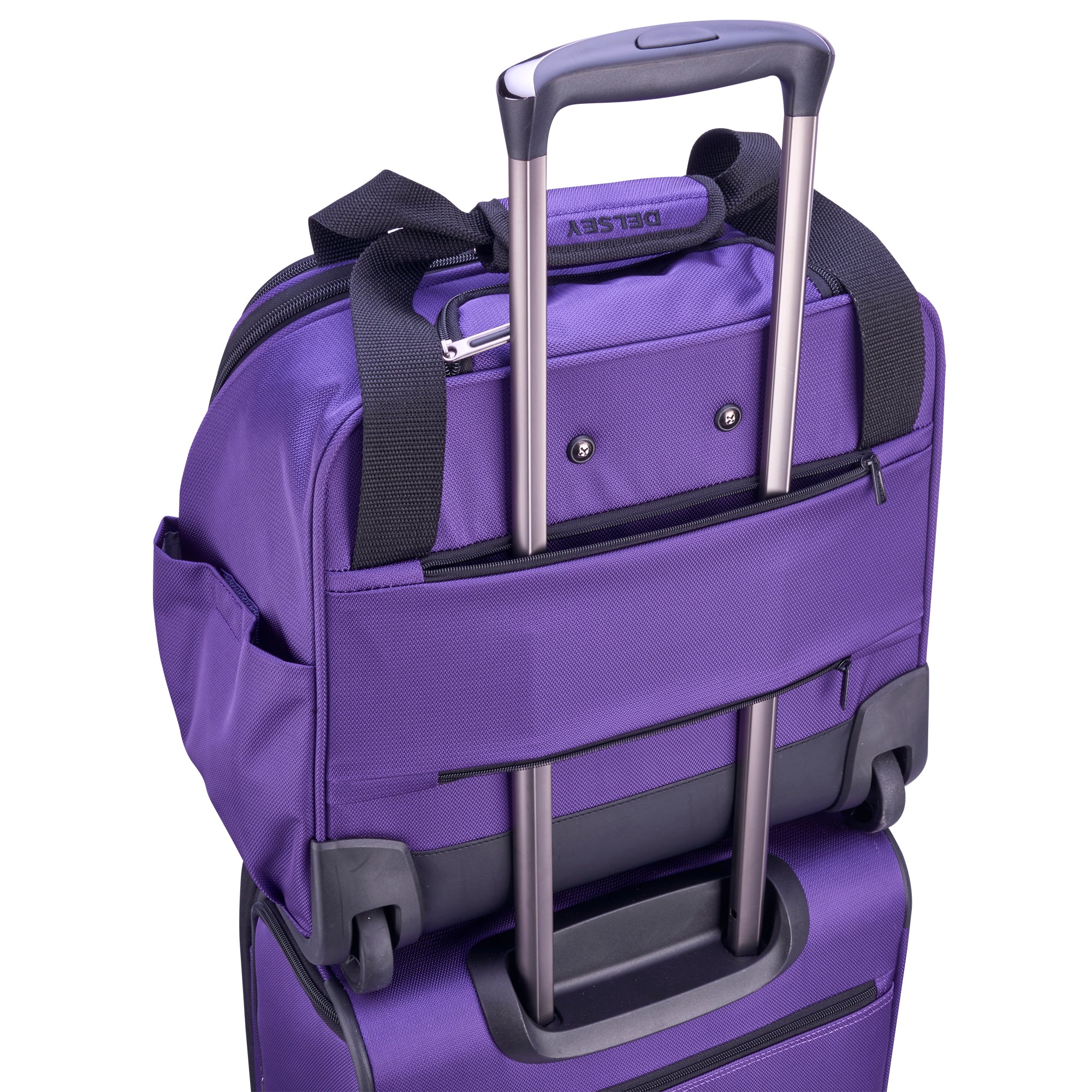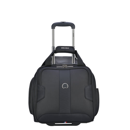 Fits under the airplane seat (most airlines). Maximum organization: 7 pockets including zippered interior and exterior pockets, padded sleeve for tablet, and shoe pockets. Light Yet Tough: constructed of durable Micro Ballistec Polyester with vapor barrier for long lasting use, Corner protectors and skid bars eliminate wear at stress points. Convenient and comfortable carrying options. Three ways to carry including top carry handles, a telescoping wheeled trolley system, and a smart band to slide over trolley tubes.