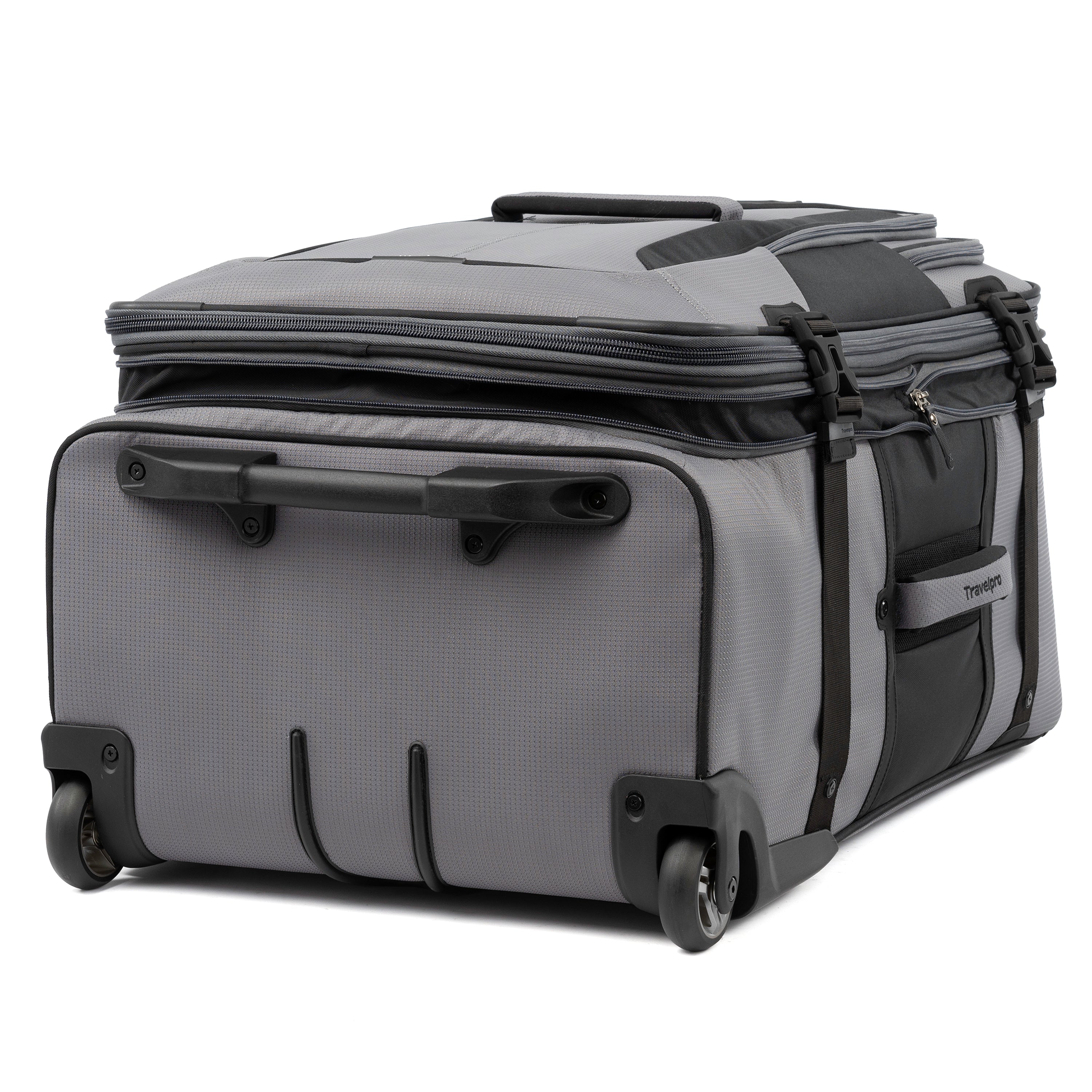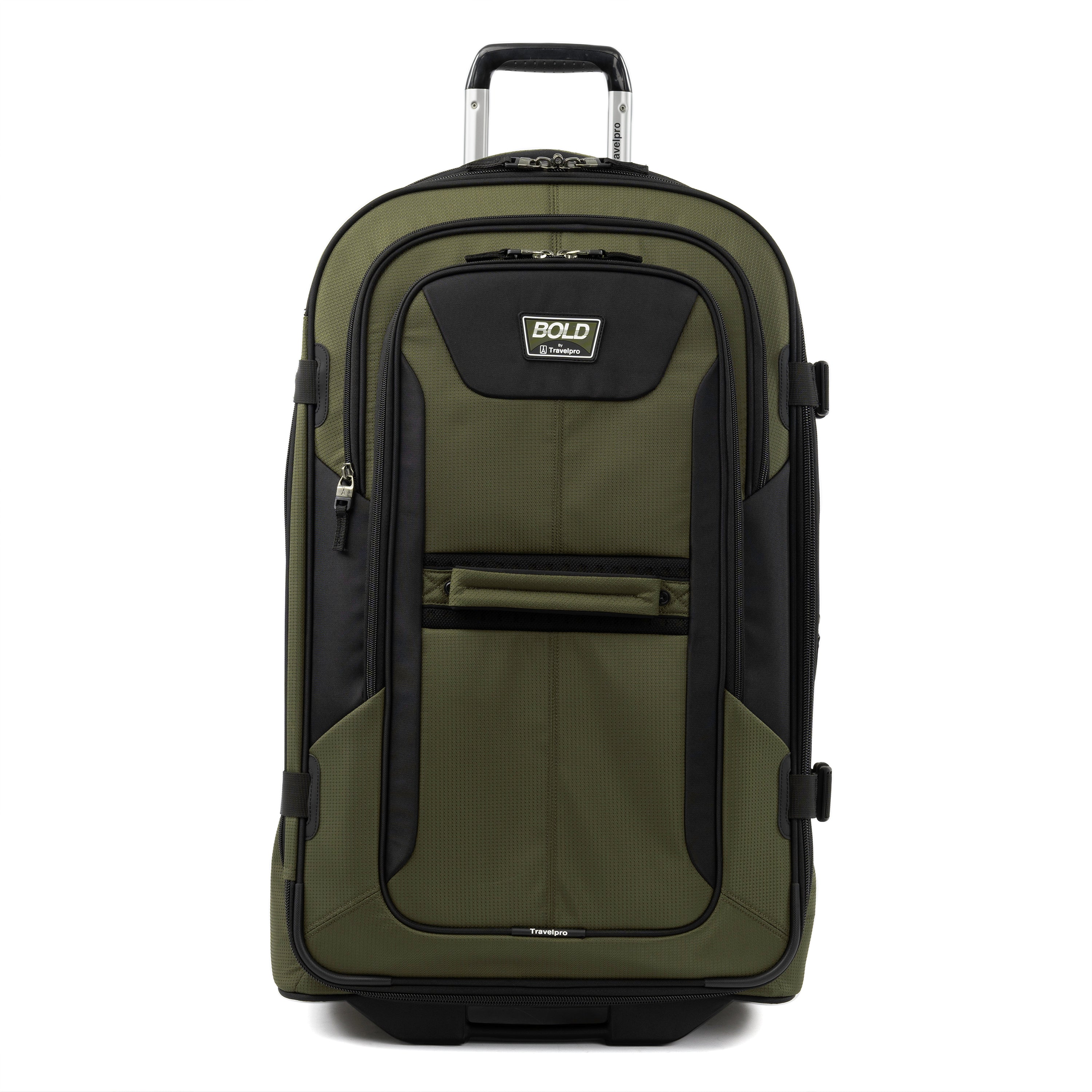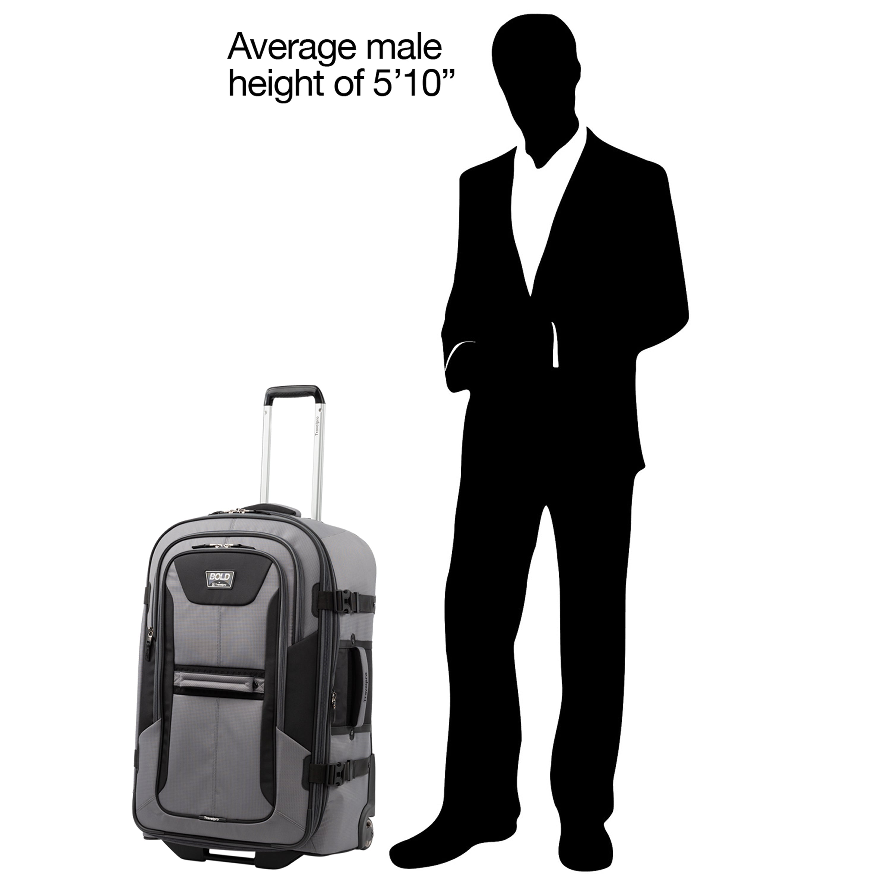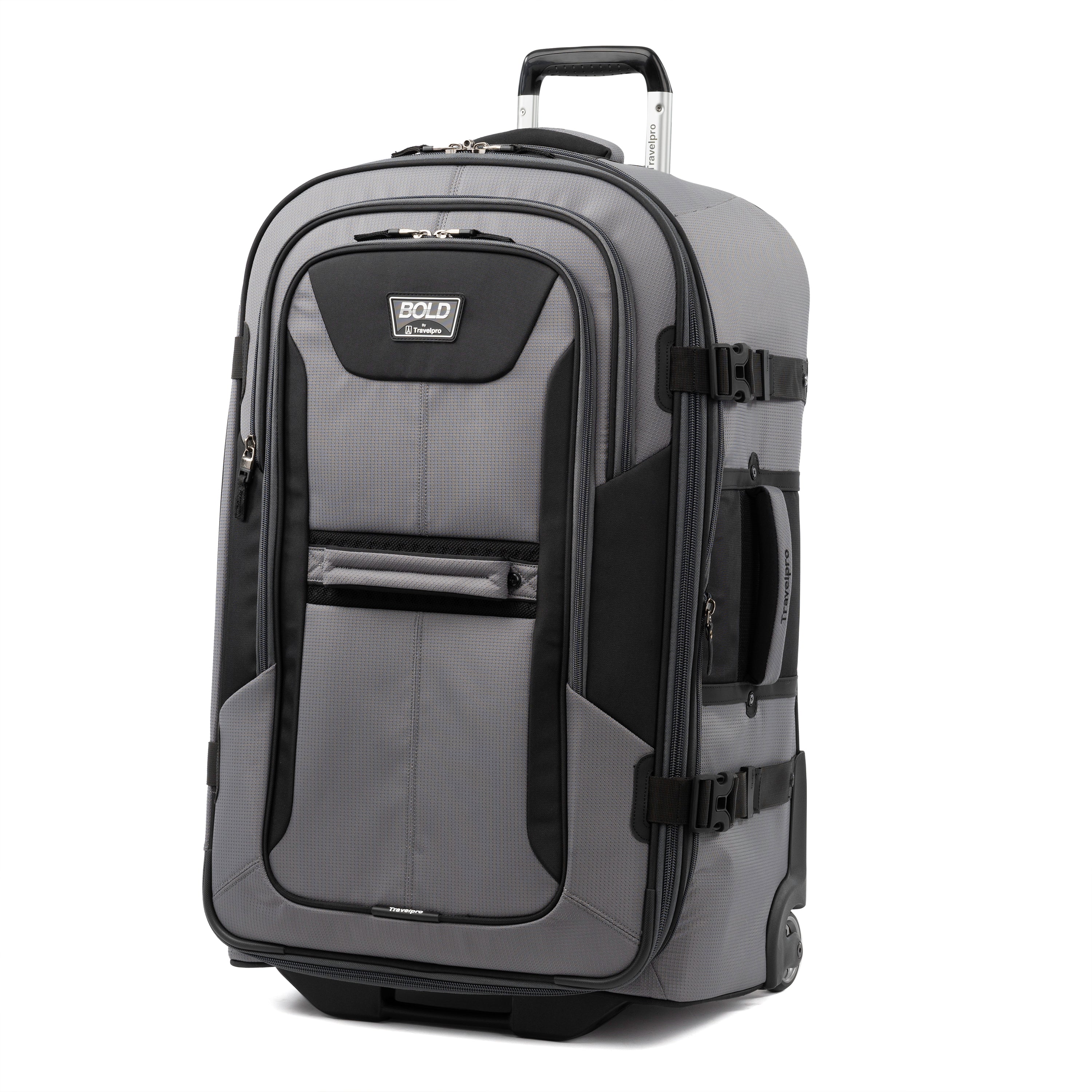 Pack up and carry-on with a bag that wont slow you down. The Bold by Travelpro 22 Expandable Rollaboard is small enough to meet carry-on size restrictions for most domestic airlines but large enough for a medium-length trip and boosts packability with a zippered 2 expansion option. Convenience is built in with an easy-to-access, exterior padded tablet sleeve and hidden exterior back pocket with built-in key ring plus room enough to store a phone. High-density polyester fabric is treated to resist moisture and stains, while the reinforced wheel housings, skid guards and molded corner guards protect high wear points to keep the bag looking great no matter where you roam. Compression straps provide added security and adjust to condense the bags depth when needed. Organized packing features include a mesh pocket built into the lid, adjustable hold-down straps and a large wet pocket that protects other contents from damp or dirty items. Cushioned handles make carrying comfortable, or hit the road on two high-performance ball-bearing wheels led by a strong, adjustable-height telescoping handle made of aircraft-grade aluminum. Backed by our Travelpro Built For A Lifetime Limited Warranty with the Trusted Companion Promise.