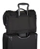 - Dual access to main compartment. Flat grab handle with leather accent. Open pocket under flap.