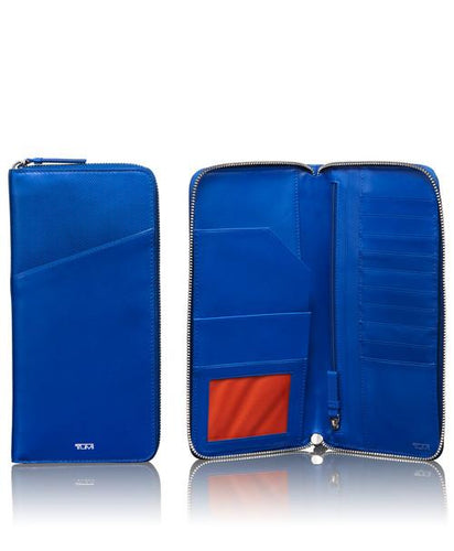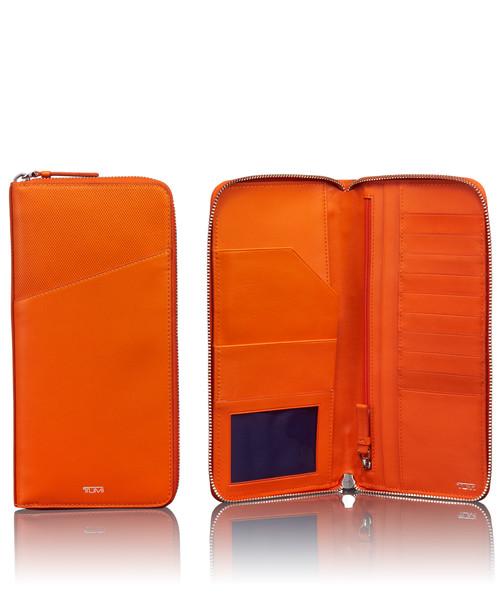 Our Prism leather accessories come in the best and brightest colors of the season. This stylish and easy-to-find travel wallet has a secure zip-around closure and pockets for your travel documents and currency. Can be monogrammed; comes in an elegant gift box.