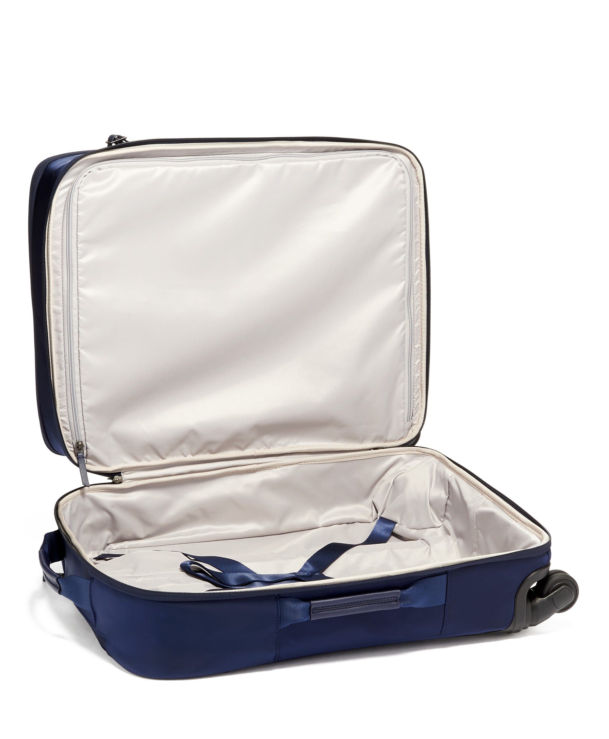• 2 ways to access main compartment: Split case double-zip entry and front lid double-zip entry, Double-zip entry to U-zip pocket, Straight zip pocket with locking zipper pull Adjustable-height telescoping handle, Bottom grab handle, Four recessed whee