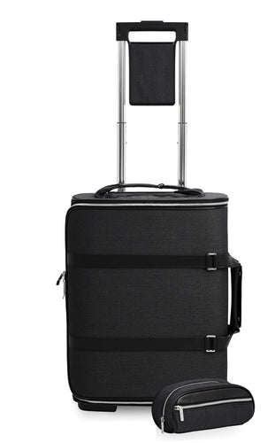 The C38 cabin luggage set consists of the C38 luggage and C12 Dopp kit. The C38 is the workhorse of our product portfolio, and our best-selling cabin luggage piece by far. It features both our Zero Crease„ system for wrinkle-free suits and attire, as well as our Fast Pass„concept for quick, unobstructed access your Dopp kit/toiletries bag during security checks. The exterior is finished in durable black nylon, with black Italian leather straps and handles, and PVD coated black metal fastenings. The matching C12 nylon Dopp kit works seamlessly with the C38s Fast Pass„ pocket. Instantly accessible, the C12 features a clear window and 3 travel bottles for easy viewing of its contents, liquids, and quantities, which means less time at security checks. Combining the C38 and C12 makes the ideal cabin luggage set, especially for frequent or business travelers. The empty weight of the C38 carry-on is 3.3 kilograms (7.3 lbs.). Weight including the Zero Crease compartment is 3.9 kilograms (8.6 lbs.).