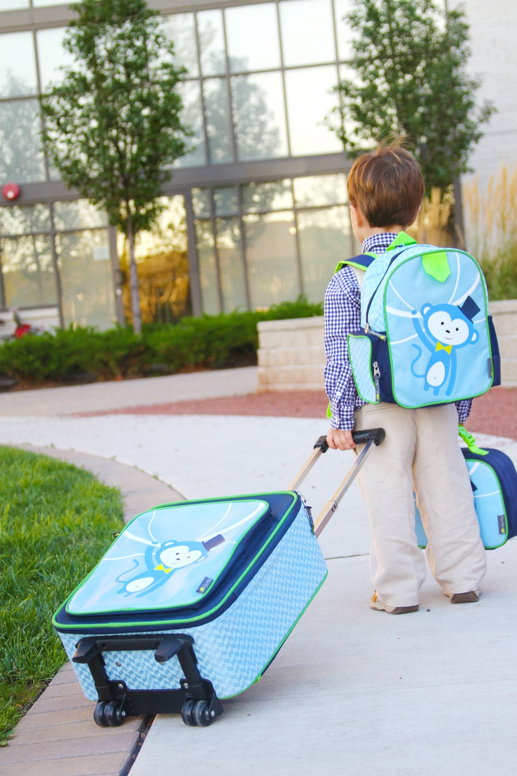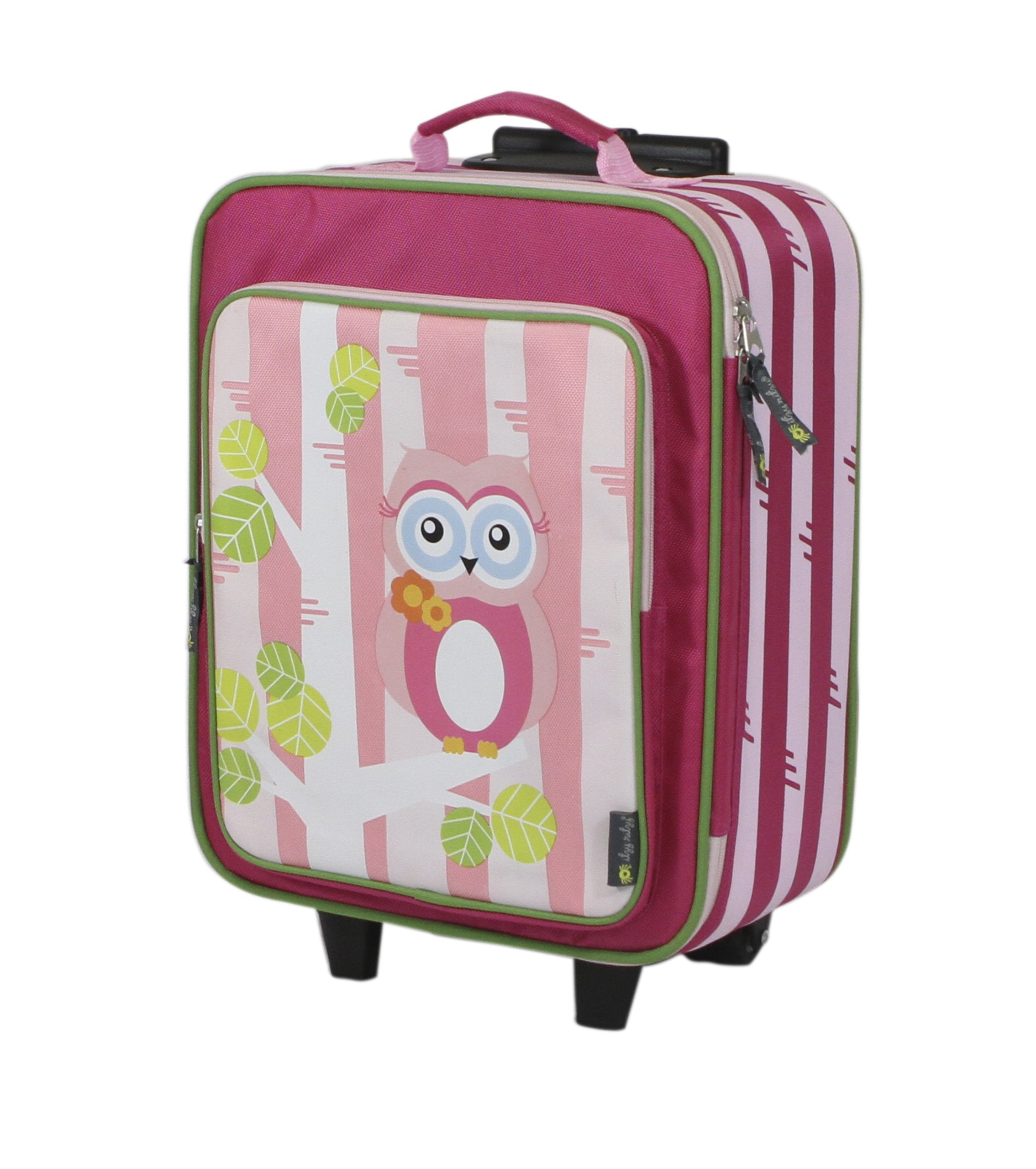 The Itzy Ritzy RS8084 Adventure Happens Rolling Suitcase is a child sizedtravel bag with wheels that gives busy kids a way to proudly tote their ownbelongings from family vacations to overnights with grandparents. The rollingsuitcase is made of a durable polyester canvas that features a spaciousinterior and front zipper pocket to make packing simple and keep necessitiesorganized and stowed during travel. This kid friendly bag is sized to betucked neatly in a car or under an airplane seat. The soft fabric zipper tagshelp small hands open and close the bag with ease. This bag can be easilytransported by either the fabric handle at the top, or the adjustable lockinghandle that provides the perfect height for children and can be raised when anadult needs to take over the job. The clear plastic ID pouch on the backprovides a place to personalize by sliding in a child's name in case of lostluggage. This suitcase is designed with a cute owl character that's perched ona whimsical pink pattern matching other items in the Itzy Ritzy collection.The suitcase measures 16 "by 13 "by 6.5 "and weighs 3.75 pounds. The ItzyRitzy RS8084 Adventure Happens Rolling Suitcase is recommended for children 3years and up and comes with a warranty against any manufacturing defects atthe time of purchase. At Itzy Ritzy, we believe that parenting in style ispossible. Our collection is designed to provide families with smart andstylish solutions to everyday parenting challenges. From multi-purpose designsthat empower and chic prints that inspire, to solutions that raiseconsciousness, we've reinvented practical luxury for modern families aroundthe world while remaining true to our core vision of keeping things simple.Visit for more information on Itzy Ritzy and ourextensive line of products.